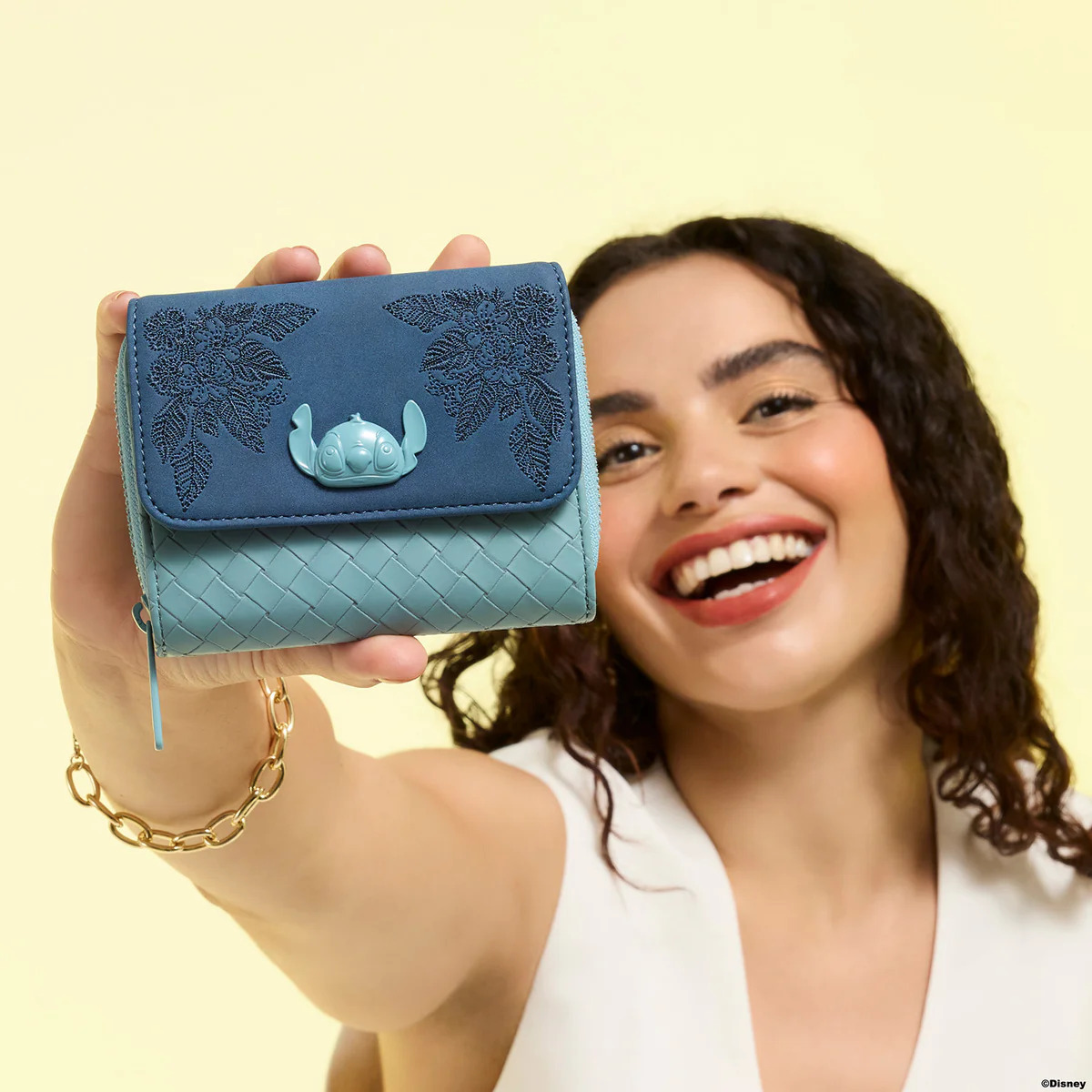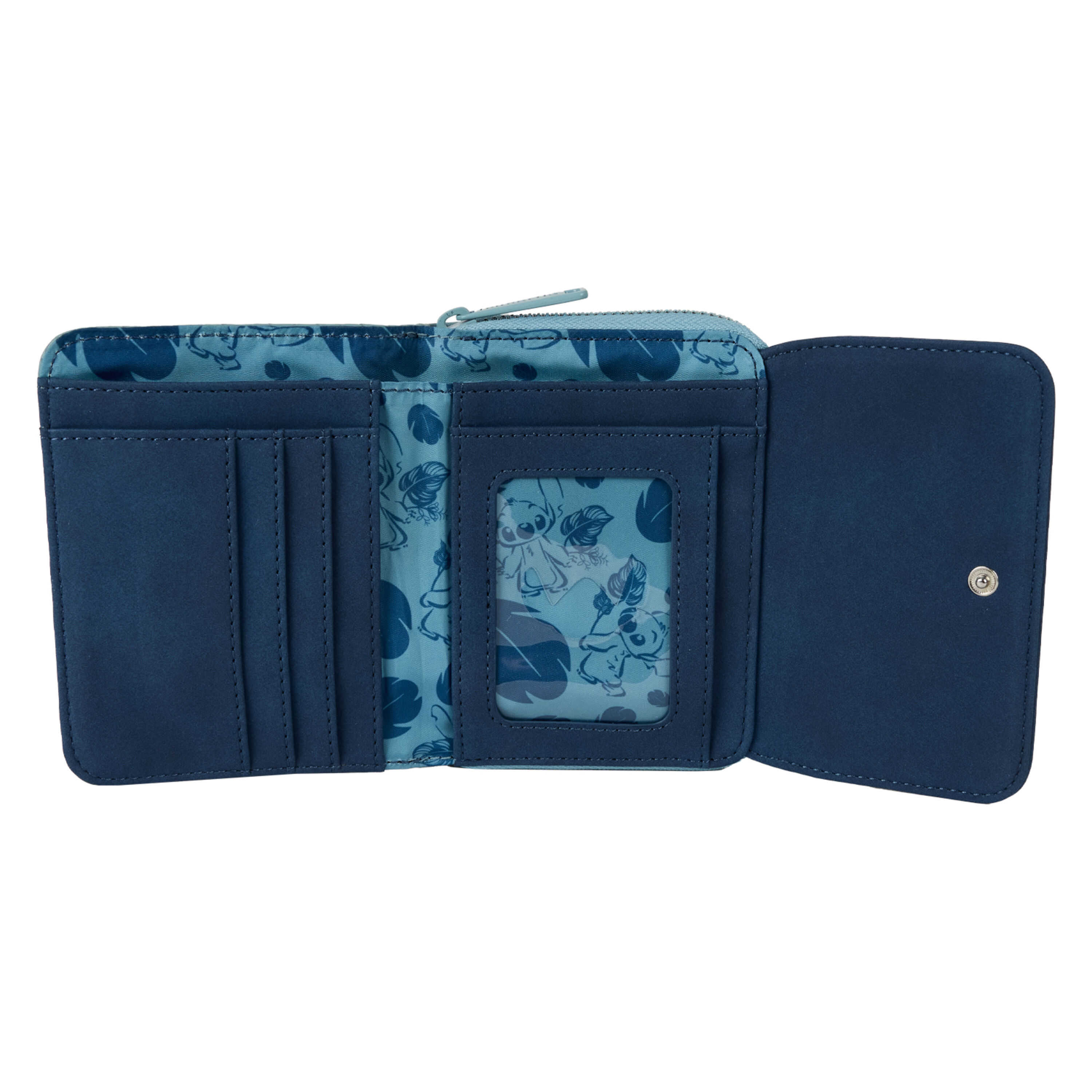 Questo portafoglio presenta un ciondolo in metallo stampato raffigurante Stitch sul davanti con dettagli floreali ricamati intorno. All'interno, troverai tantissimi scomparti per carte e contanti, E lo scomparto trasparente per i documenti d'identità ha la silhouette di Stitch ritagliata! È TROPPO CARINO!