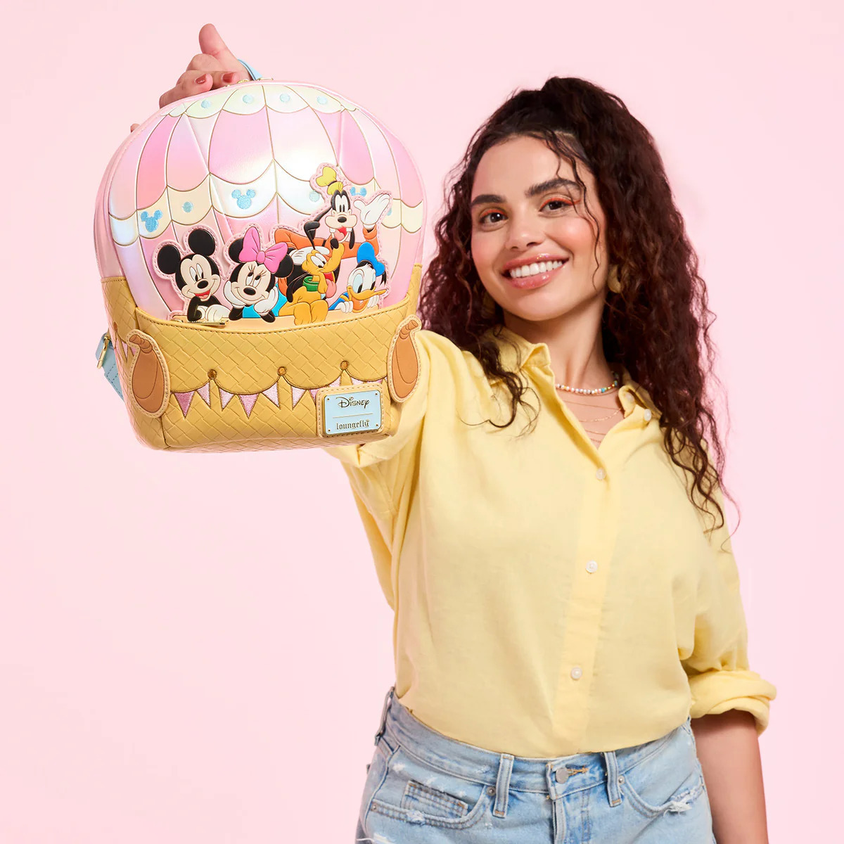 Parti per un'avventura all'insegna dello stile con Topolino e i suoi amici! Questo mini zaino ha la forma di una mongolfiera e contiene alcuni dei tuoi personaggi Disney preferiti: Topolino, Paperina, Pluto, Paperino e Paperino! Il materiale in similpelle perlata e intrecciata aggiunge un tocco di divertimento in più!