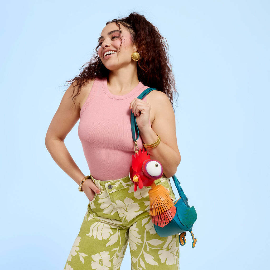 Lo sappiamo, è COSÌ iconica ed è un must-have! Questa borsa ha la forma di Hei Hei di Moana della Disney. I dettagli in vere frange danno un aspetto 3D alle sue "piume".
