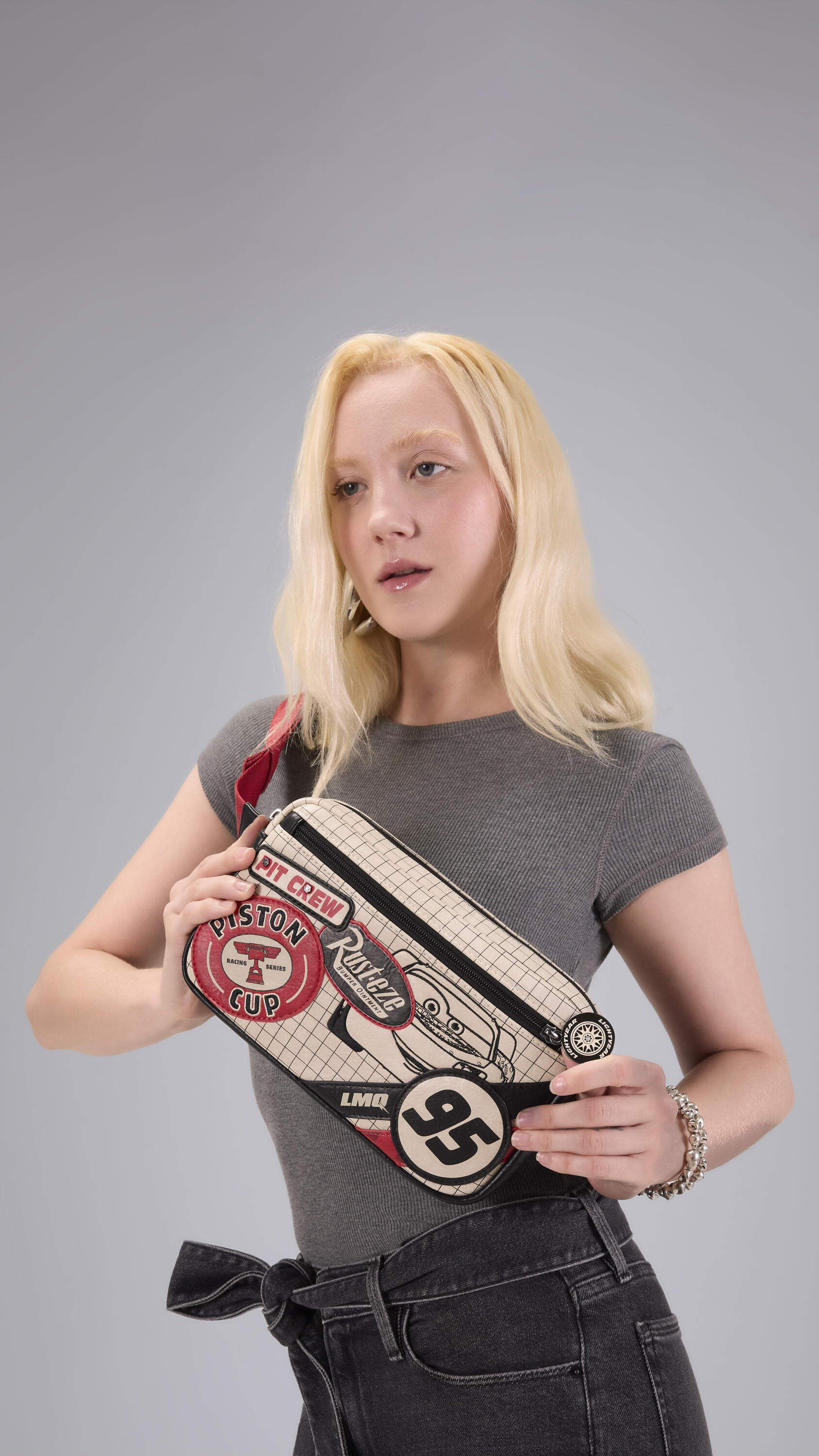 Questa borsa a tracolla è realizzata in similpelle anticata, borchie in metallo sagomato e dettagli ricamati che sembrano adesivi sulla parte anteriore. Troverai "adesivi" con scritte come "Pit Crew", "Rust-eze", "Piston Cup" e molto altro! Questa borsa è un accessorio davvero divertente, elegante e perfetto per celebrare uno dei tuoi film preferiti!