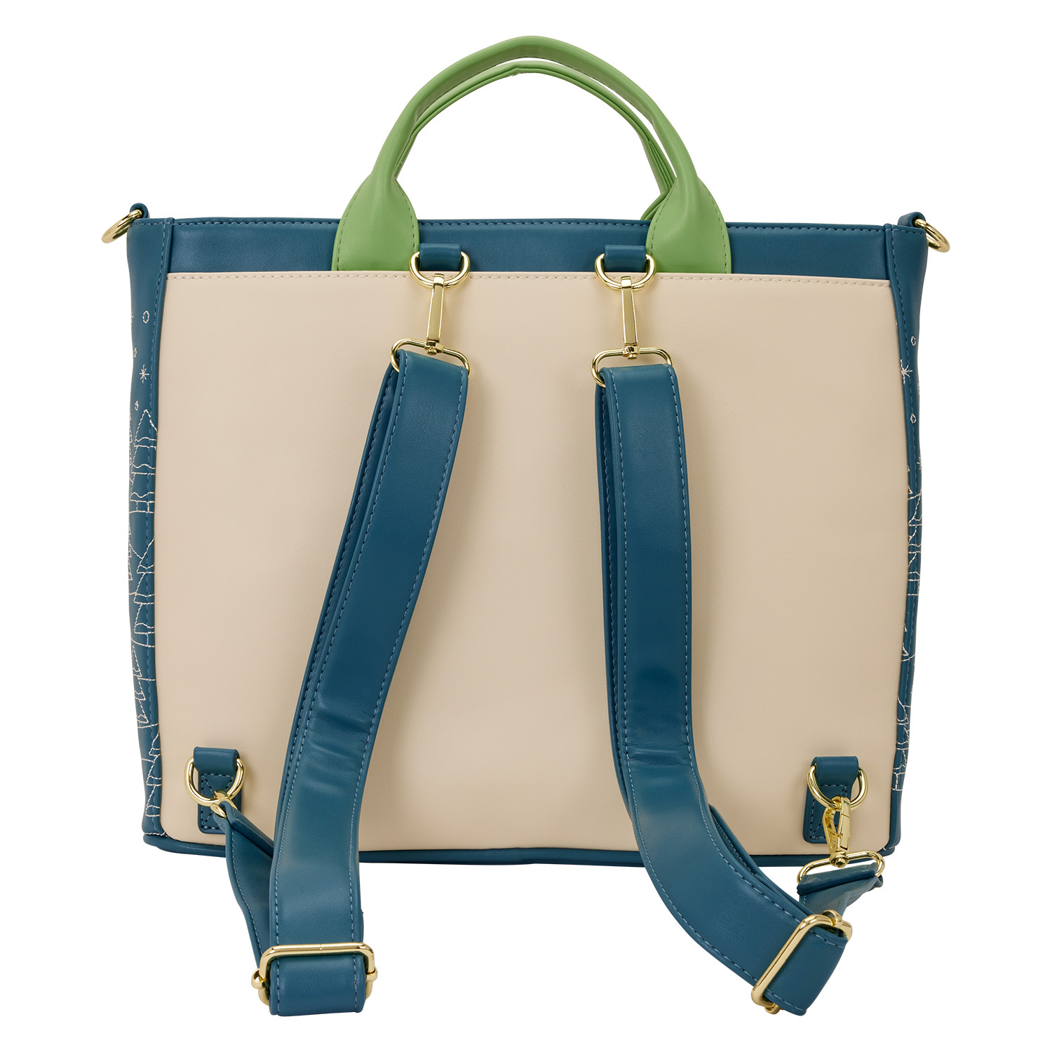 Questa sac tote convertibile può essere utilizzata come tote bag o come zaino. Presenta un'immagine di Topolino e Paperina slittano su una collina con Pluto. Troverai anche un motivo imbottito e goffrato che raffigura calze sul fuoco, un ornamento a forma di Topolino, un regalo a forma di Minnie, ghirlande e molto altro! La trapuntatura sui lati raffigura alberi sempreverdi!