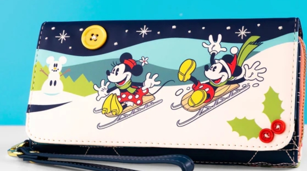 Questo portafoglio da polso raffigura Topolino e Minnie che scendono in slitta da una collina. Sul retro, troverai un design imbottito e goffrato con vari simboli natalizi come ghirlande, regali, fiocchi di neve e altro ancora! All'interno, ci sono sei scomparti per carte e uno scomparto trasparente per documenti d'identità. Inoltre, c'è un cinturino da polso staccabile, così puoi indossarlo come preferisci!