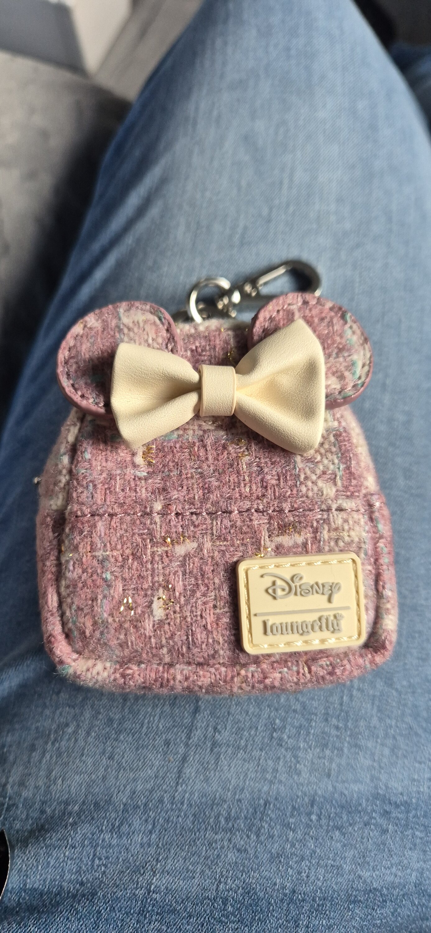 Questi mini portachiavi misteriosi hanno la forma dei nostri classici mini zaini cosplay Minnie, ma ognuno è realizzato con un materiale diverso che lo rende brillante. Troverai: peluche glitterato, tweed, denim glitterato, similpelle glitterata, velluto iridescente e trapuntato.