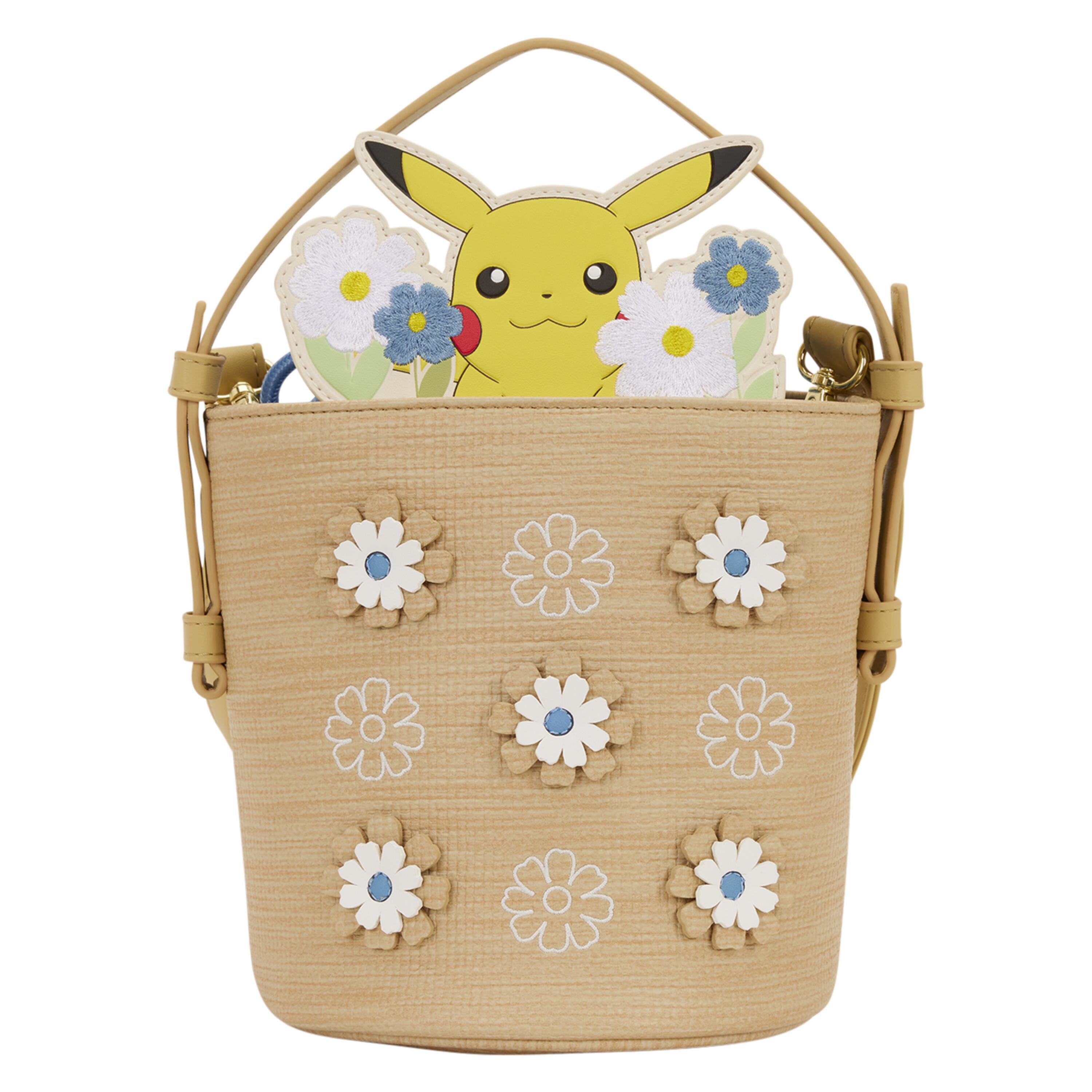 Questa borsa sembra un cestino intrecciato: troverai materiale intrecciato e applicazioni floreali ovunque. Dal cestino spuntano altri fiori e Pikachu! Questo è un accessorio davvero carino per contenere i tuoi oggetti essenziali durante il giorno!