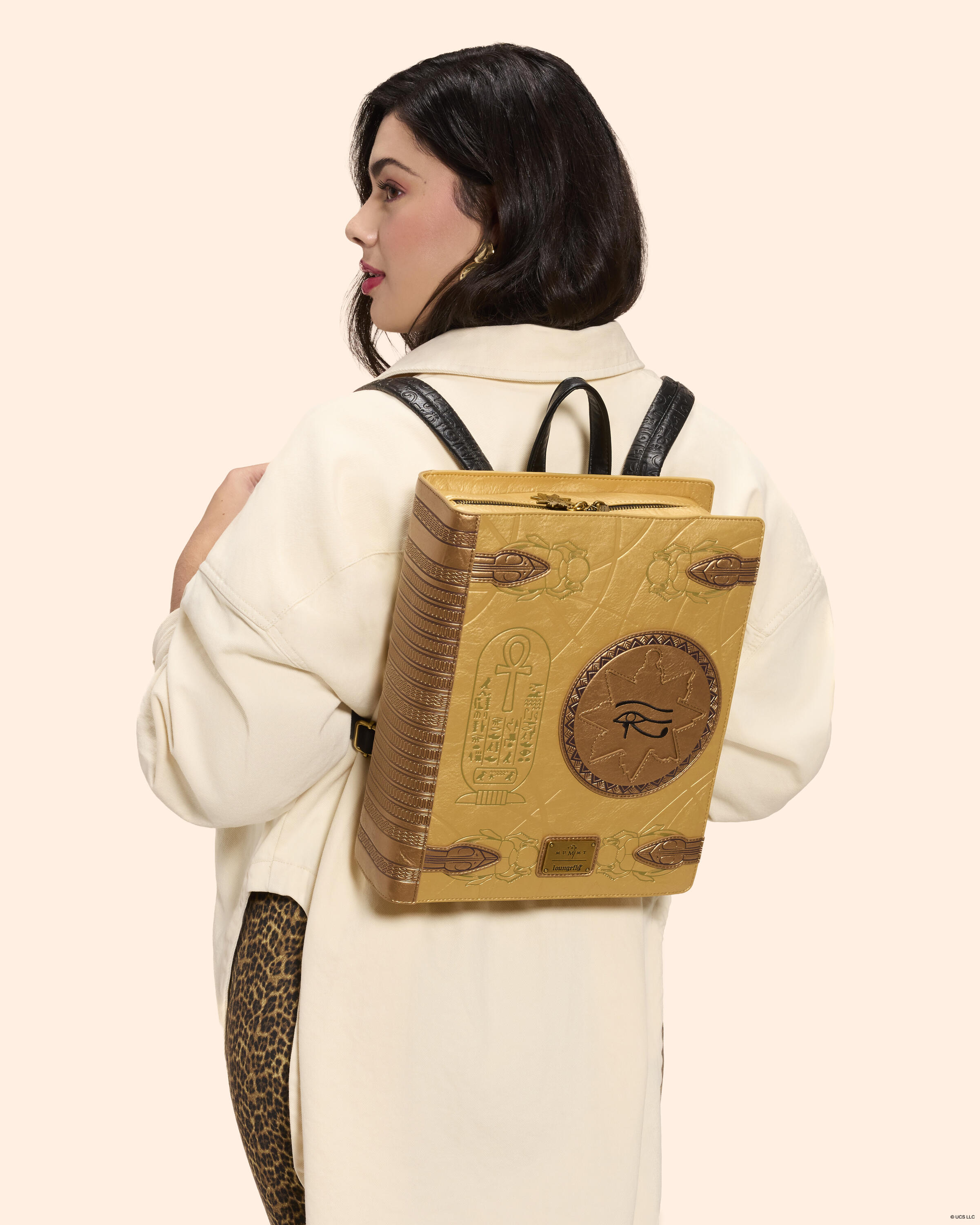 Questo zaino di medie dimensioni ha la forma di un libro. Troverai materiale metallico testurizzato sulla borsa, insieme a simboli in rilievo e dettagli in metallo modellato per dare vita ai disegni della copertina del libro. È sicuramente un accessorio che si abbina a qualsiasi outfit ed è un ottimo modo per celebrare uno dei tuoi film preferiti!