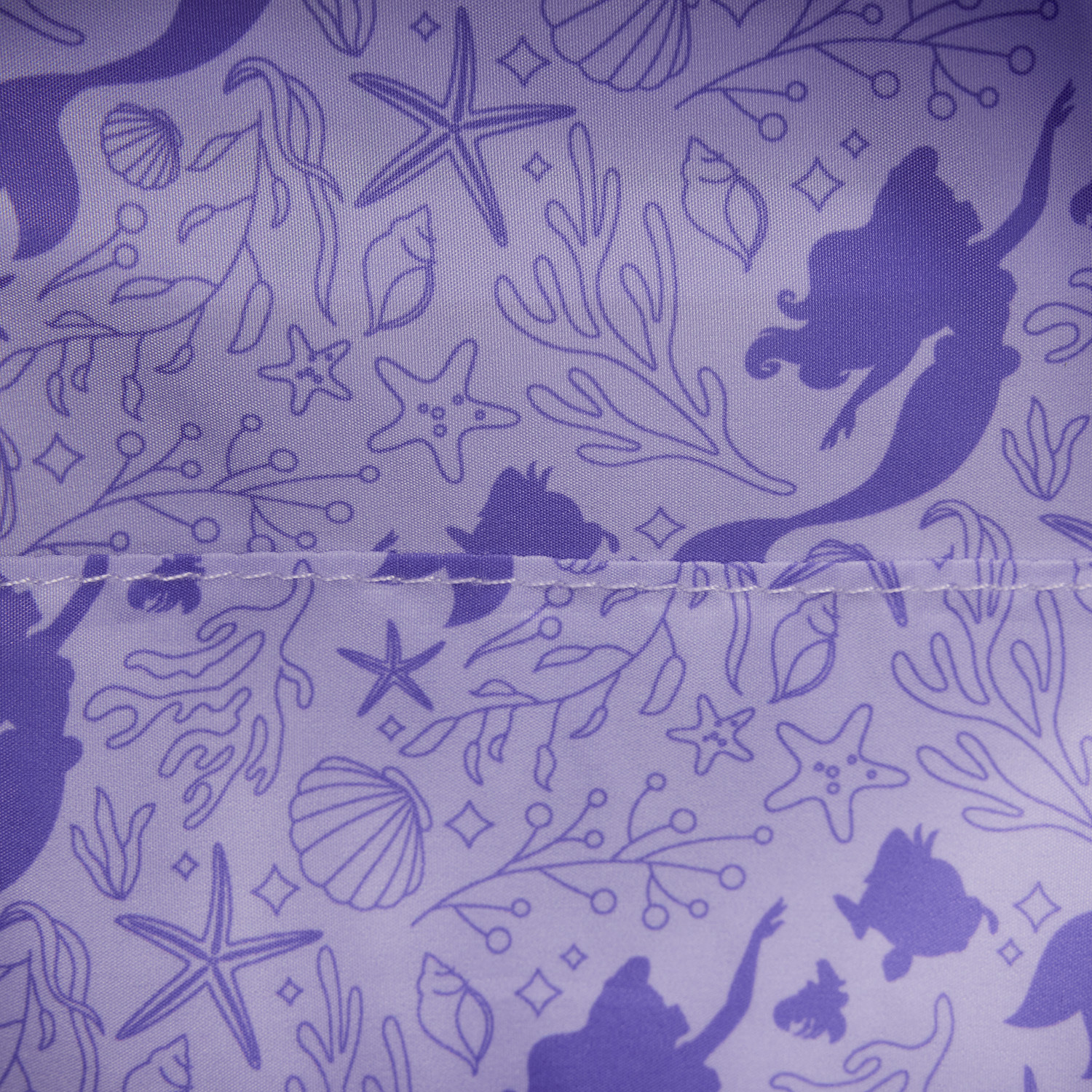 Questo mini zaino è ispirato ad Ariel de La Sirenetta della Disney. Troverai materiale iridescente dal viola al verde con dettagli a squame di pesce. Perle finte sono presenti sulle tasche frontali e laterali. Un fiocco 3D si trova nella parte superiore della borsa, con un ciondolo smaltato a forma di conchiglia con tulle e perle finte. Dai un'occhiata alle tracolle per scoprire un'applicazione a forma di conchiglia viola!