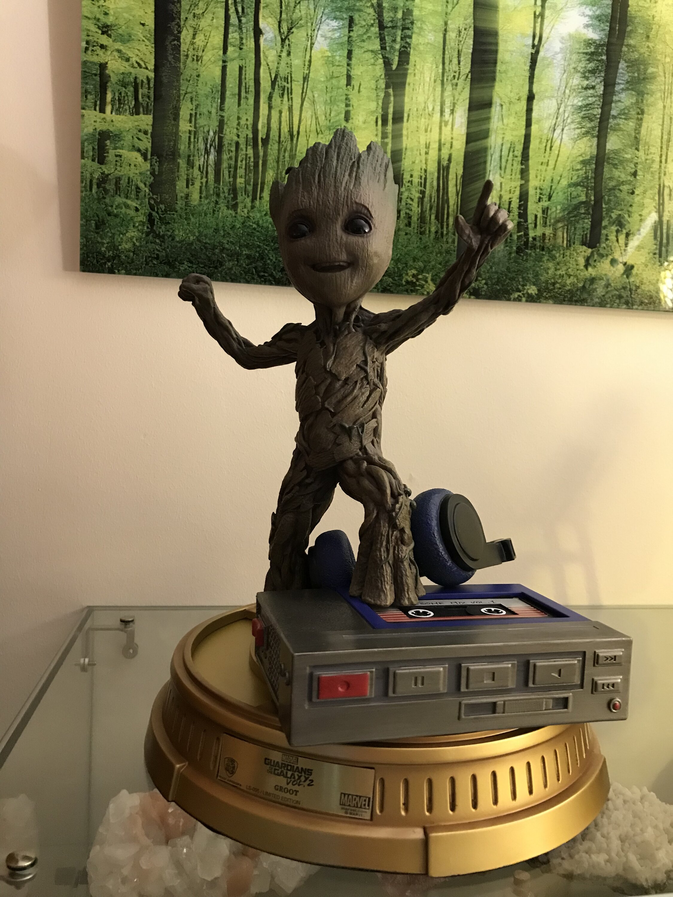 Utilizzando le migliori tecniche di scultura e pittura, permette ai collezionisti di ammirare ogni dettaglio, non importa quanto piccolo, in dimensioni reali. Oltre alle texture dei rami di Groot e al mangianastri della vecchia scuola, è stata prestata particolare attenzione al viso adorabile ed espressivo di Groot e alla posa dinamica del ballerino. Questo cattura il suo vivace atteggiamento da "Febbre del sabato sera" e il suo sorriso contagioso. Non dimenticate di ammirare le cuffie ai suoi piedi, pronte a suonare i brani uno dopo l'altro!
