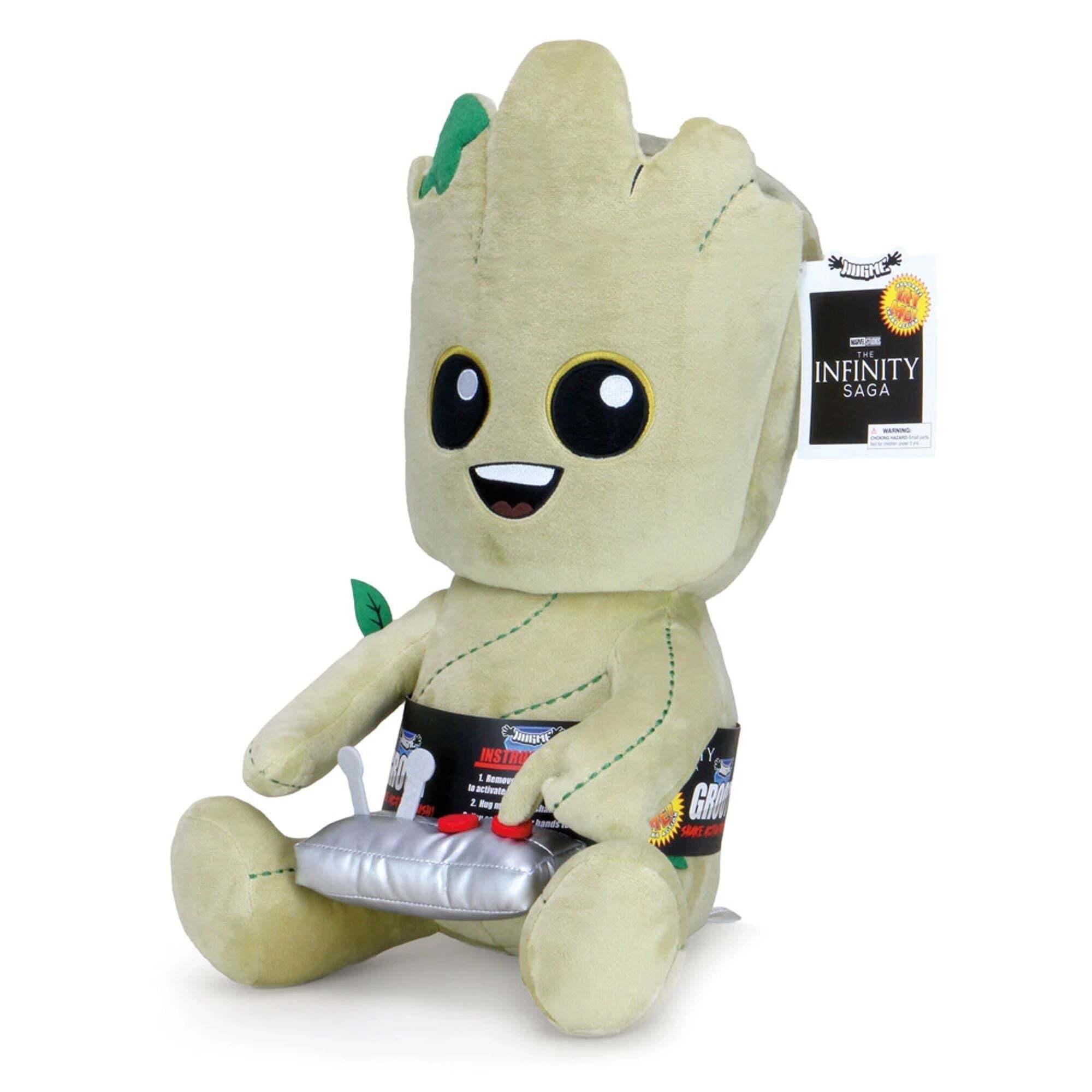 I Guardiani della Galassia sono qui, pronti a salvare l'universo... ma prima, Groot deve completare il suo livello! Coccola questo peluche e lui ricambierà le tue coccole! Questo peluche è dotato di una funzione vibrante che reagisce agli abbracci o persino ai battimani, per un'esperienza ancora più piacevole. 3 batterie AA incluse. Non adatto a bambini di età inferiore a 3 anni (rischio di soffocamento a causa di piccole parti). Altezza: 40 cm