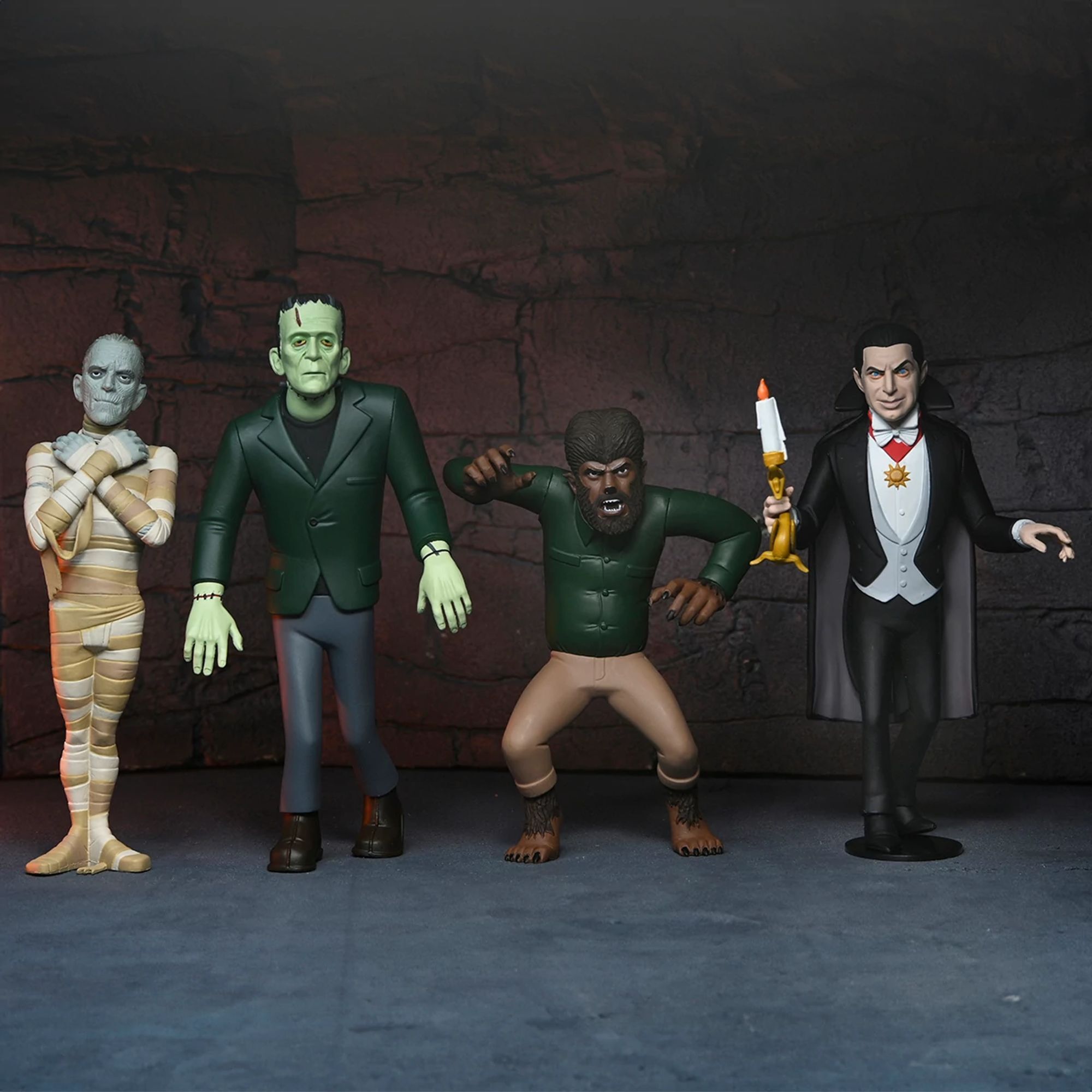 Immergiti nella nostra collezione horror con questi adorabili mostriciattoli! Gli appassionati dei famosi mostri adoreranno questa serie di statuette, che include l'Uomo Lupo, la Mummia, Dracula e il Mostro di Frankenstein! Ogni statuetta, alta circa 15 cm, è disponibile in una nuova confezione con uno sfondo fustellato bonus. Altezza: 15 cm