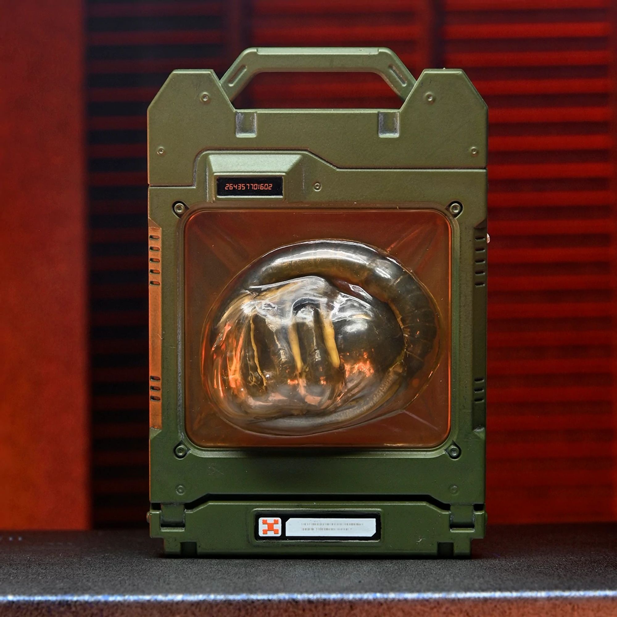 Una valigia criogenica con un Facehugger e parti in plastica intercambiabili.