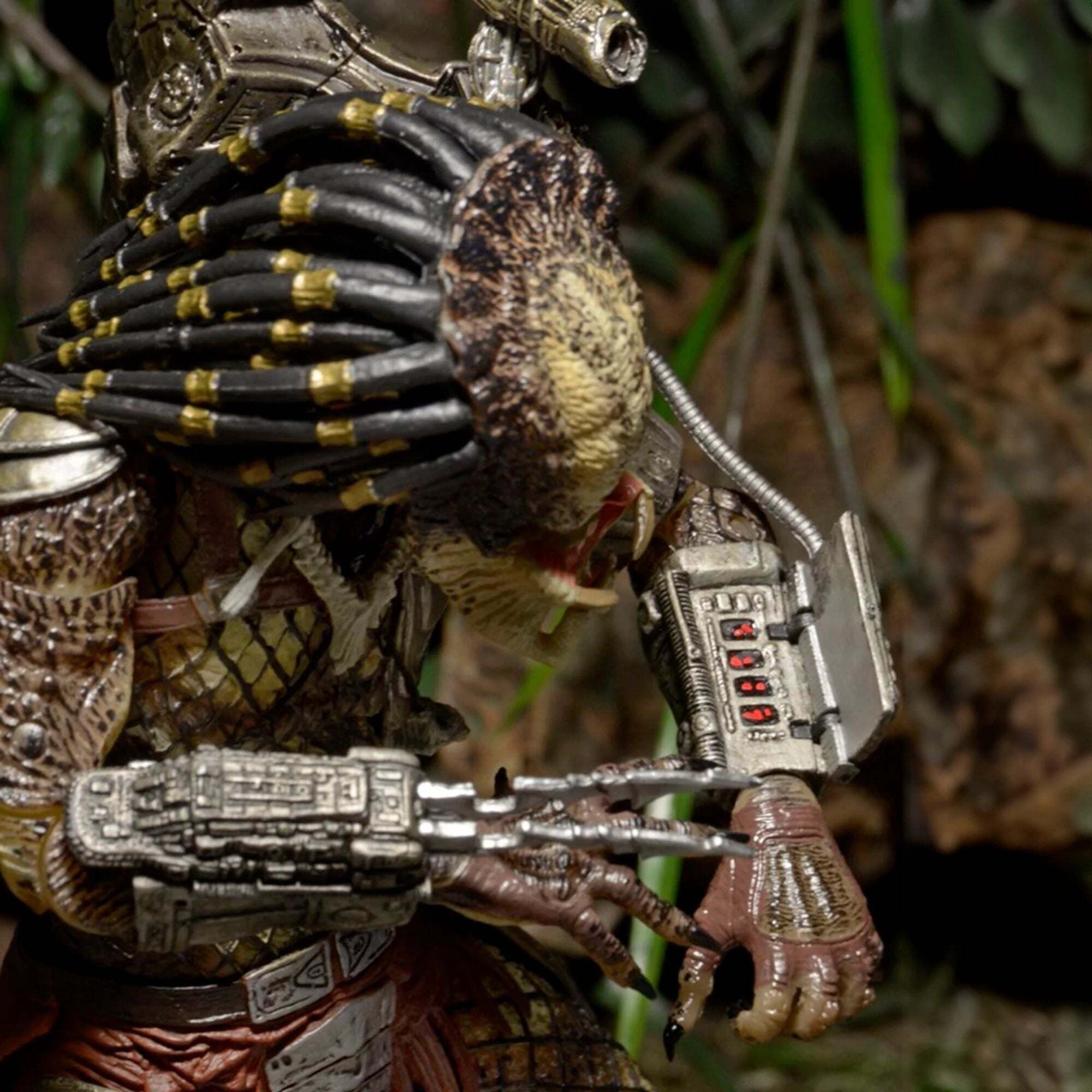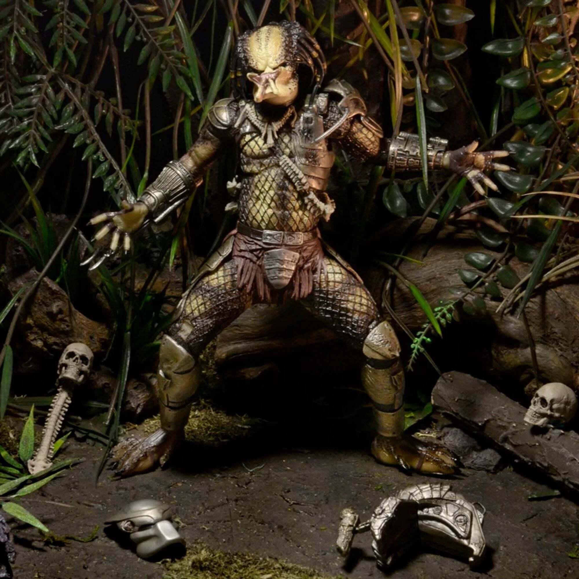 Finalmente, i classici Predator sono tornati, con il sindaco aggiornamenti! Ispirati al film originale Predator, presentiamo l'edizione da collezione definitiva del Jungle Hunter. Questo cacciatore ha ricevuto il trattamento "Ultimate", che include articolazioni aggiuntive nei bicipiti (snodo per bicipiti), gomiti (doppia articolazione del gomito) e busto, oltre a un braccialetto apribile! È dotato di teste e mani intercambiabili, oltre a una spina dorsale, una maschera, un effetto cannone e un teschio umano. Presentato in una teca, ideale per i collezionisti. Altezza: 18 cm
