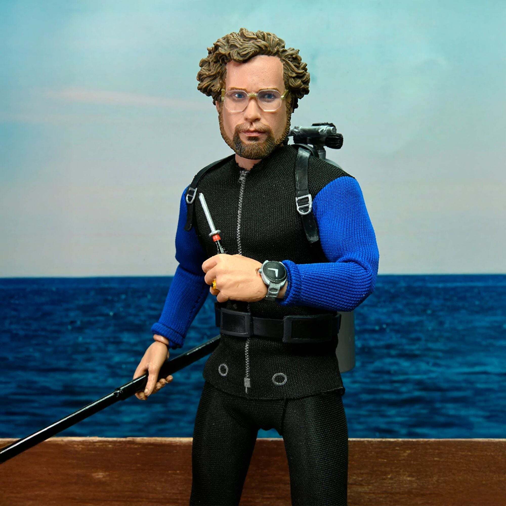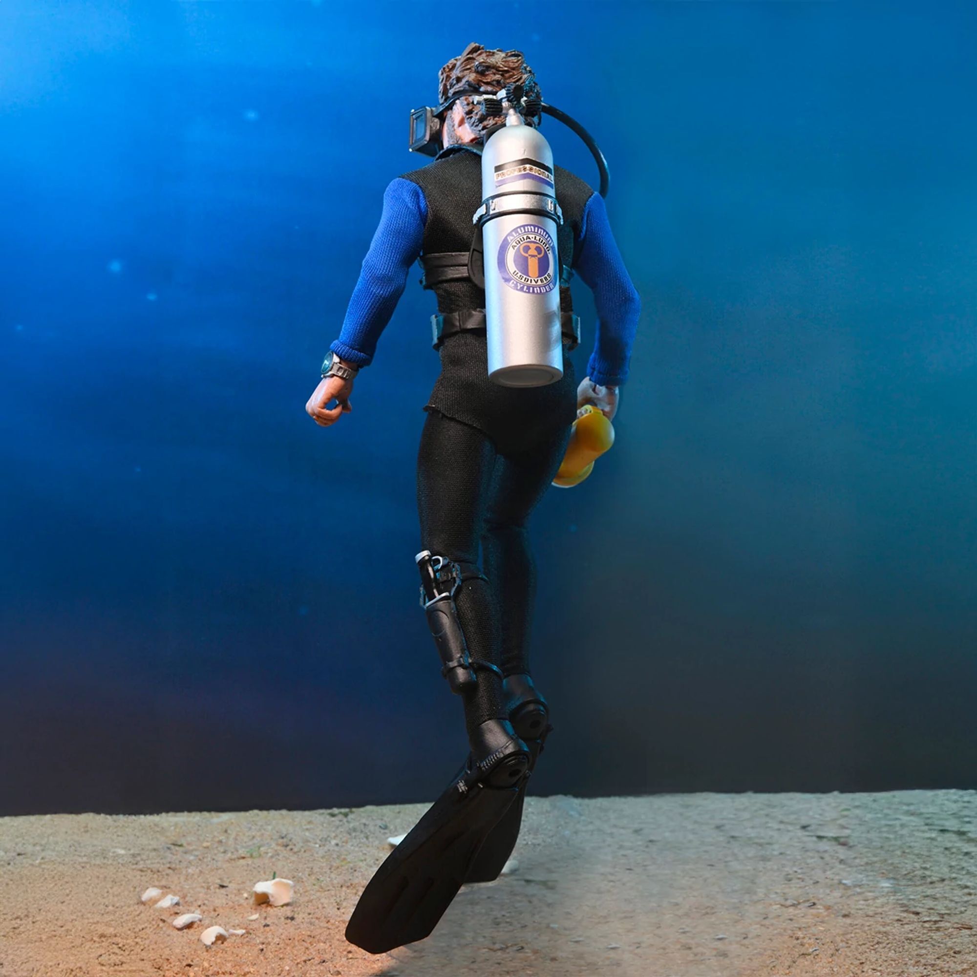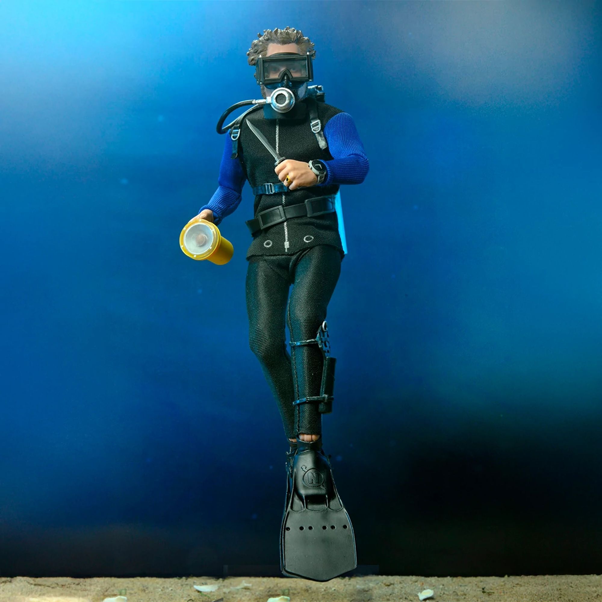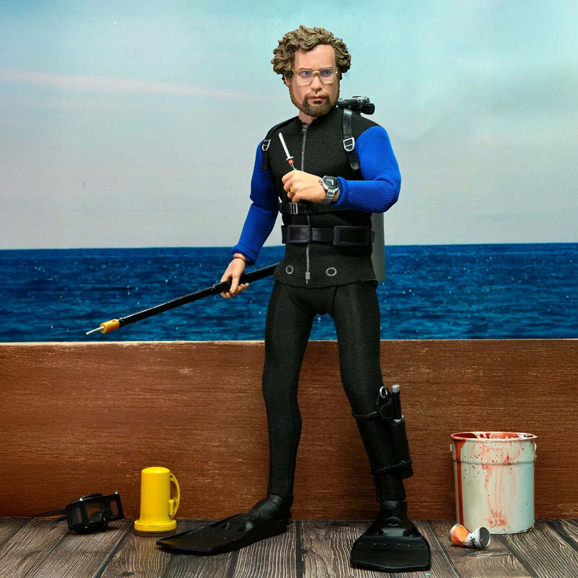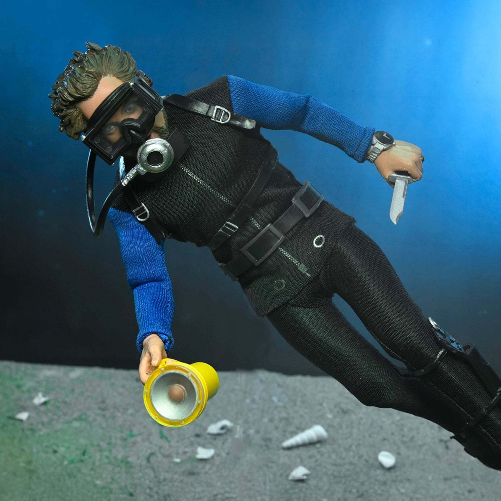 Lo Squalo è considerato uno dei più grandi capolavori del cinema, segnando la nascita del blockbuster estivo. NECA è orgogliosa di presentare una nuova action figure da 20 cm, vestita con veri abiti in tessuto, raffigurante Matt Hooper, interpretato da Richard Dreyfuss nel classico del 1975. Ispirata alle scene della gabbia degli squali, questa action figure del giovane oceanografo è dotata di accessori fedeli al film: pinne, arpione, luce subacquea, coltello e bombola di ossigeno, oltre a diverse parti intercambiabili per la testa. Presentata in una vetrina da collezione. Altezza: 8 pollici