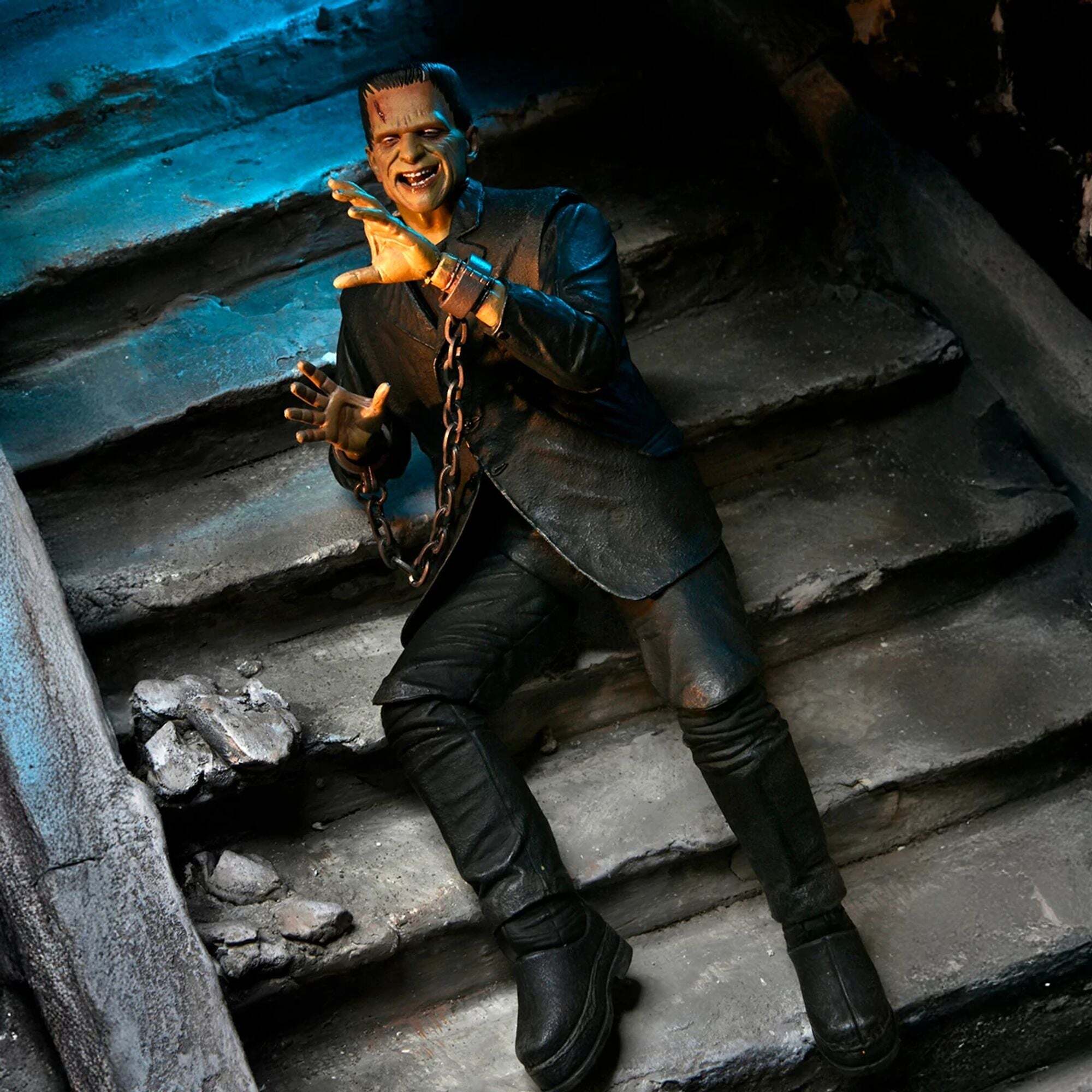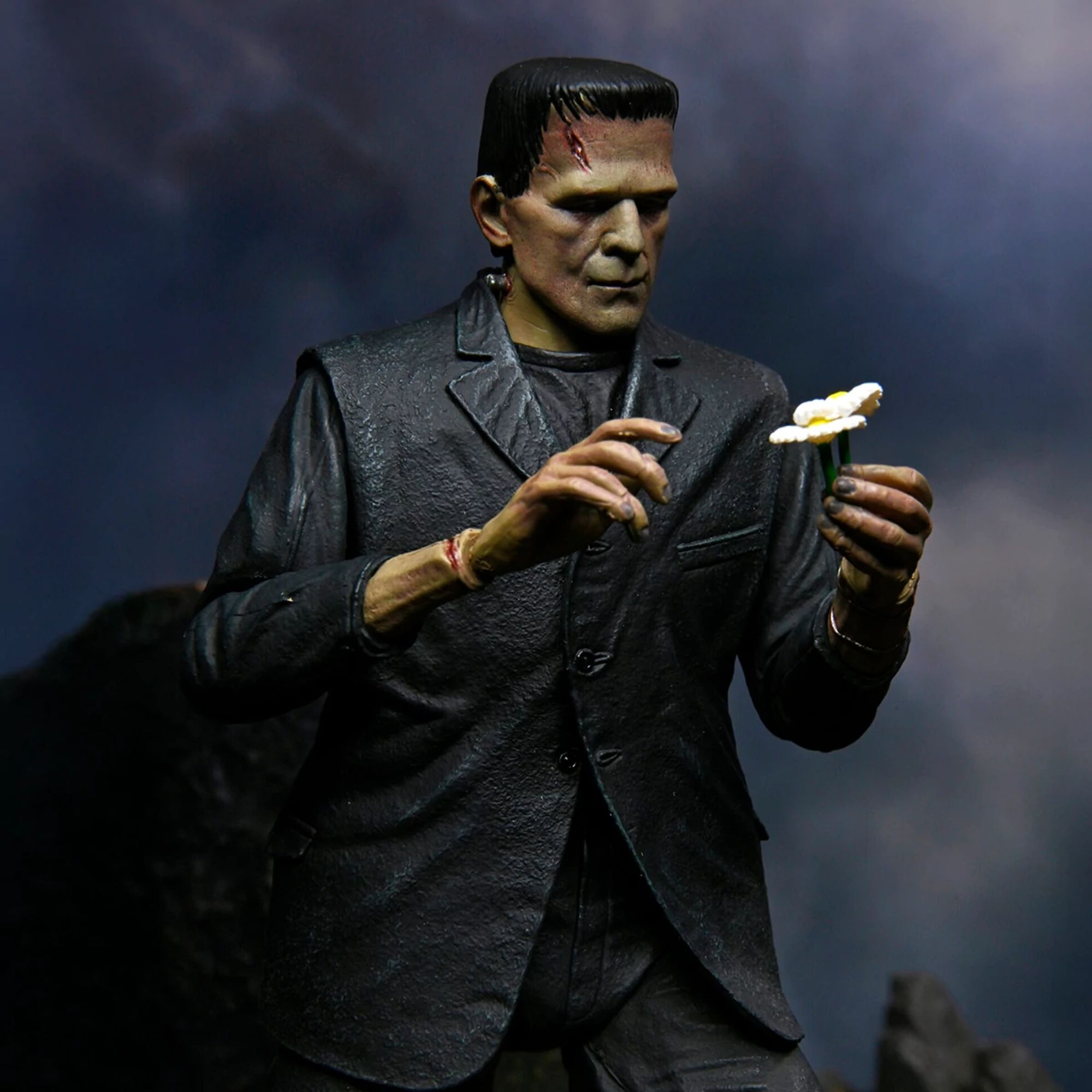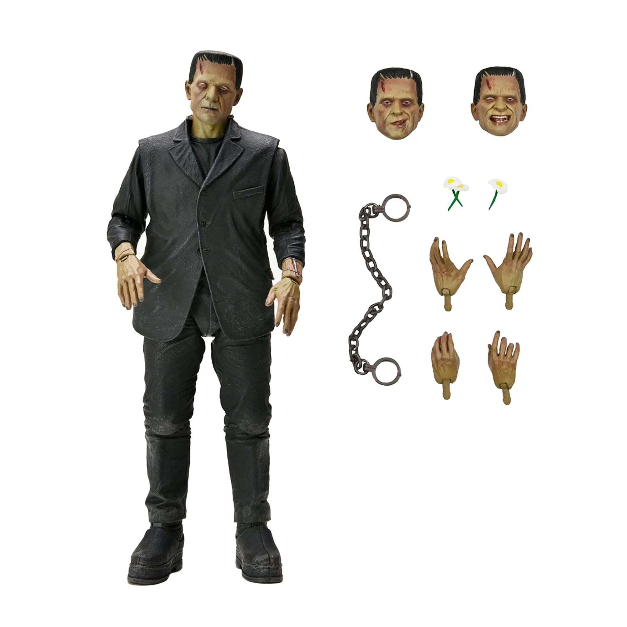 Per celebrare il 90° anniversario del classico film Frankenstein, NECA è orgogliosa di presentare gli Universal Monsters nella sua linea di action figure Ultimate! La scultura rende omaggio alla toccante interpretazione di Boris Karloff del mostro incompreso, qui presentata in una versione colorata. La statuetta da 18 cm è dotata di numerosi accessori: 3 teste intercambiabili, 6 mani intercambiabili, catene e un mazzo di margherite. Il tutto presentato in una speciale confezione da collezione per l'anniversario. Altezza: 7 pollici