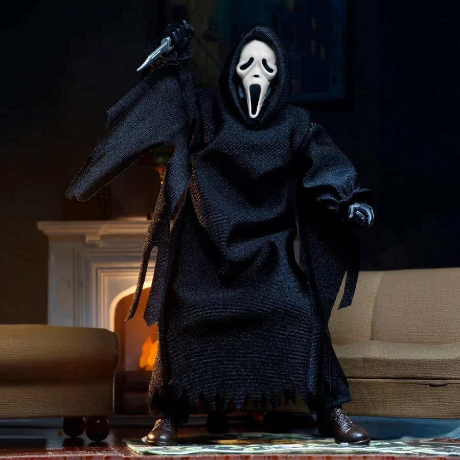 Il famoso assassino mascherato Ghost Face, un personaggio iconico della serie di film Scream, torna in una action figure da 20 cm con abiti in tessuto! Completamente articolato, Ghost Face indossa un vero abito in tessuto accuratamente progettato per replicare fedelmente il costume originale, inclusi tunica, cappuccio e maniche. È equipaggiato con la sua famosa arma, il coltello, e include anche mani intercambiabili e una maschera scolpita con estrema precisione. Altezza: 8 pollici