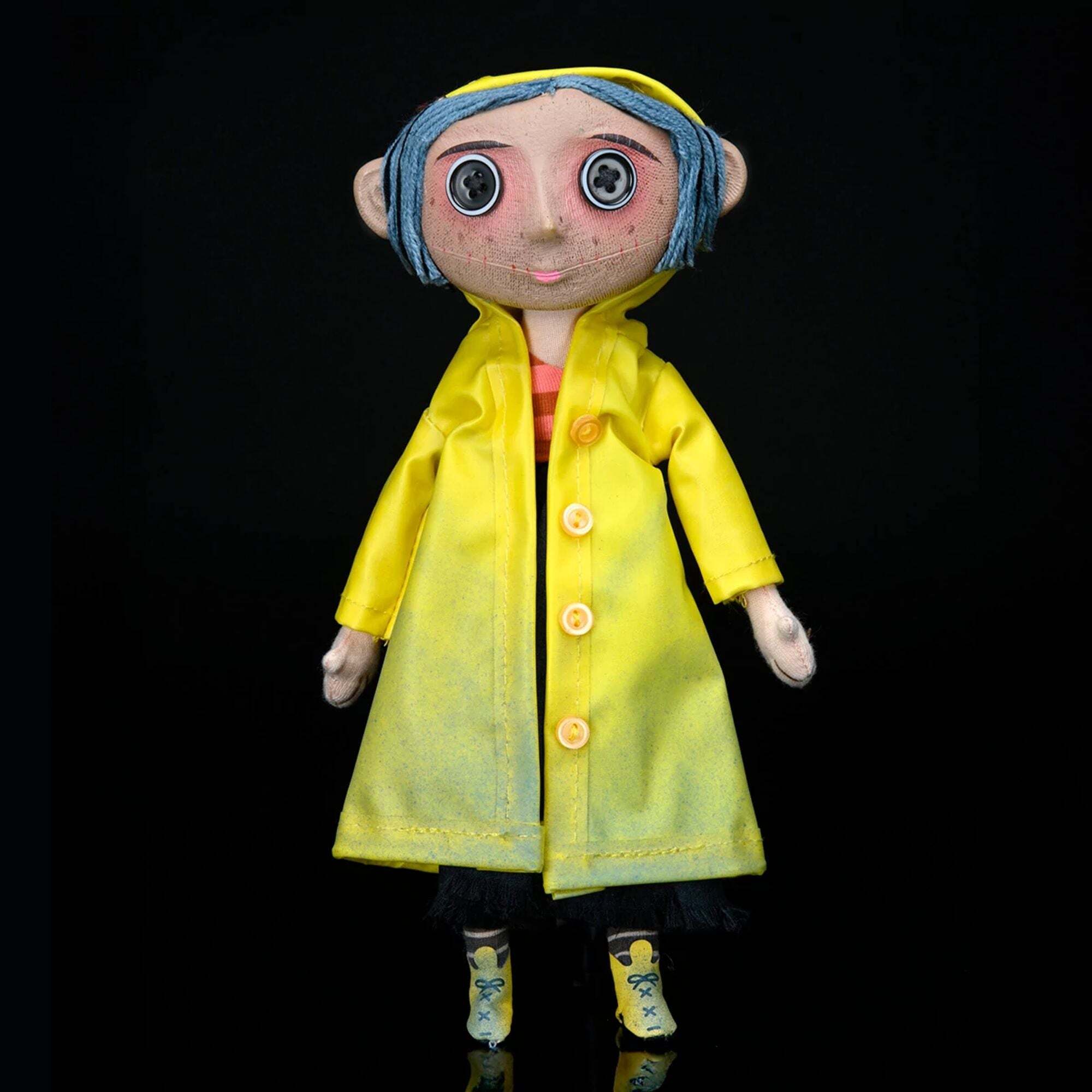 Immergiti nello strano e accattivante mondo di Coraline! Questa fedele replica della bambola Coraline è direttamente ispirata al film d'animazione in stop-motion di Henry Selick, a sua volta tratto dal romanzo cult di Neil Gaiman. Riproduce fedelmente ogni dettaglio visto sullo schermo: capelli di lana, occhi a bottone e un impermeabile giallo rimovibile. Un'armatura flessibile integrata permette di piegare braccia, gambe e persino la giacca, dando vita a questa misteriosa bambola. Alta circa 23 cm, è un oggetto da collezione ideale per i fan di tutte le età! Altezza: 25 cm