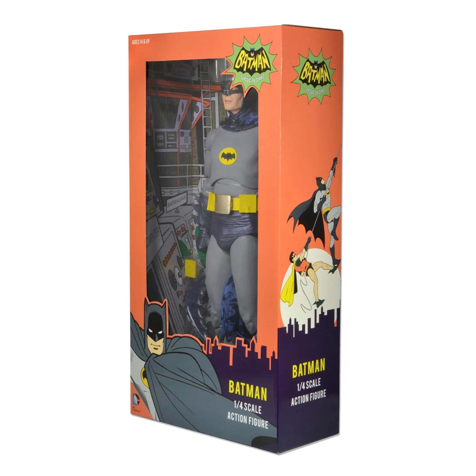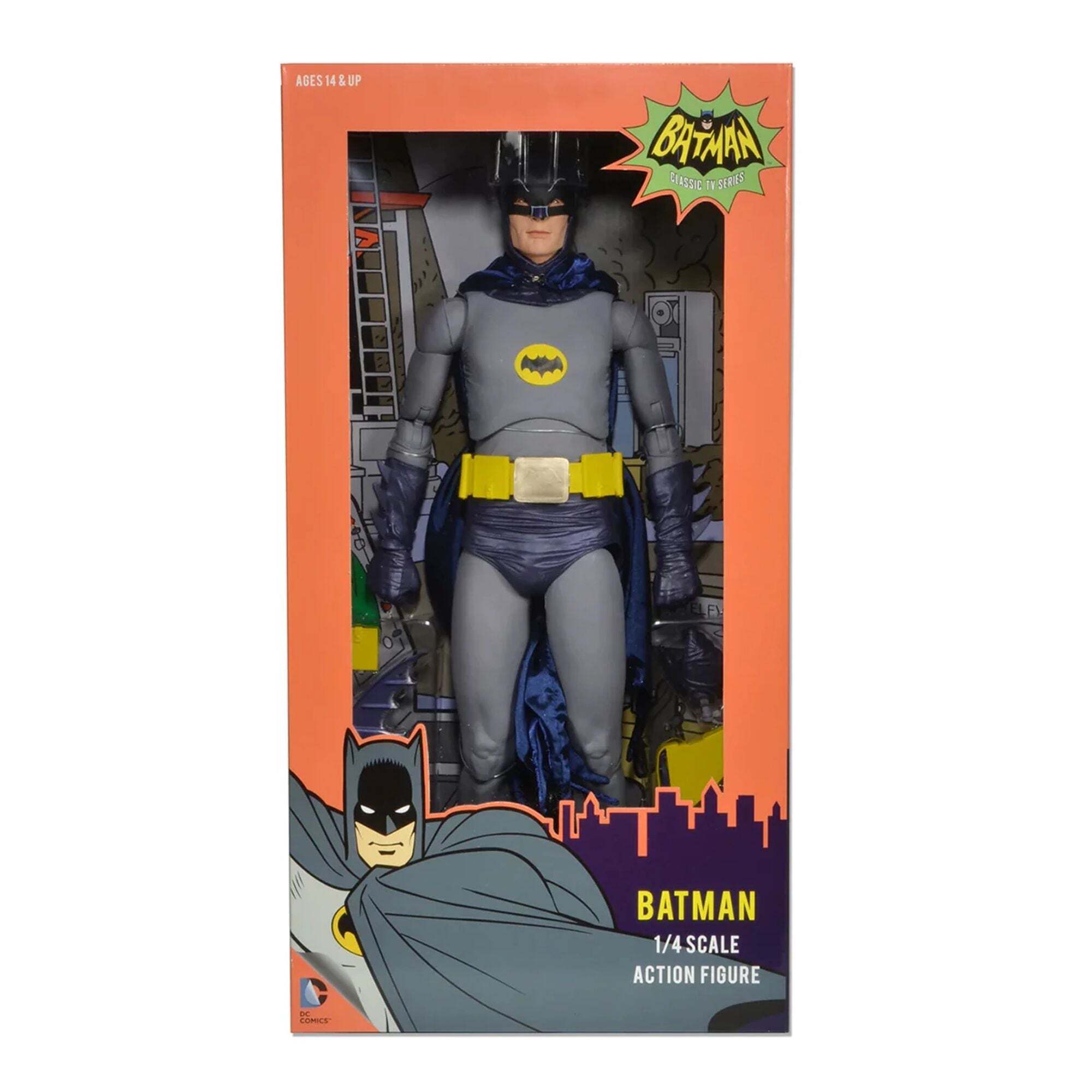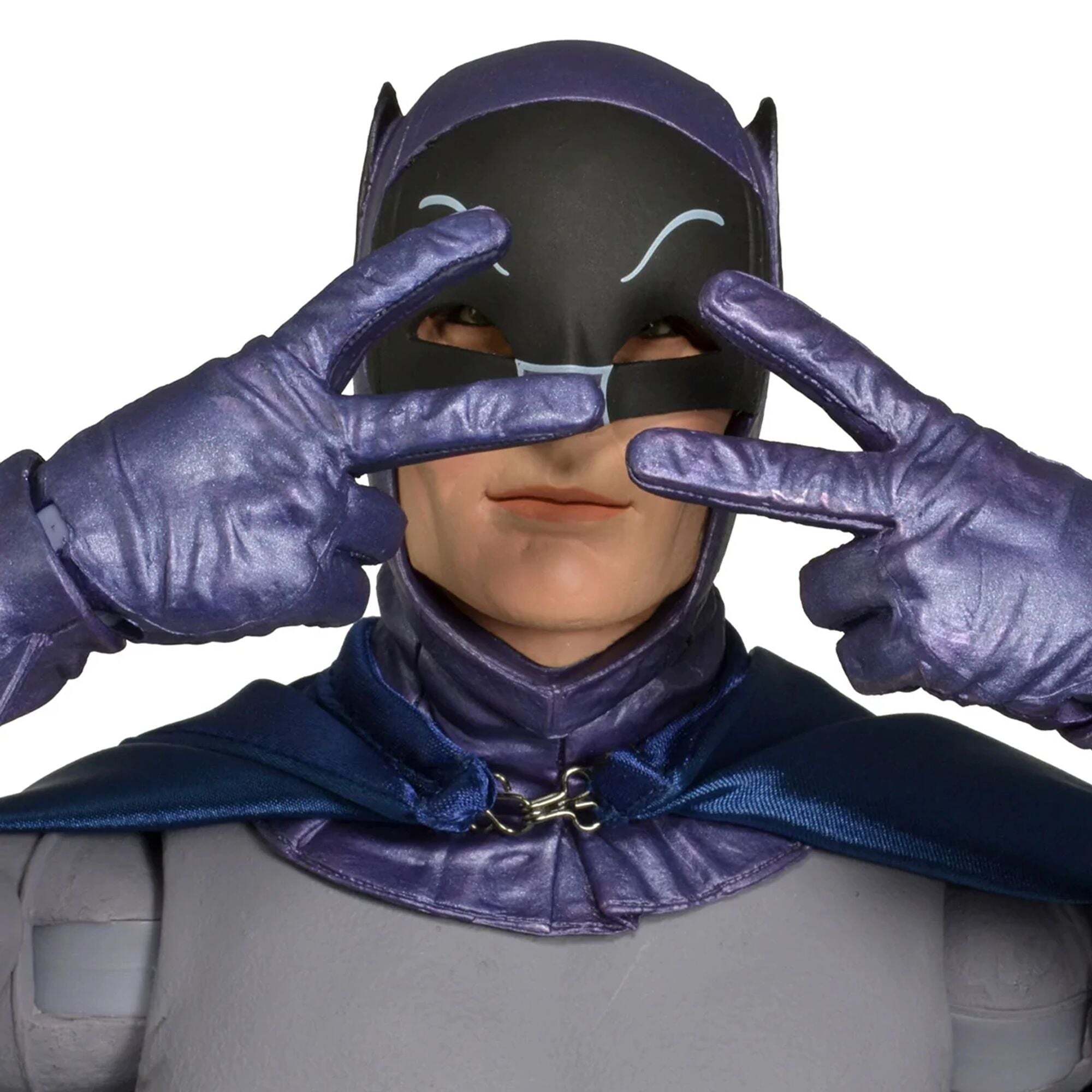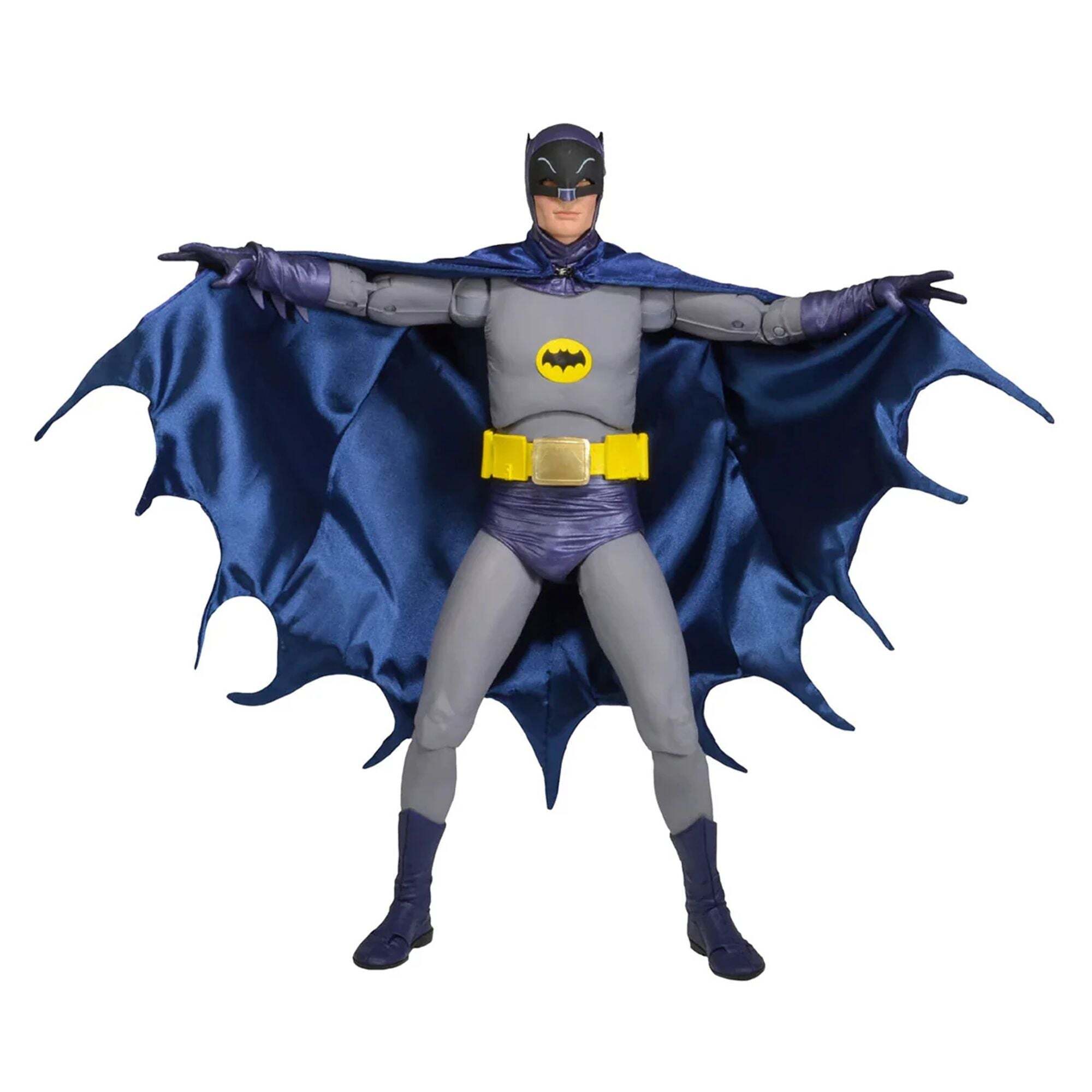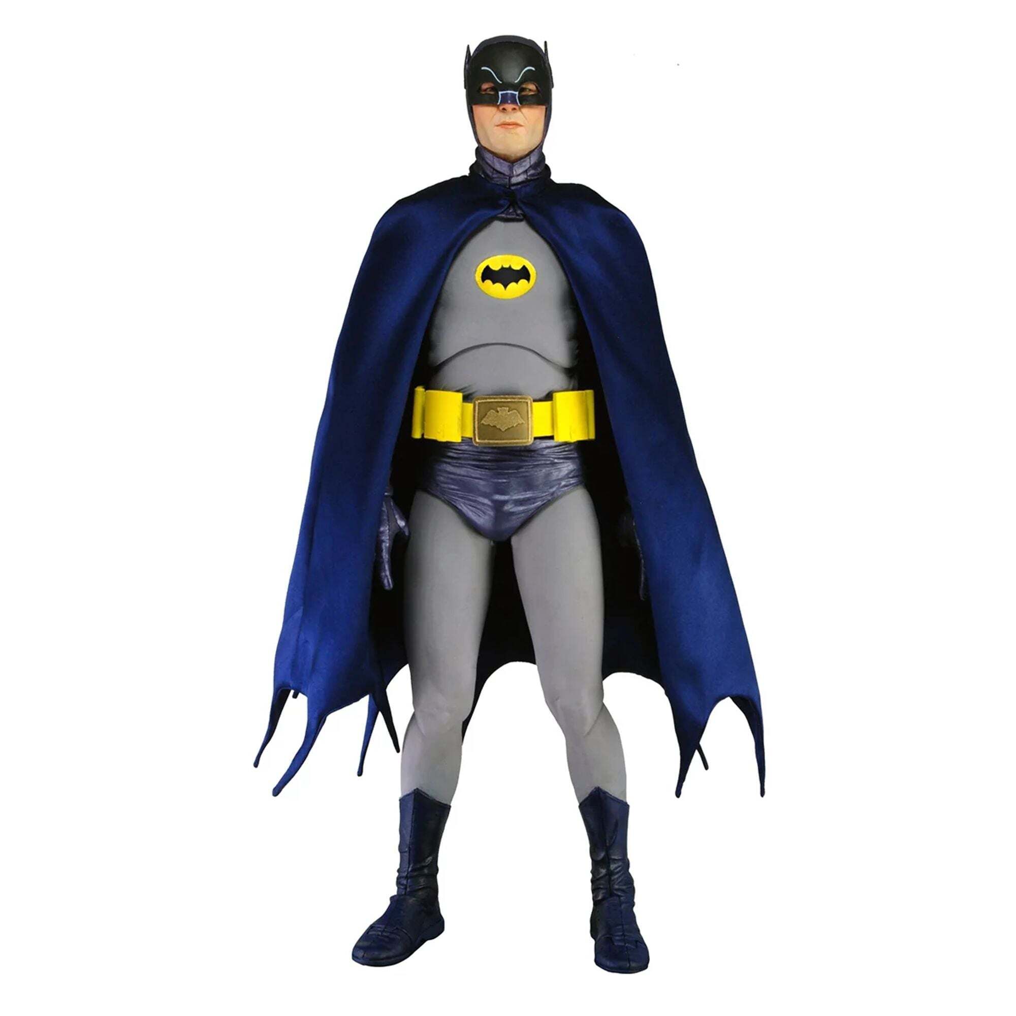 Per quasi 50 anni, la serie televisiva Batman ha affascinato generazioni di spettatori e, per molti, Adam West rimane il volto iconico del Cavaliere Oscuro. Siamo cresciuti con questa versione iconica di Batman ed è un onore offrire questa action figure articolata da 45 cm, fedele all'aspetto di Adam West. Include una vera cintura multifunzione, mani intercambiabili e molti accessori aggiuntivi. Altezza: 18 pollici