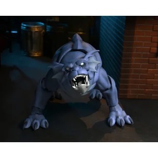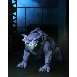 "Mille anni fa, regnavano la superstizione e la spada..." Il tempo dei Gargoyles è tornato! Un vero classico di culto degli anni '90, Gargoyles racconta la storia di un antico clan di gargoyles trasportati nell'odierna Manhattan dopo il trasferimento del loro castello scozzese. Il fedele compagno a quattro zampe di Goliath, Bronx, potrebbe non avere le ali, ma è comunque un membro a pieno titolo del clan e un formidabile combattente! Questa action figure Ultimate completamente articolata è alta circa 13 cm e include diversi accessori: due teste intercambiabili, un pezzo di carne e un paio di ali ripiegate compatibili con la action figure di Goliath (vendute separatamente). Presentata in una scatola da collezione con patta illustrata. Altezza: 18 cm