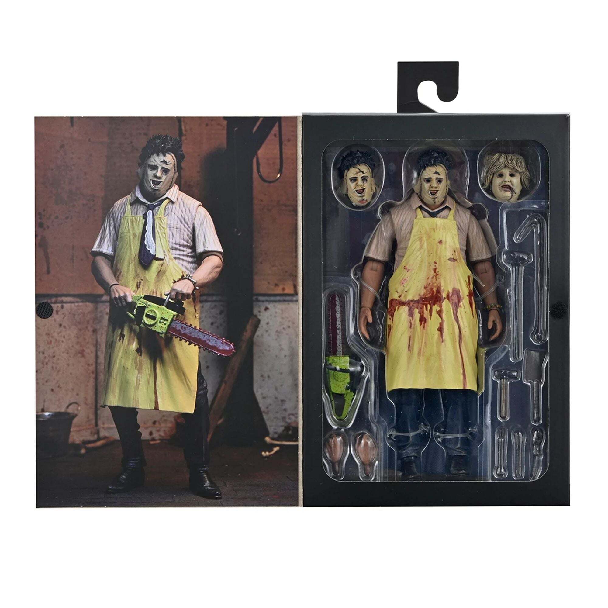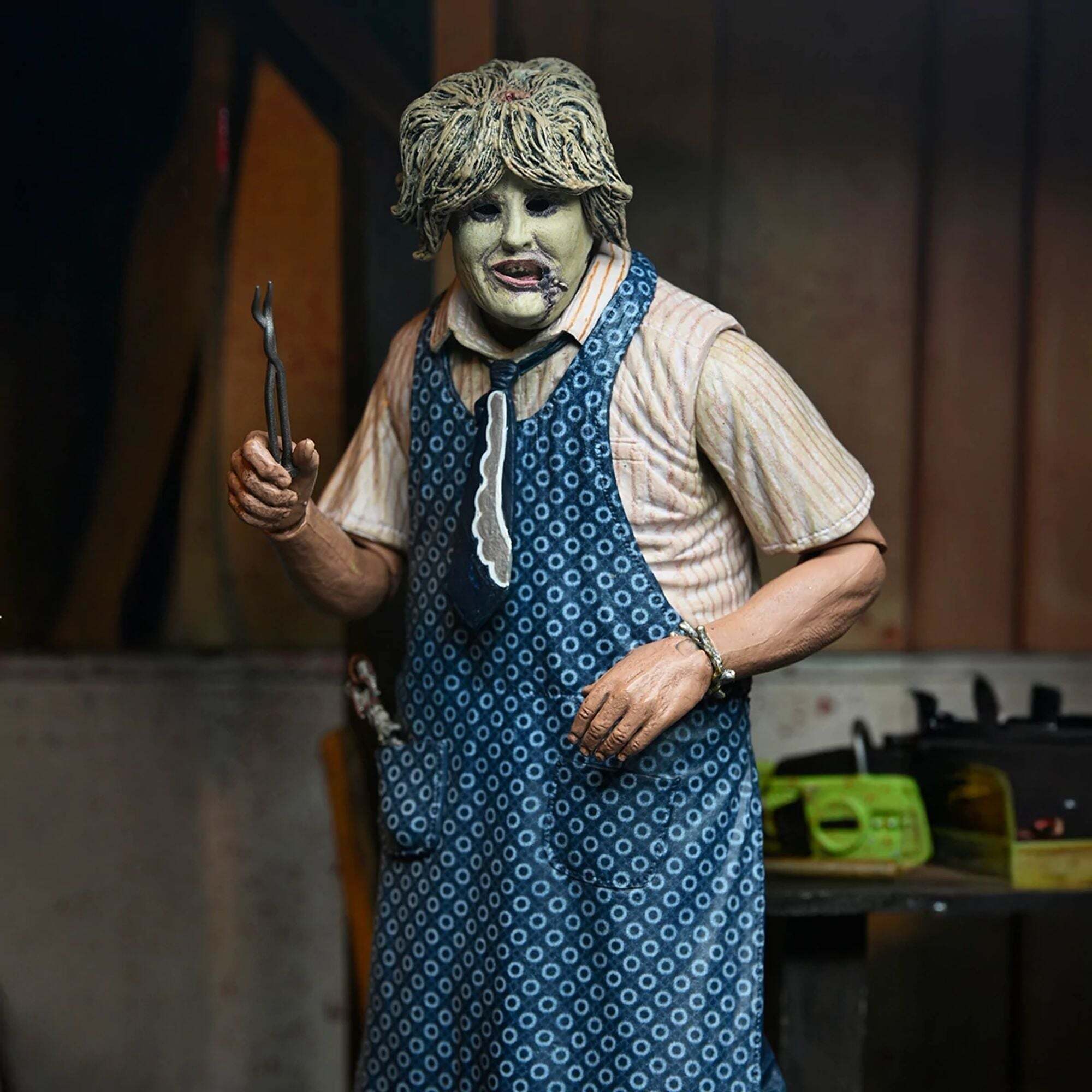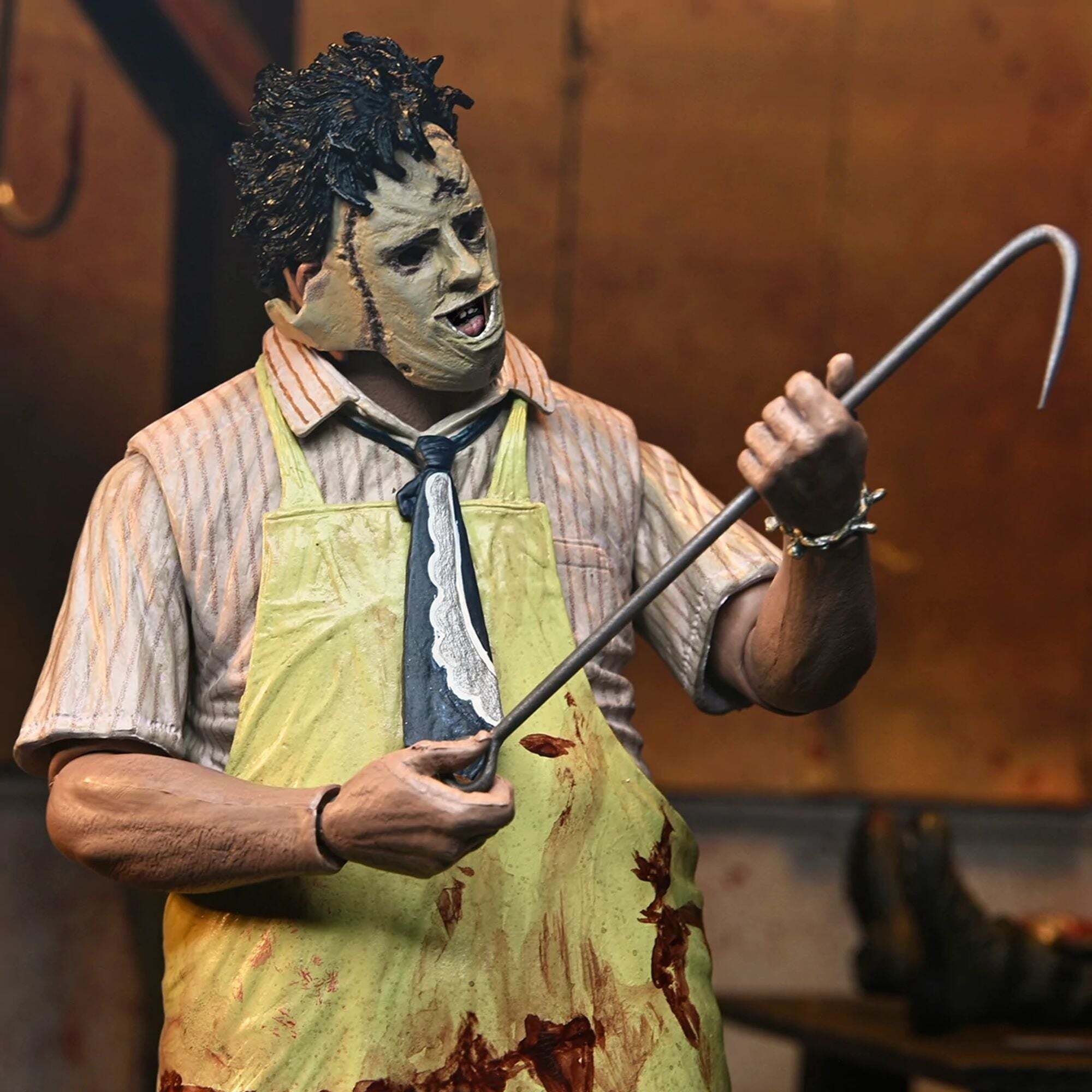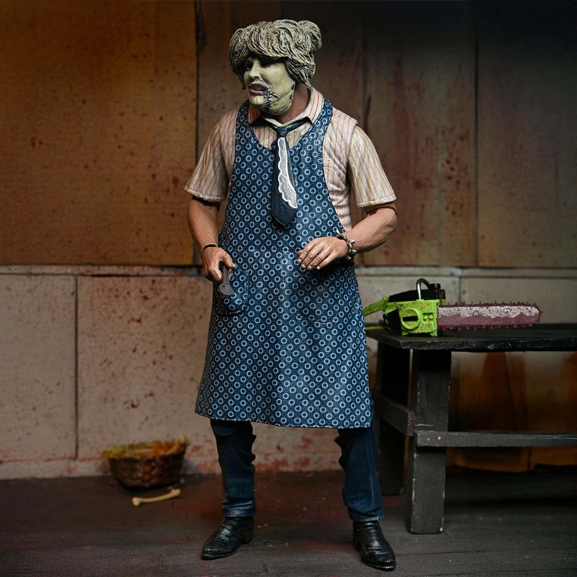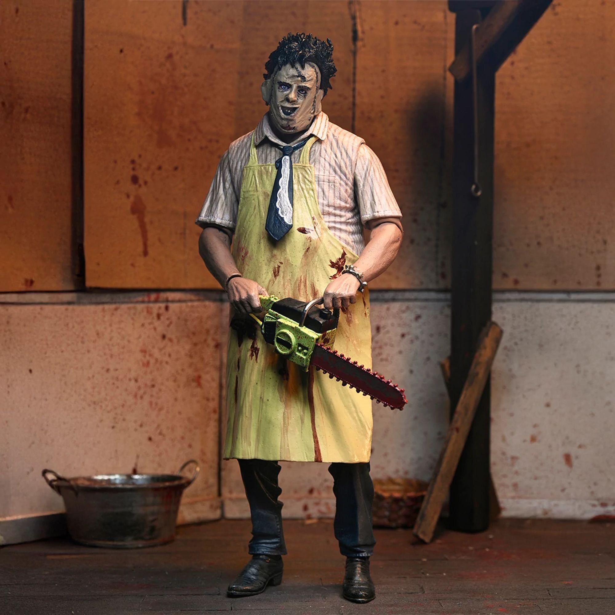 Per celebrare il 50° anniversario di Non aprite quella porta, NECA ripropone Leatherface con una nuovissima versione Ultimate completamente ridisegnata! Il classico cult del 1974 di Tobe Hooper ha rivoluzionato il cinema horror, e questa è l'occasione perfetta per aggiungerne un pezzo alla vostra collezione. Questa action figure da 18 cm altamente articolata presenta due stili grazie ai suoi grembiuli intercambiabili, oltre a tre teste e diverse mani alternative. Per quanto riguarda gli accessori, è dotata dell'iconico arsenale del macellaio texano: una motosega insanguinata, martelli, pinze, coltello, mannaia, uncino da macellaio, cucchiaio e persino un braccialetto. Il tutto è presentato in una scatola da collezione con apertura frontale. Un must per i fan di Leatherface... Aggiungetelo subito alla vostra collezione!