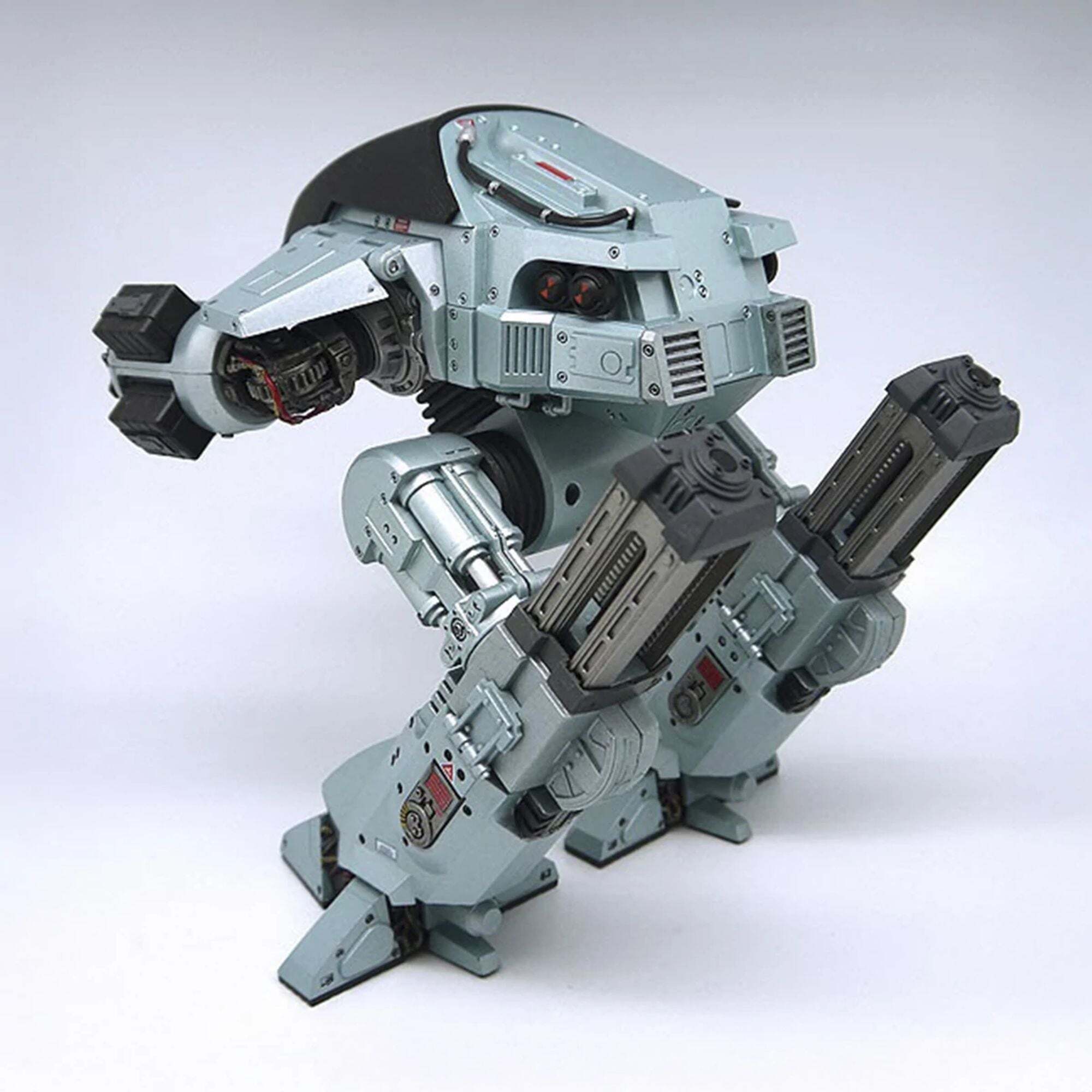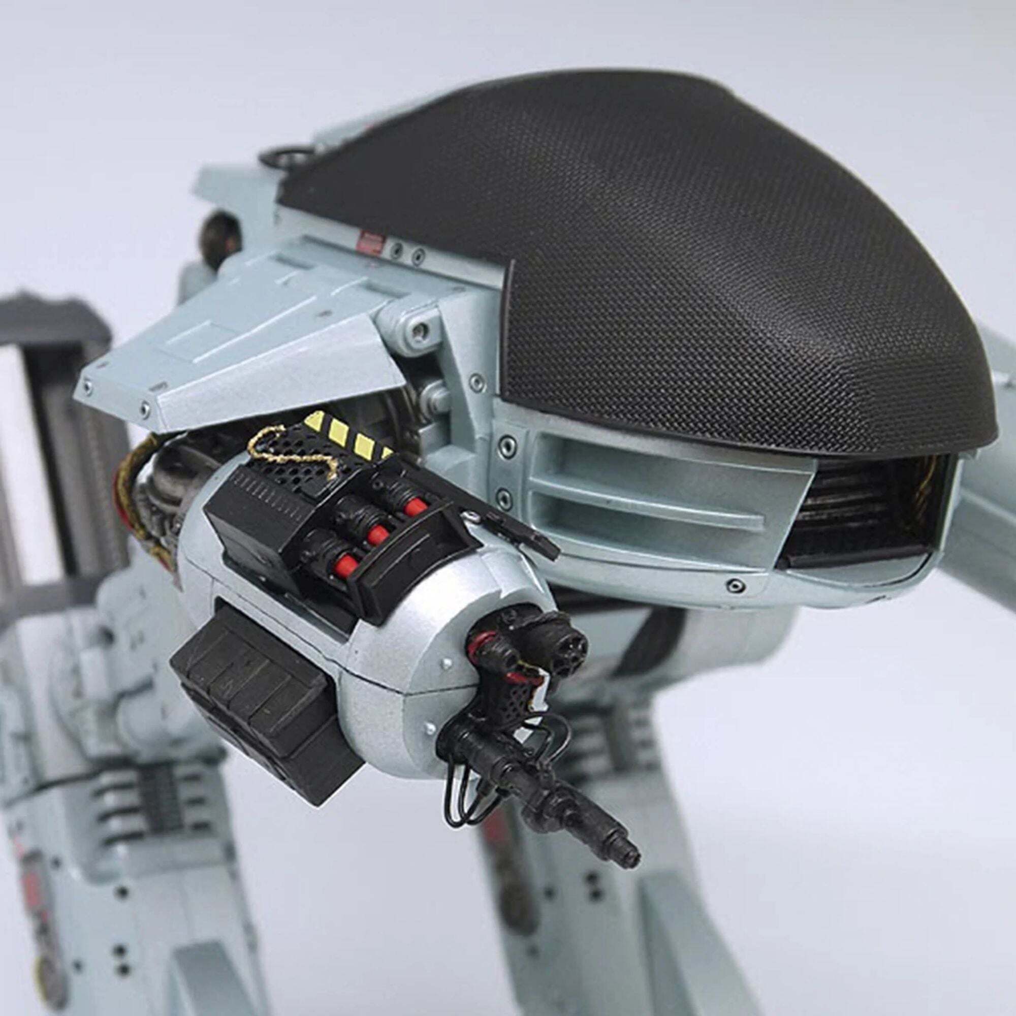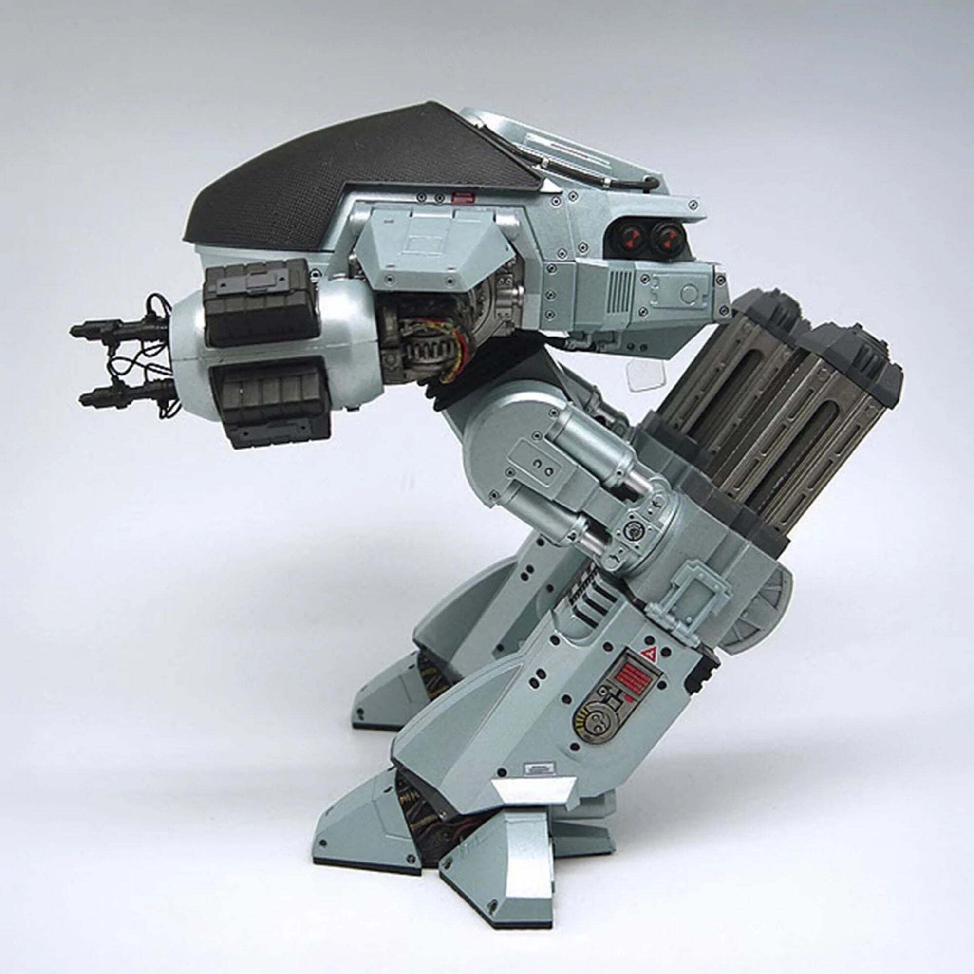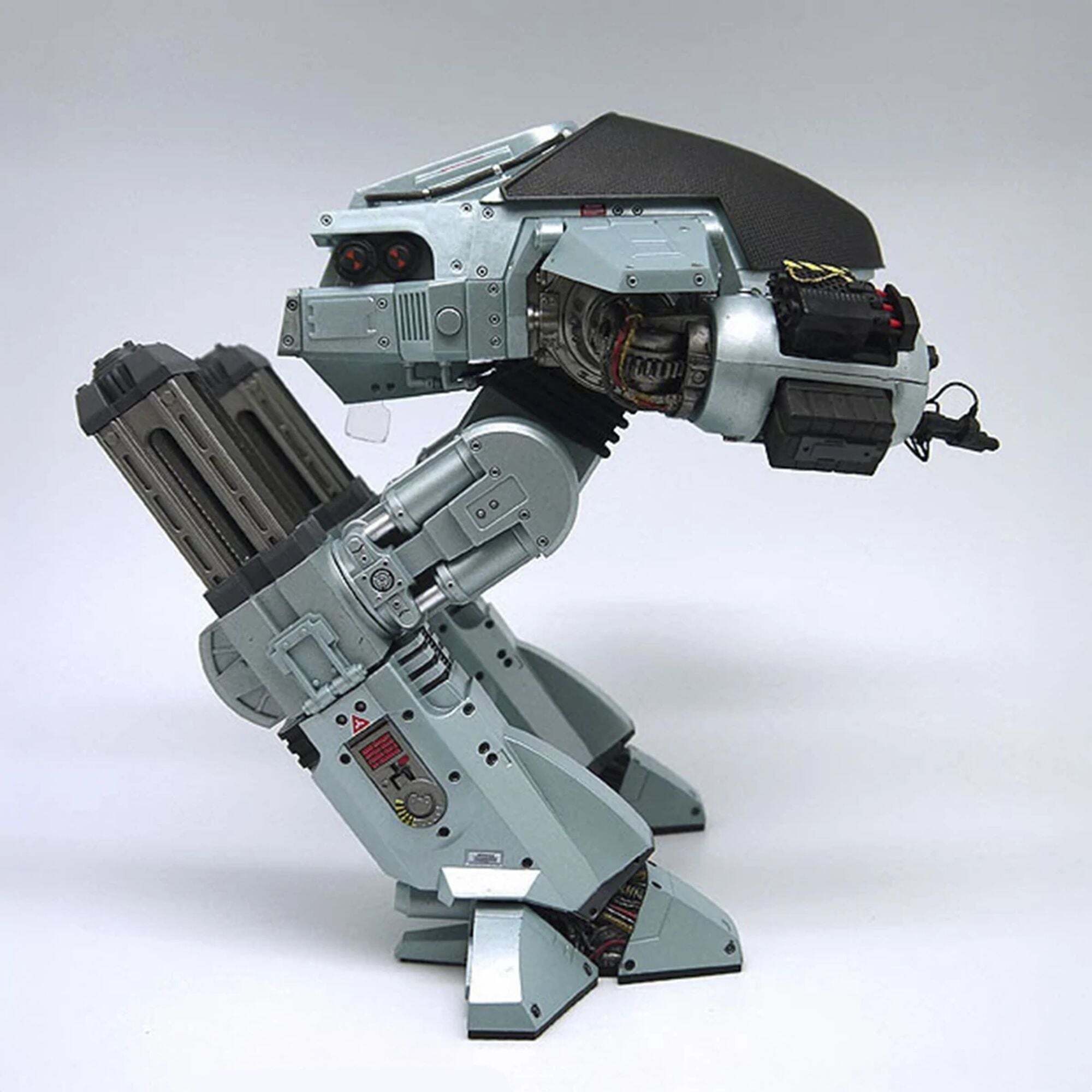 Il futuro delle forze dell'ordine è arrivato! Direttamente dal film originale di RoboCop, l'imponente ED-209 (Enforcement Droid Series 209) è alto quasi 25 cm ed è perfettamente in scala per abbinarsi alle figure di RoboCop da 18 cm (vendute separatamente). Un vero colosso meccanico, offre finalmente un degno avversario al famoso agente di polizia cyborg. Completamente articolato e con dettagli eccezionali, questo ED-209 è dotato di testa girevole, gambe scorrevoli, pannelli articolati per le braccia e cannoni mobili. Incorpora anche effetti sonori e battute del film: suoni idraulici, rumori meccanici e la famosa frase "Attenzione: gettate via l'arma. Avete 15 secondi per obbedire".