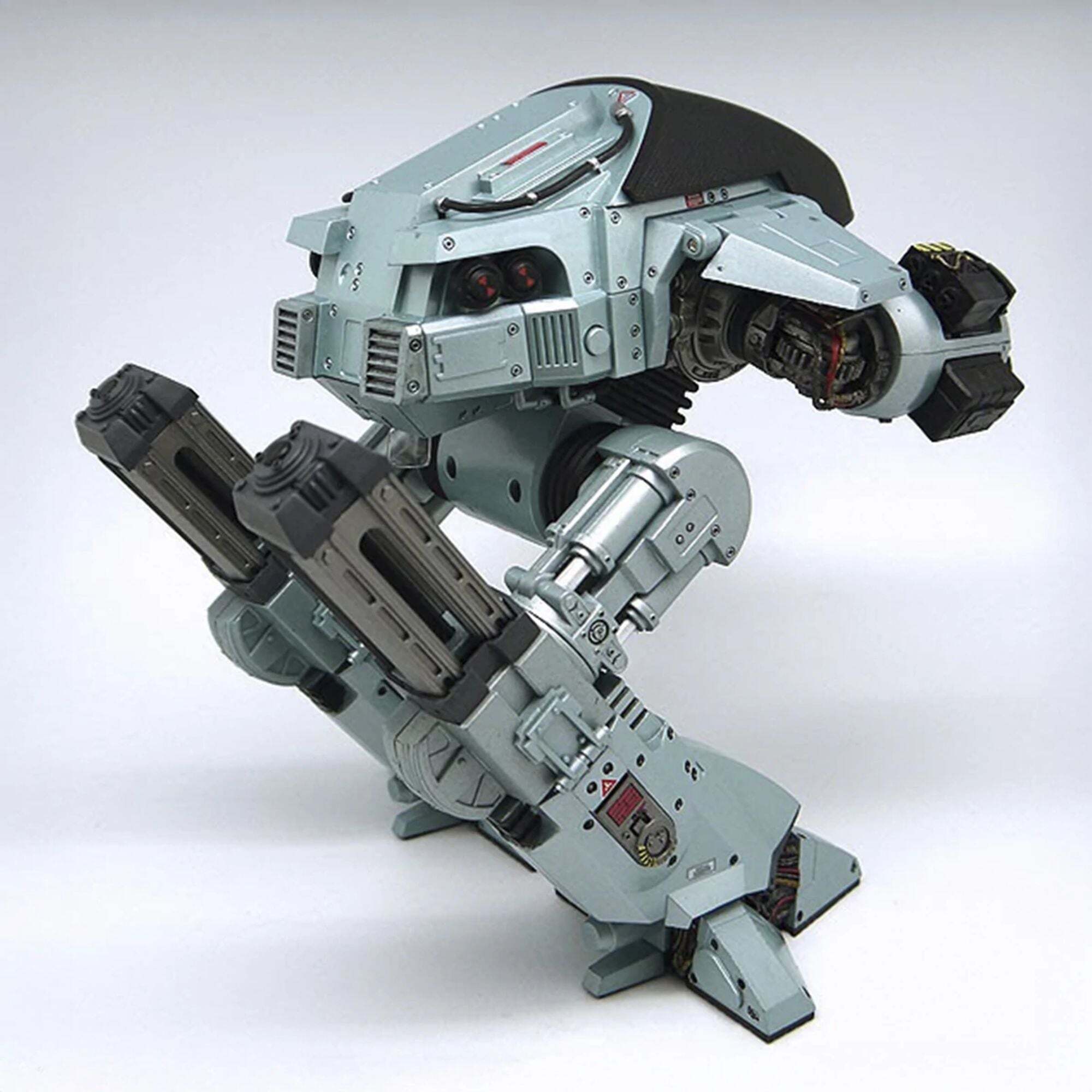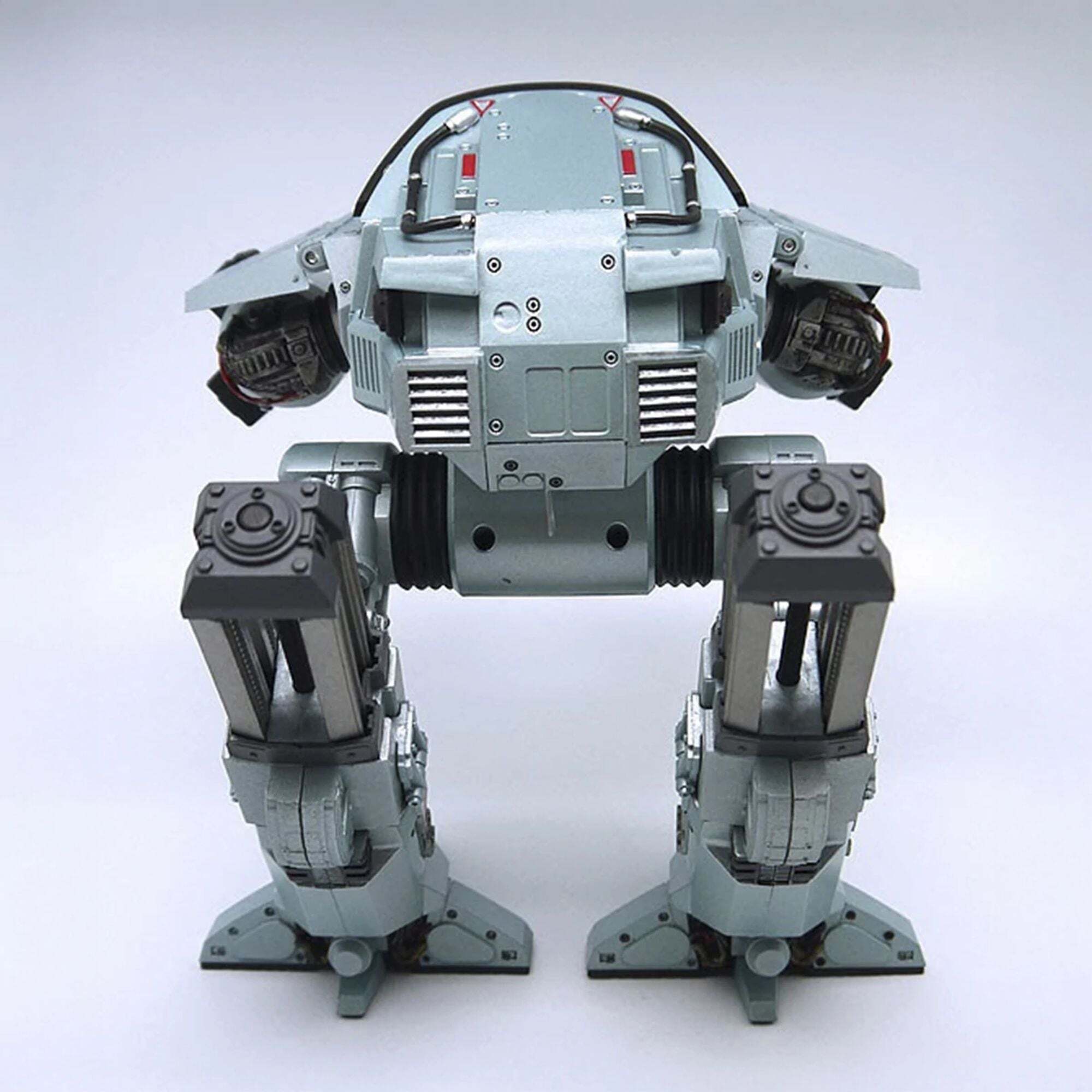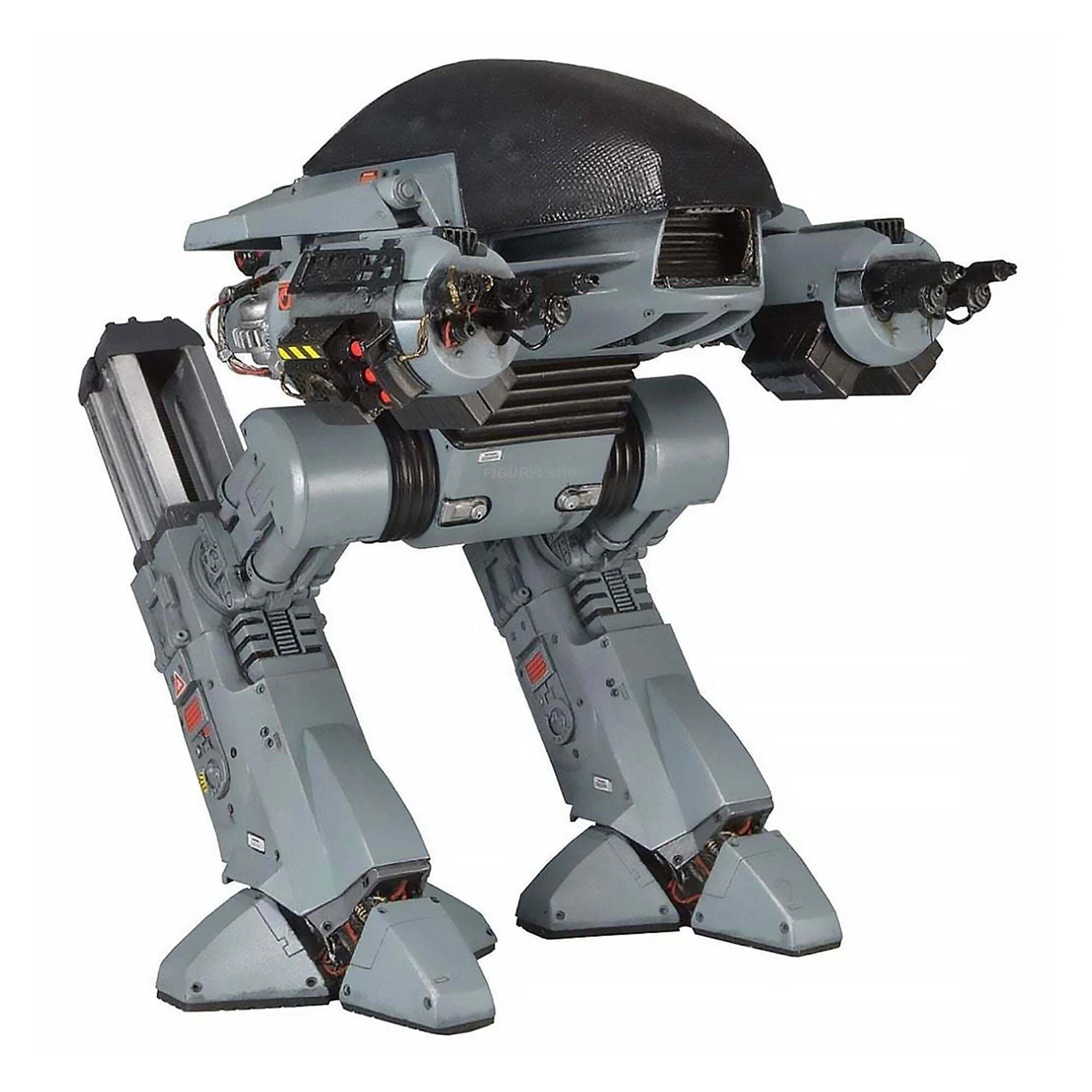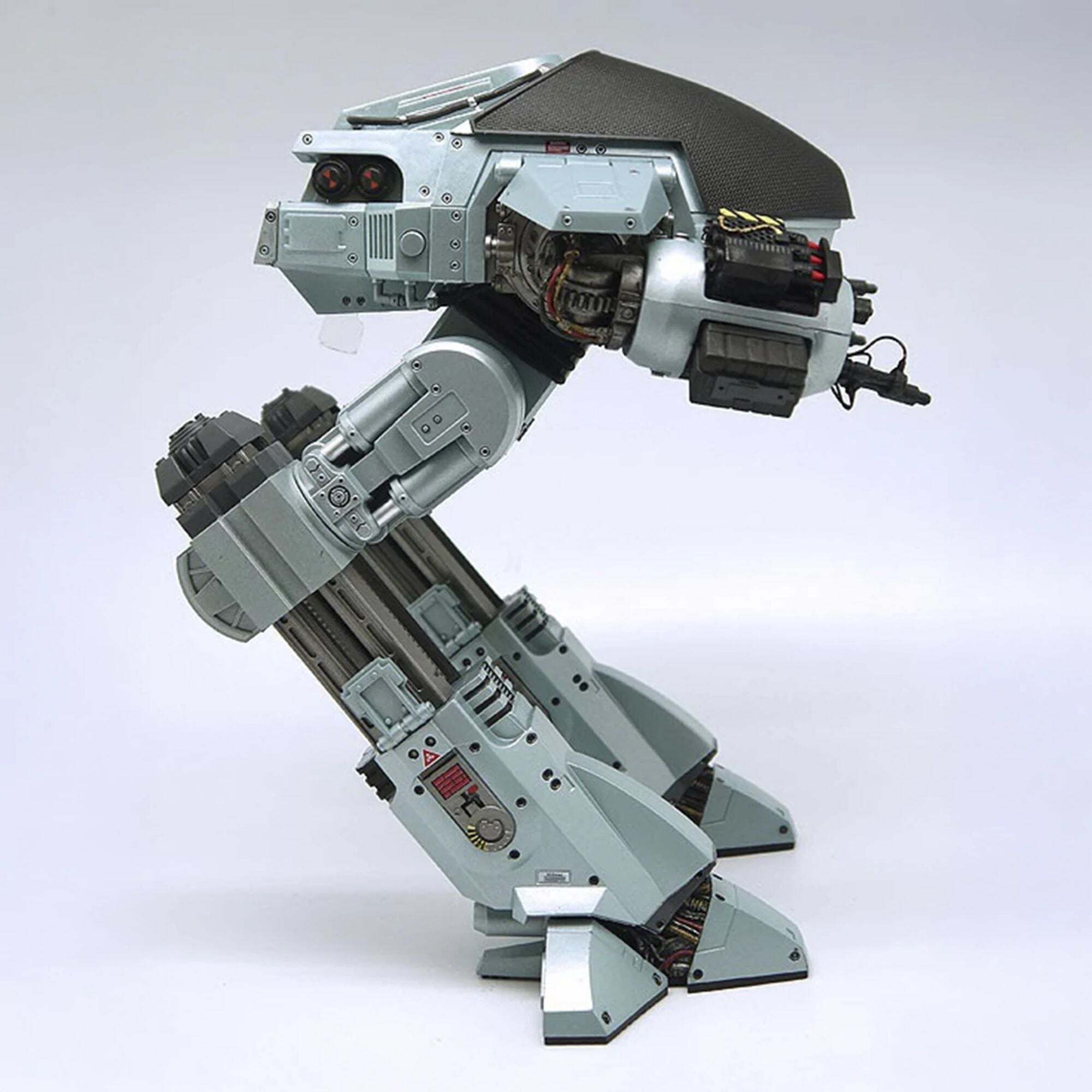 Il futuro delle forze dell'ordine è arrivato! Direttamente dal film originale di RoboCop, l'imponente ED-209 (Enforcement Droid Series 209) è alto quasi 25 cm ed è perfettamente in scala per abbinarsi alle figure di RoboCop da 18 cm (vendute separatamente). Un vero colosso meccanico, offre finalmente un degno avversario al famoso agente di polizia cyborg. Completamente articolato e con dettagli eccezionali, questo ED-209 è dotato di testa girevole, gambe scorrevoli, pannelli articolati per le braccia e cannoni mobili. Incorpora anche effetti sonori e battute del film: suoni idraulici, rumori meccanici e la famosa frase "Attenzione: gettate via l'arma. Avete 15 secondi per obbedire".