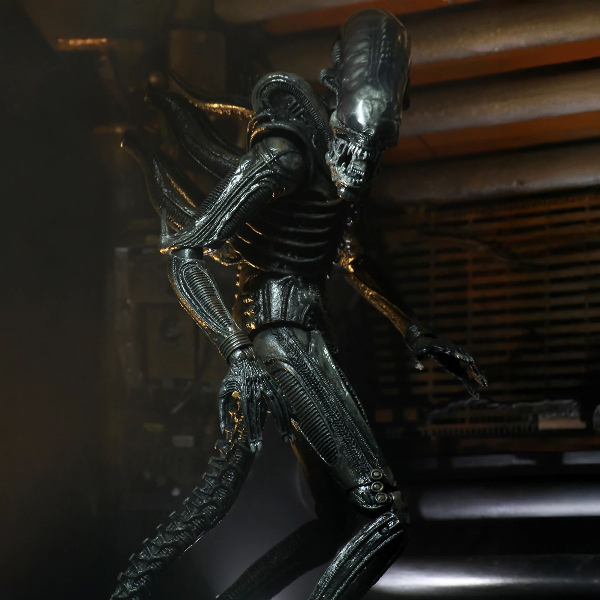 Scopri lo Xenomorfo noto ai fan come "Big Chap", in una nuovissima scultura alta oltre 23 cm. Parte della linea di action figure collezionabili Aliens di NECA, presenta una mascella articolata che si apre per rivelare una bocca interna che si dispiega per un'azione fedele a quella del film.