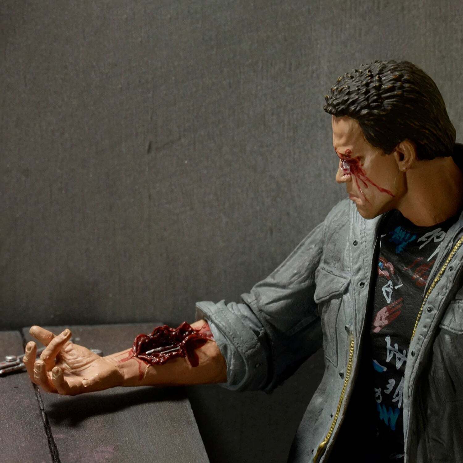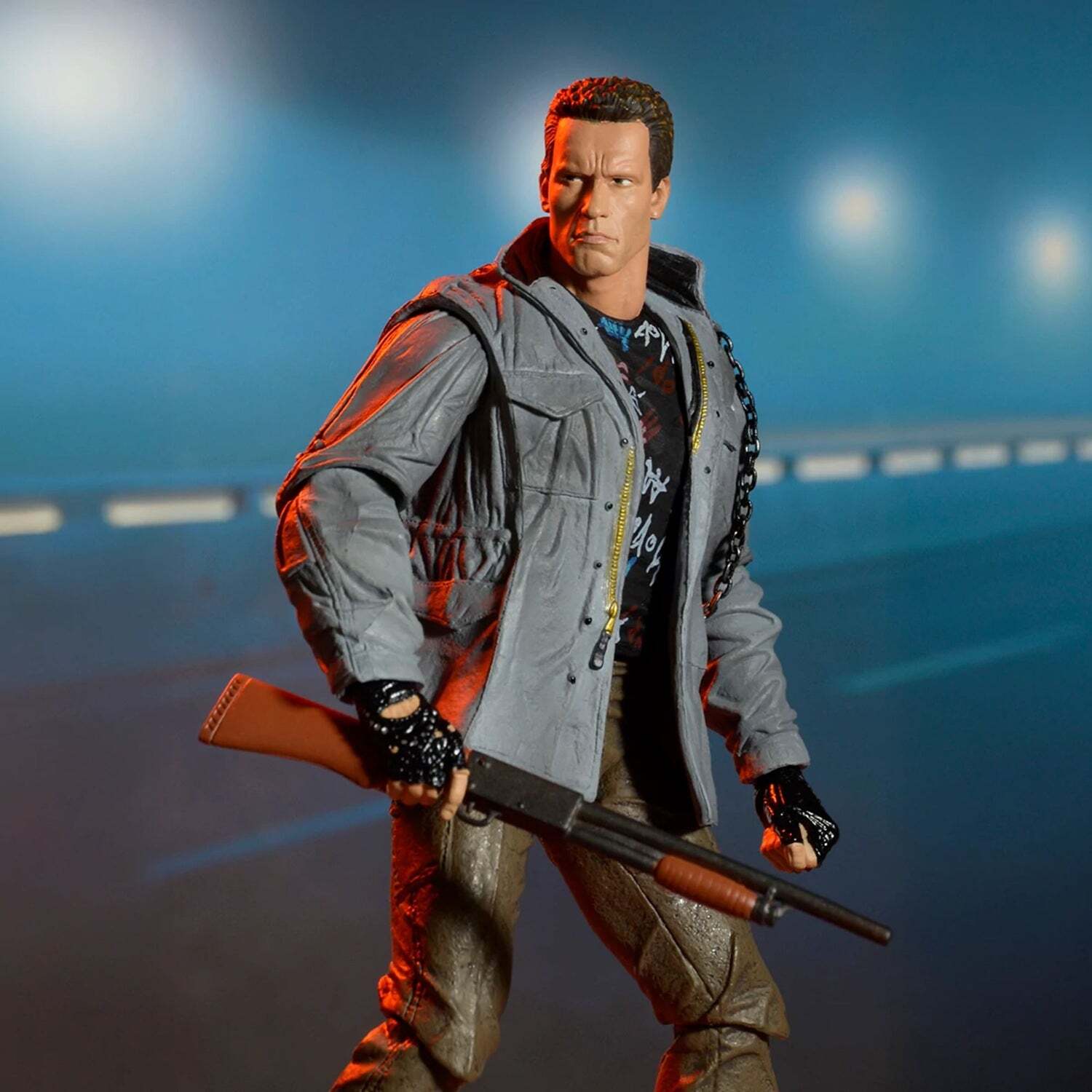 Niente fermerà questa macchina di distruzione proveniente dal futuro, nemmeno l'assenza di vestiti. Nel film Terminator del 1984, il T-800 ruba abiti d'epoca ad alcuni punk molto sfortunati prima di tentare di assassinare Sarah Connor al Tech Noir Club. Altezza: 18 cm