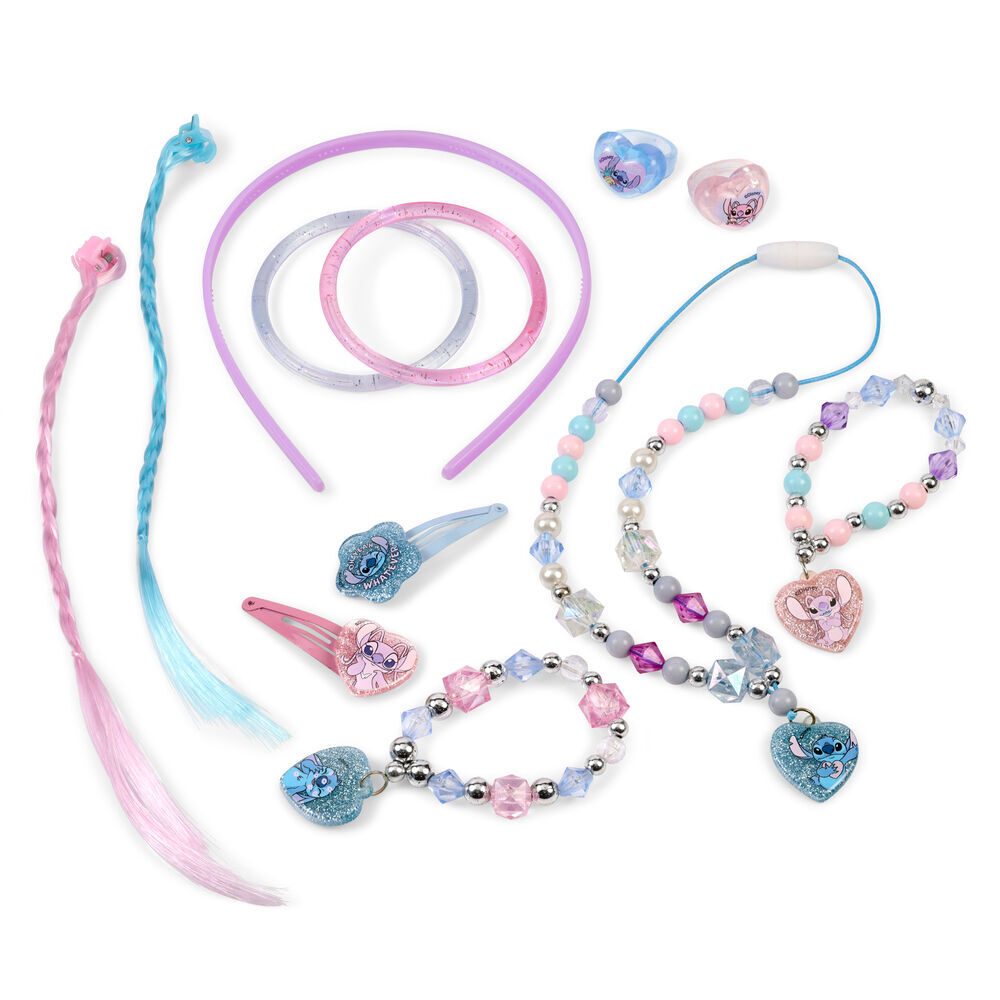 Caratterizzato da un delizioso mix di gioielli e accessori per capelli a tema Stitch, questo set include 2 bracciali, 2 anelli, una collana e una varietà di graziosi fermagli per capelli. Ogni pezzo è realizzato con colori vivaci e divertenti dettagli Stitch .