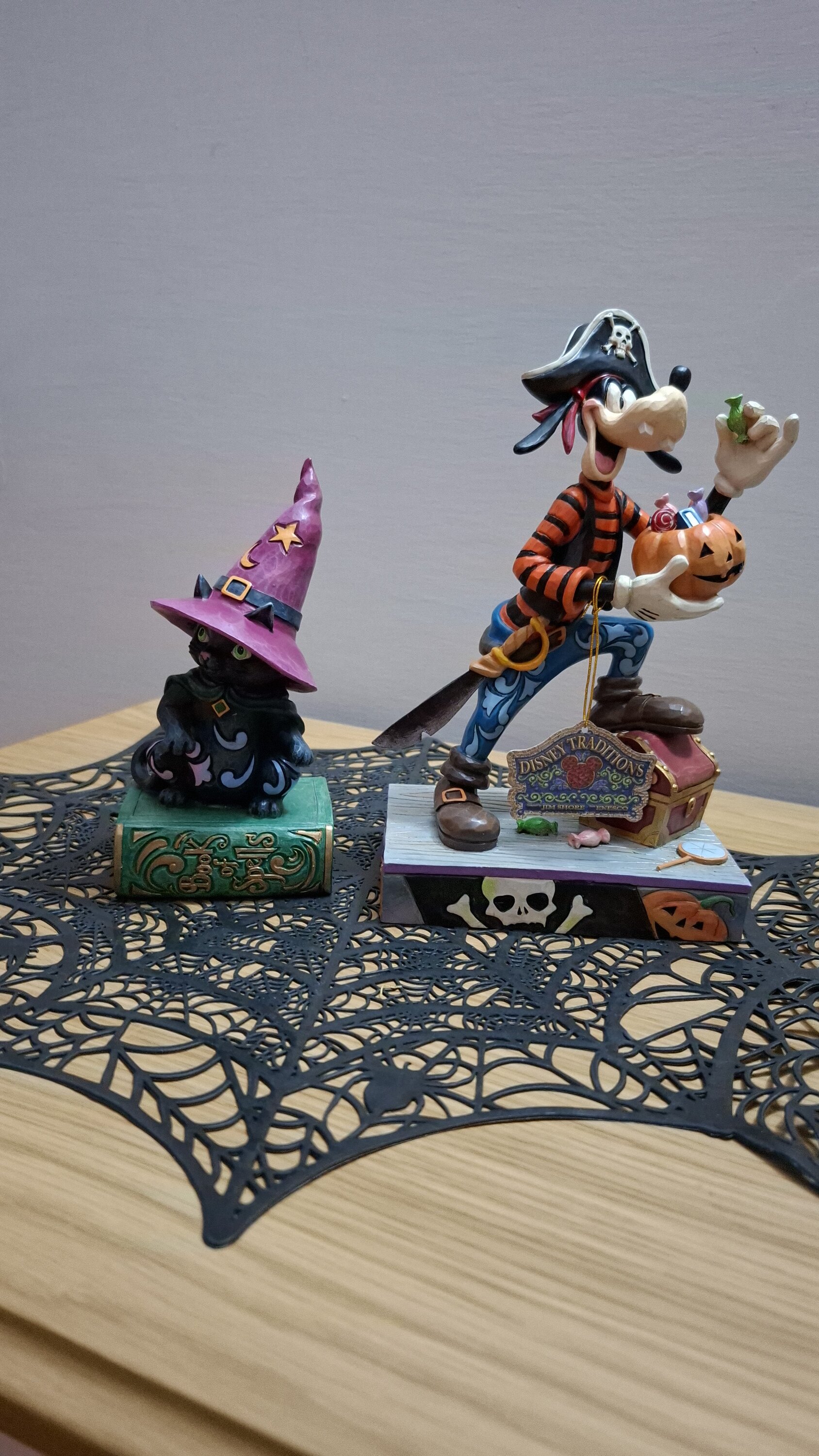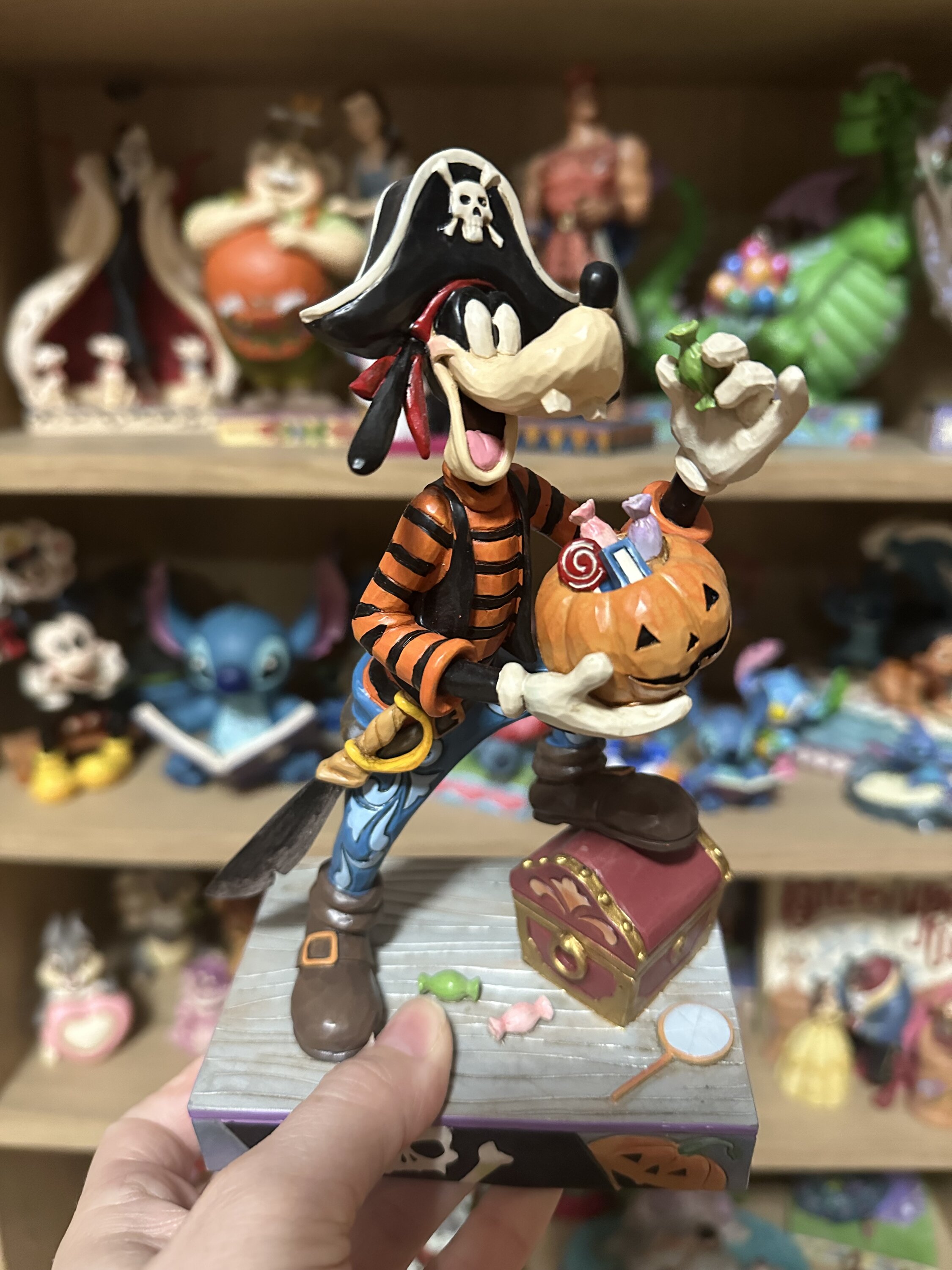 Pippo è tutto vestito e pronto per Halloween nel suo costume da pirata. Progettato da Jim Shore per la collezione Disney Traditions, è scolpito e dipinto a mano.
