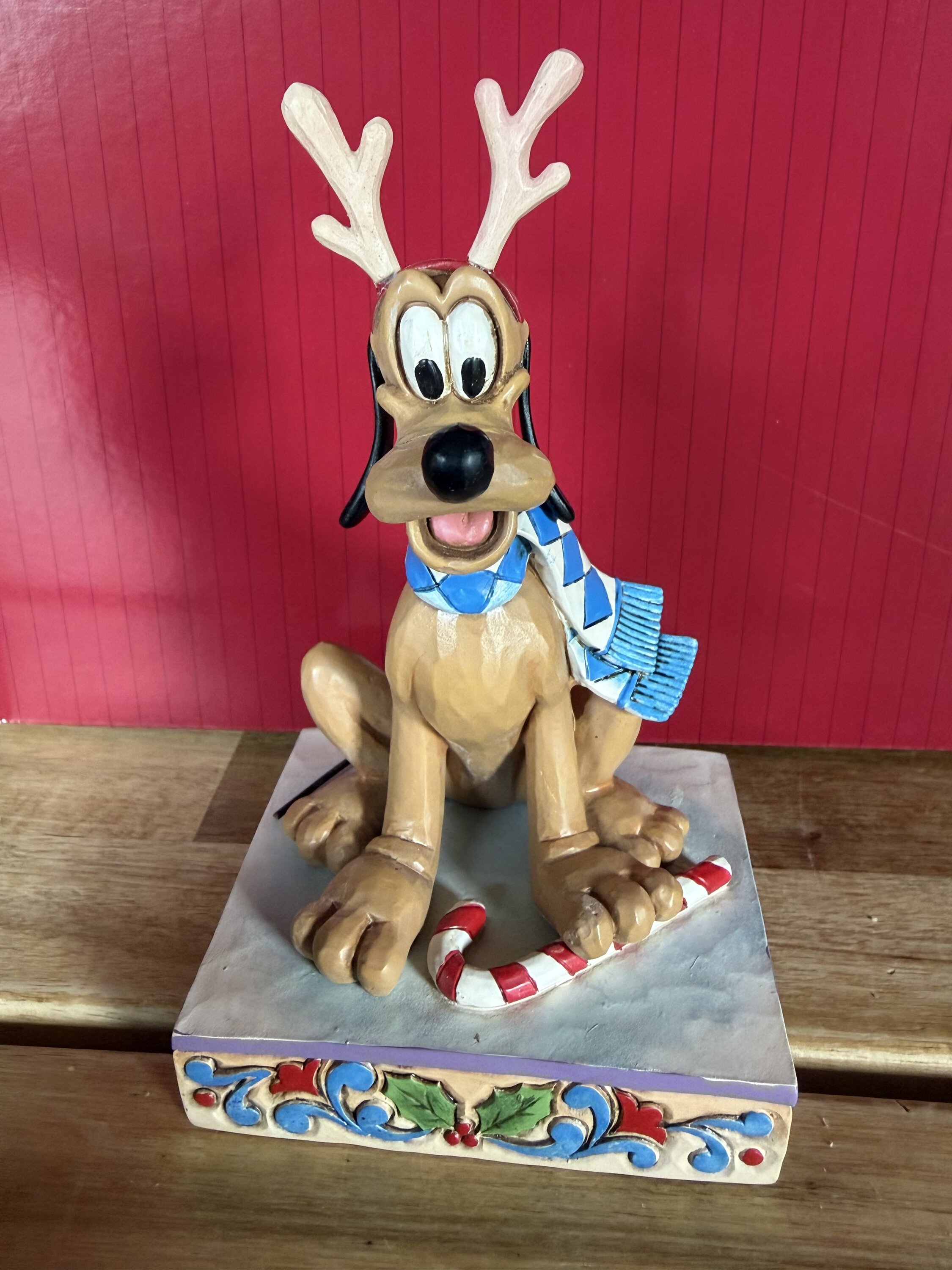 Pluto indossa un top del pigiama patchwork e una sciarpa in questo affascinante busto di Jim Shore. Con le corna di renna, Plutone sorride mentre si prepara per un po' di divertimento natalizio e si gode un dolcetto a base di bastoncino di zucchero. Festeggia la stagione con questo iconico personaggio Disney.