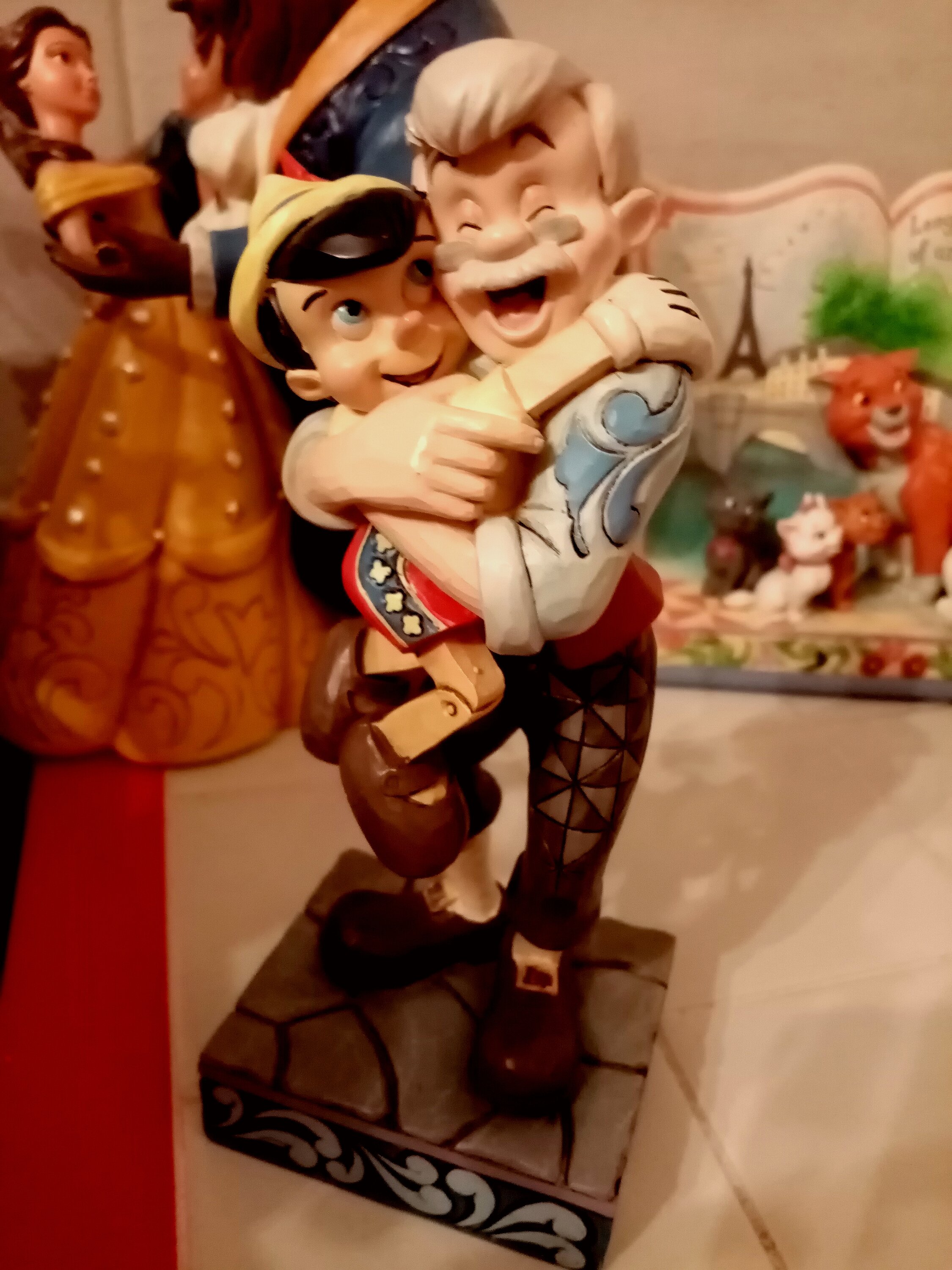 in questa statuina Jim Shore è riuscito a cogliere in un abbraccio tutto l'affetto che un padre può provare per il proprio figlio e Pinocchio ricambia, veramente commovente e allo stesso tempo gioioso grazie Jim Shore