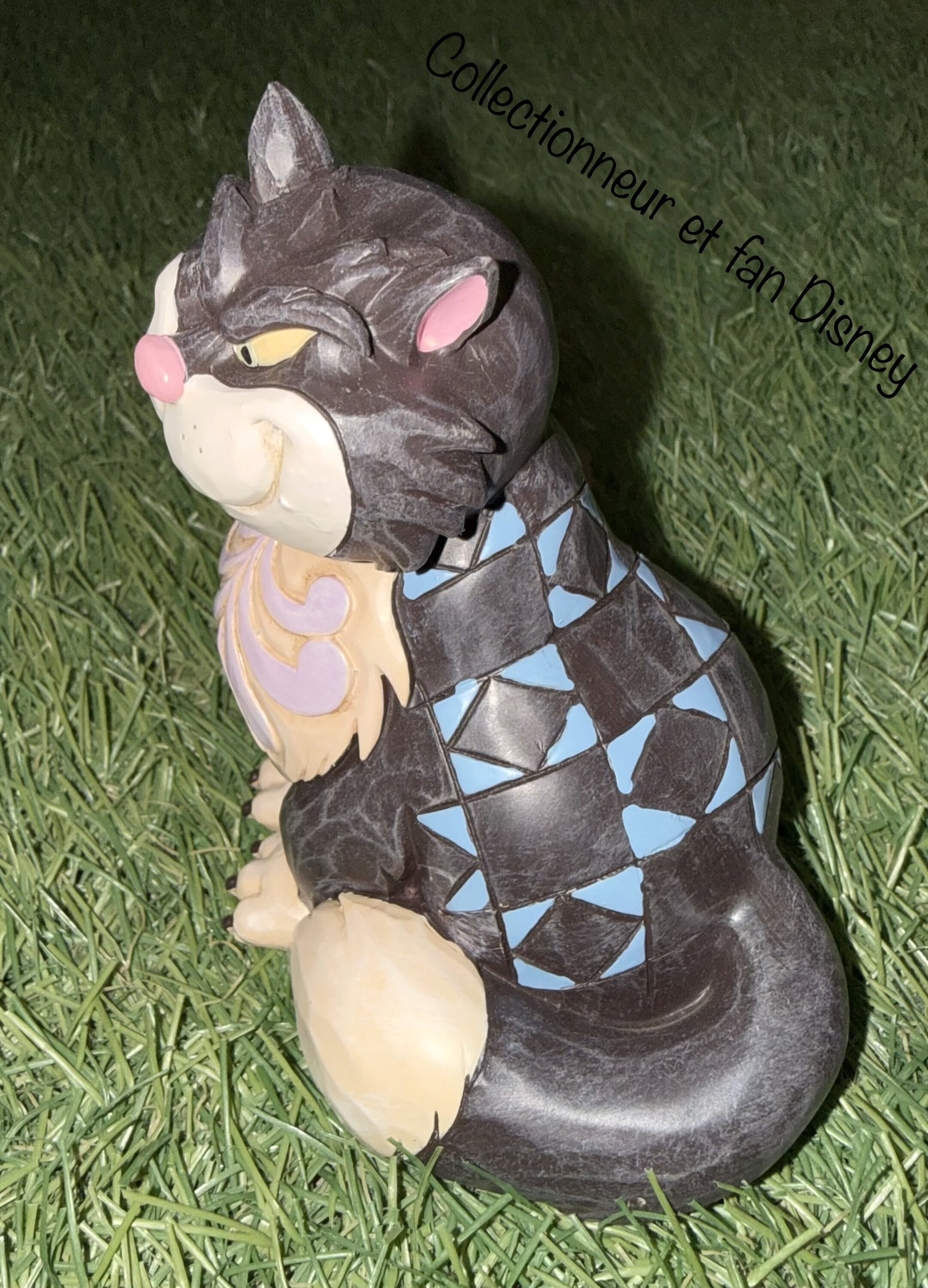 Lucifer il gatto è il malvagio complice di Lady Tremaine. Con una personalità maliziosa, Lucifero è crudele con Cenerentola e i suoi amici topi. Questo modello di Jim Shore presenta il tipico sorriso storto del gatto con motivi rosemale e patchwork sulla pelliccia.