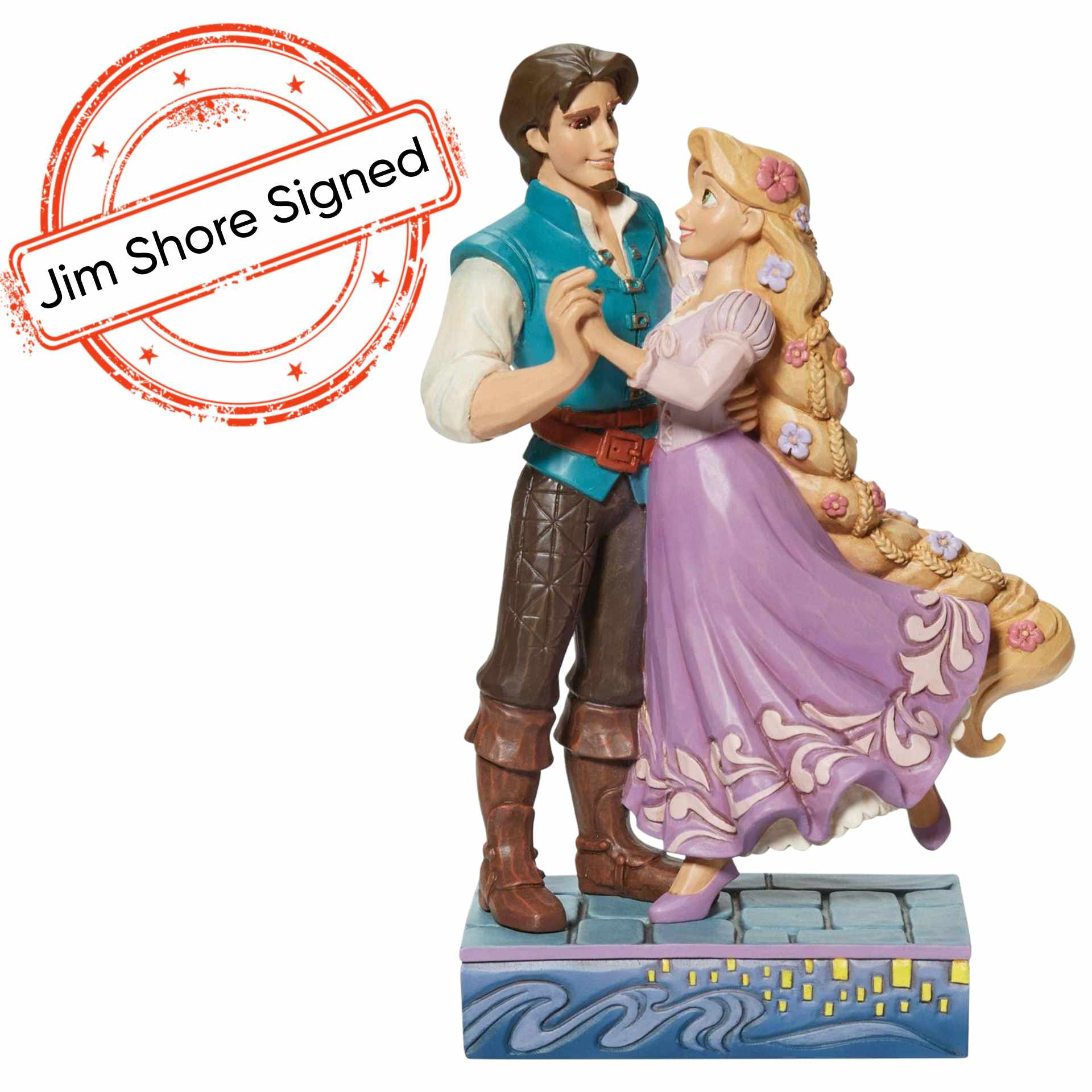 Statuina Rapunzel e Flynn. Insieme in un abbraccio, Non c'è distanza che l'amore non possa percorrere. Progettata dall'artista e scultore pluripremiato Jim Shore per il marchio Disney Traditions .