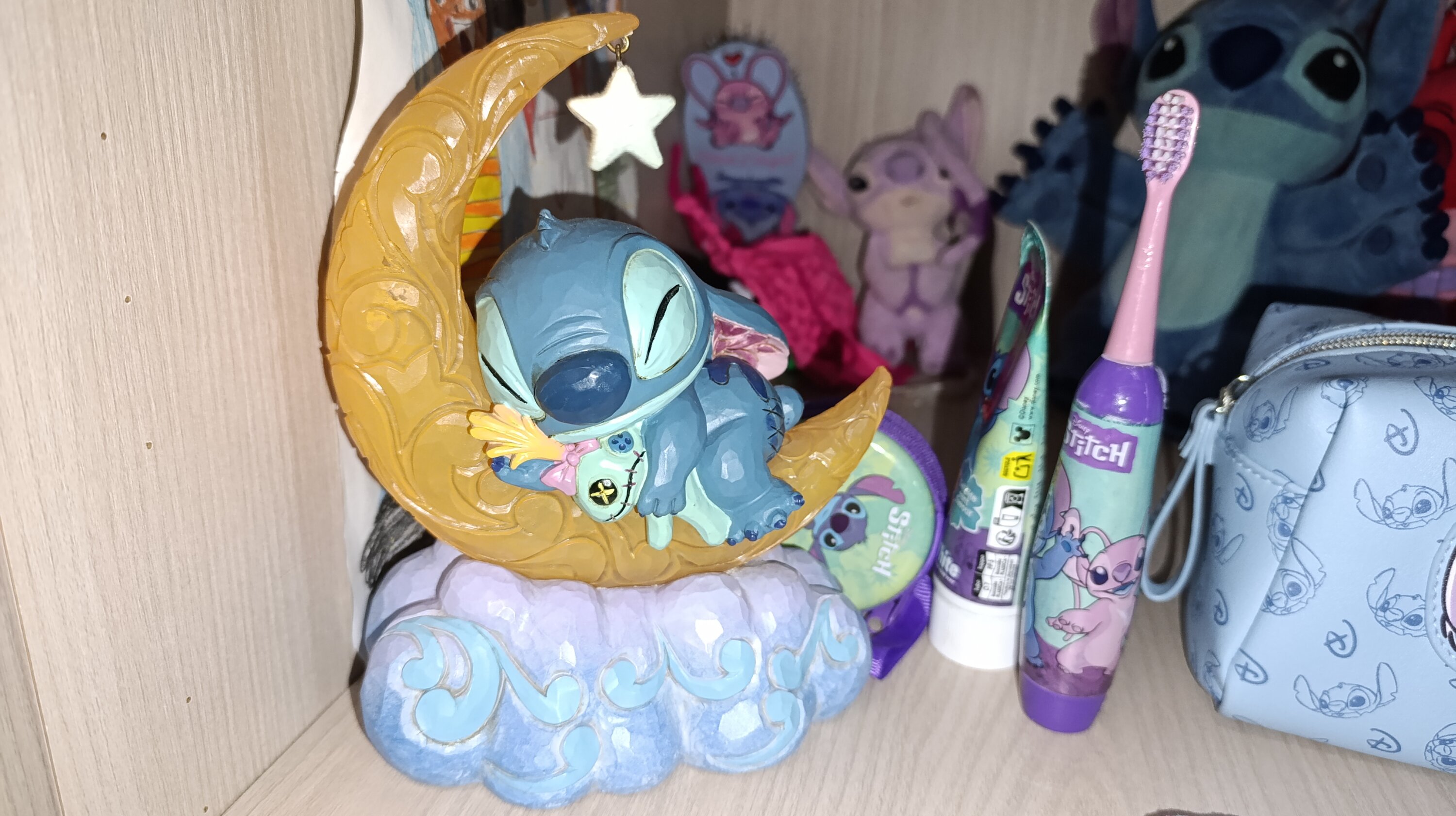 Adorable stitch qu iest sur la demi lune ,elle s'éclaire trop belle je la recommande