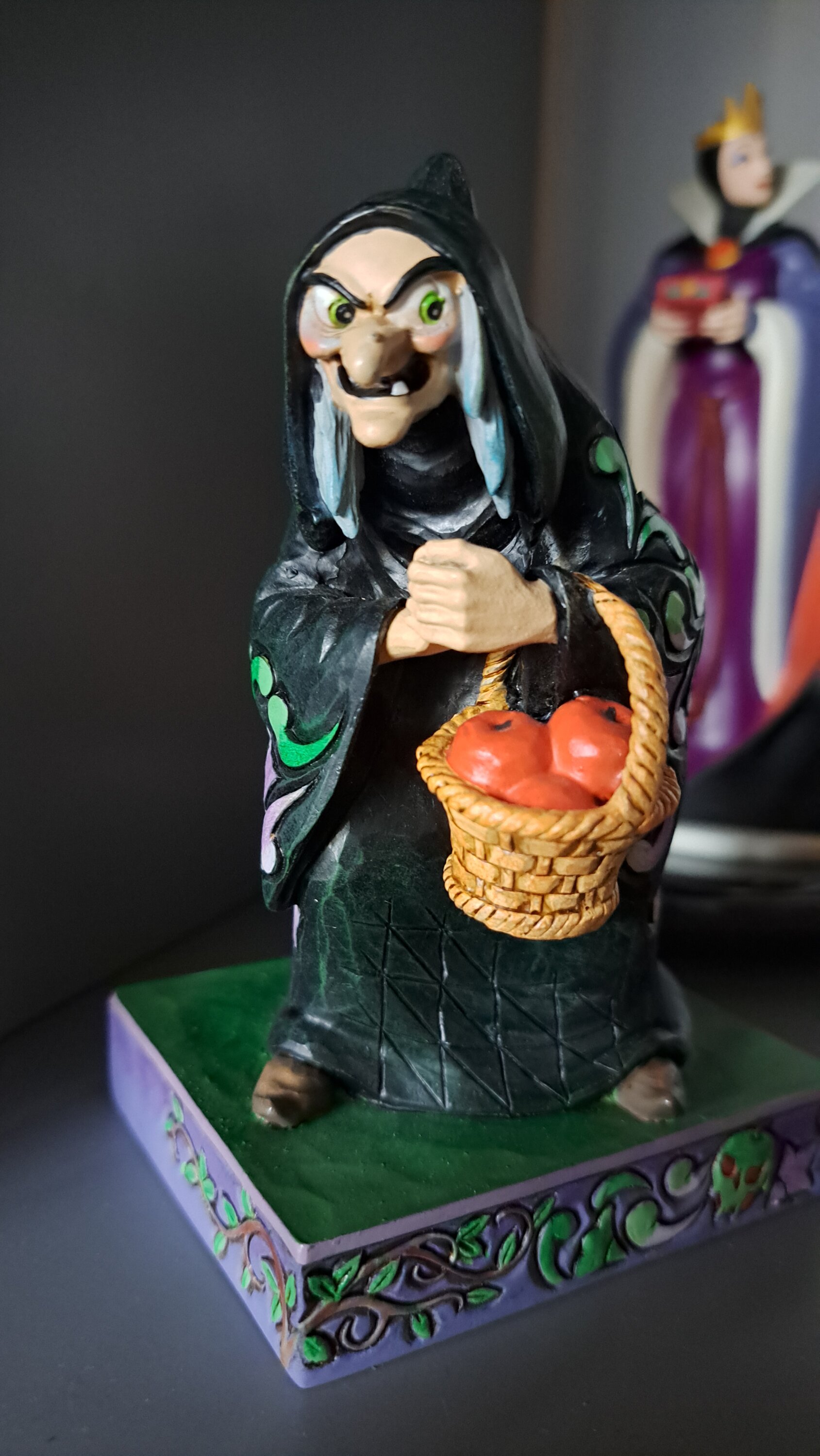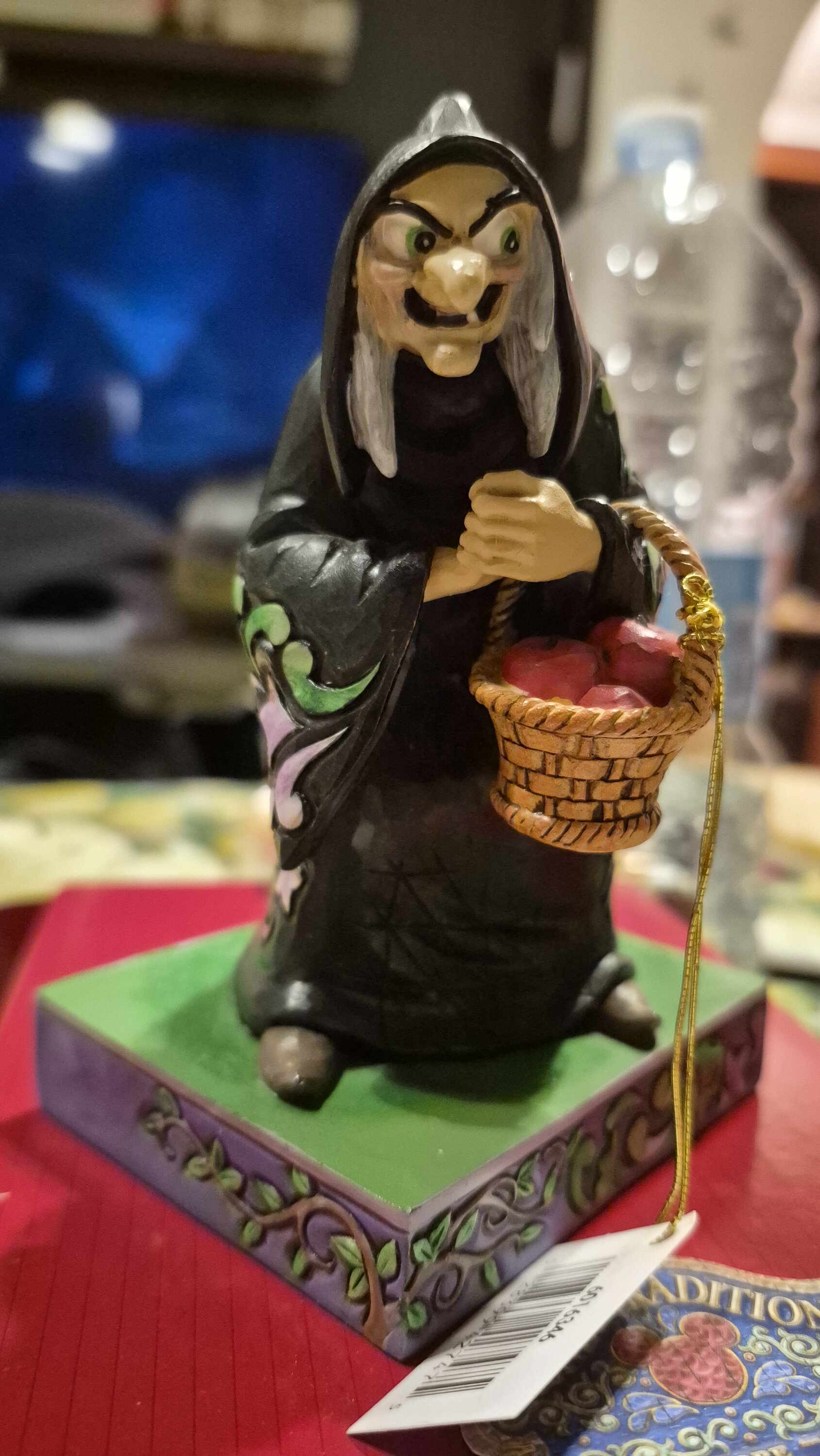 Una delle rare rappresentazioni della regina cattiva di Biancaneve nei panni di una strega. Con il suo cesto di mele, è molto ben realizzata e il suo viso è ben dettagliato.