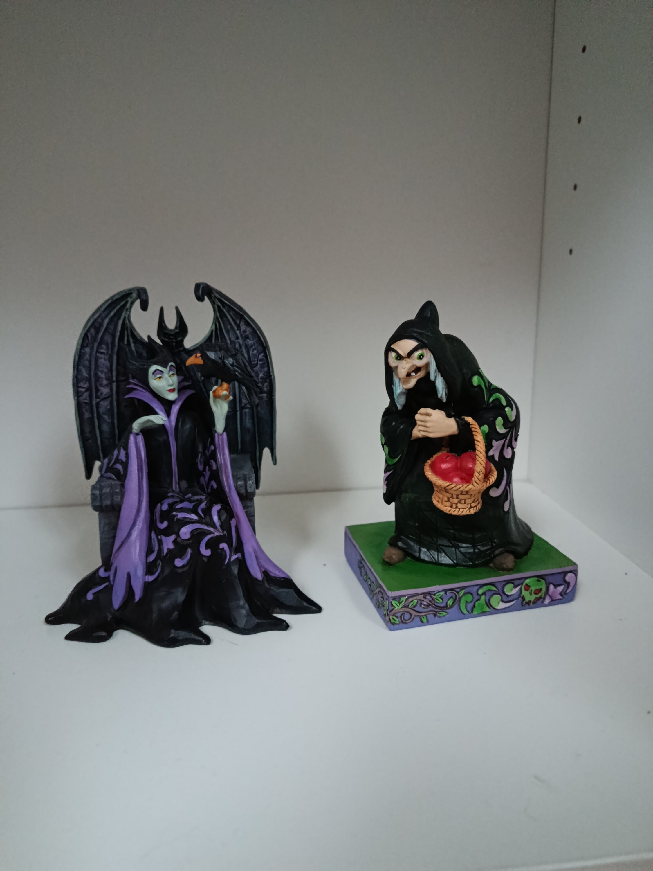 In una veste sinistra, la strega malvagia si nasconde nell'ombra come una donna anziana, il suo mantello nero ornato con vibranti rosmarini Jim Shore , mentre lei porta un cesto colmo di mele avvelenate. Le sue intenzioni trasudano malizia e inganno.