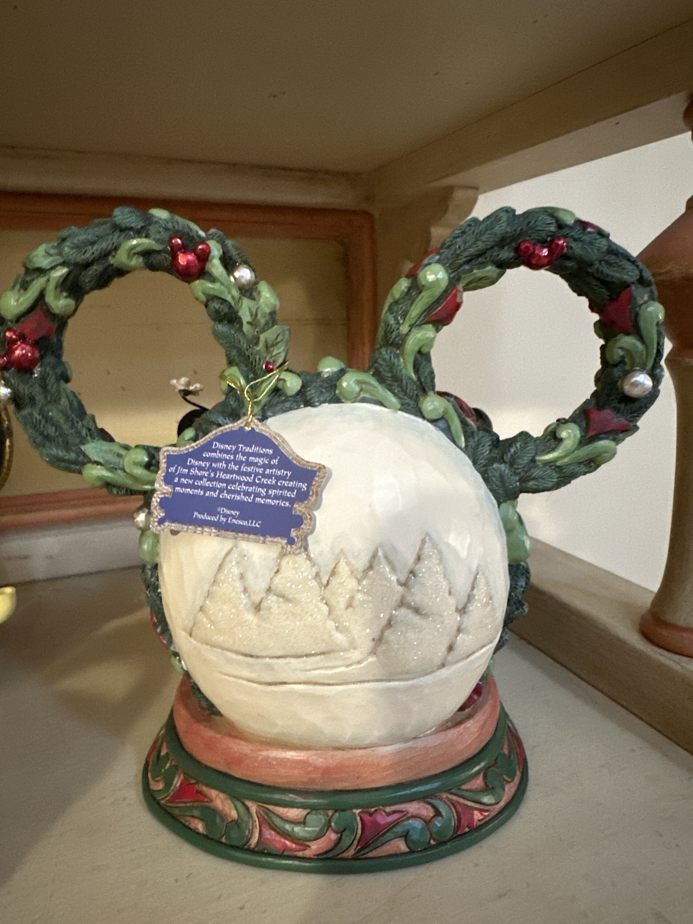 Questa deliziosa scena Natale Jim Shore cattura Topolino e Minnie che si tengono per mano sotto un diorama LED luminoso, incorniciato da una festosa ghirlanda a forma di Topolino adornata con bacche e accenti di perle. Irradia la magia stagionale con il fascino delle feste.