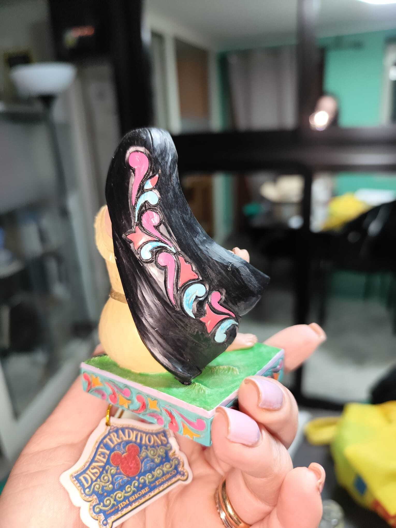 Festeggia il 30° anniversario di Pocahontas con questa splendida rivisitazione di Jim Shore. Il motivo vivace sulla parte posteriore dei capelli della principessa rende omaggio al ricco arazzo culturale del film e alla sua duratura eredità di coraggio e armonia con la natura.