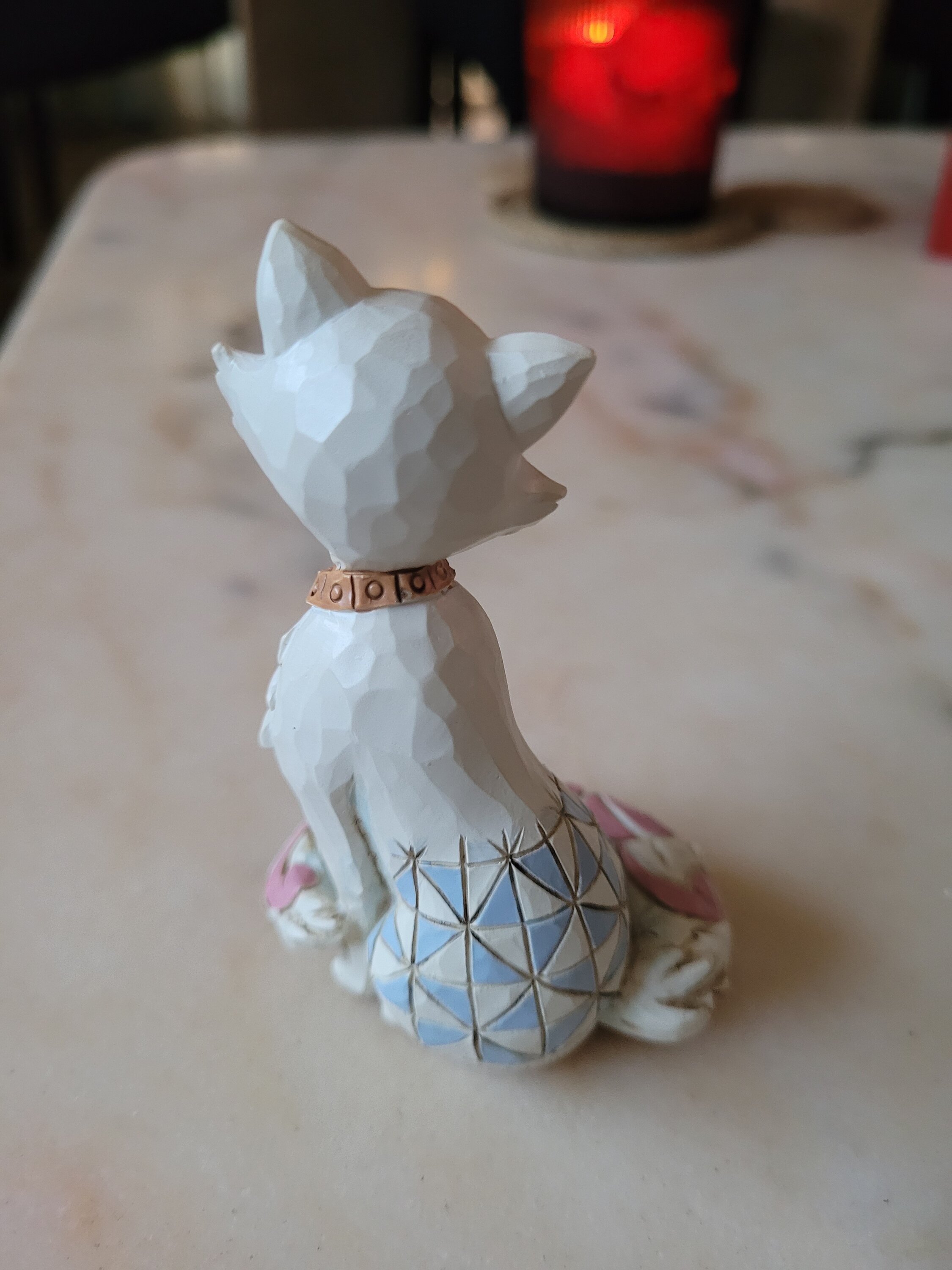 Festeggia il 55° anniversario Gli Aristogatti con questa straordinaria interpretazione di Jim Shore di Duchessa, che sfoggia un sorriso affettuoso e il suo elegante collare dorato. Decorata con intricati dettagli rosemaling e patchwork, incarna dolce grazia e stile.