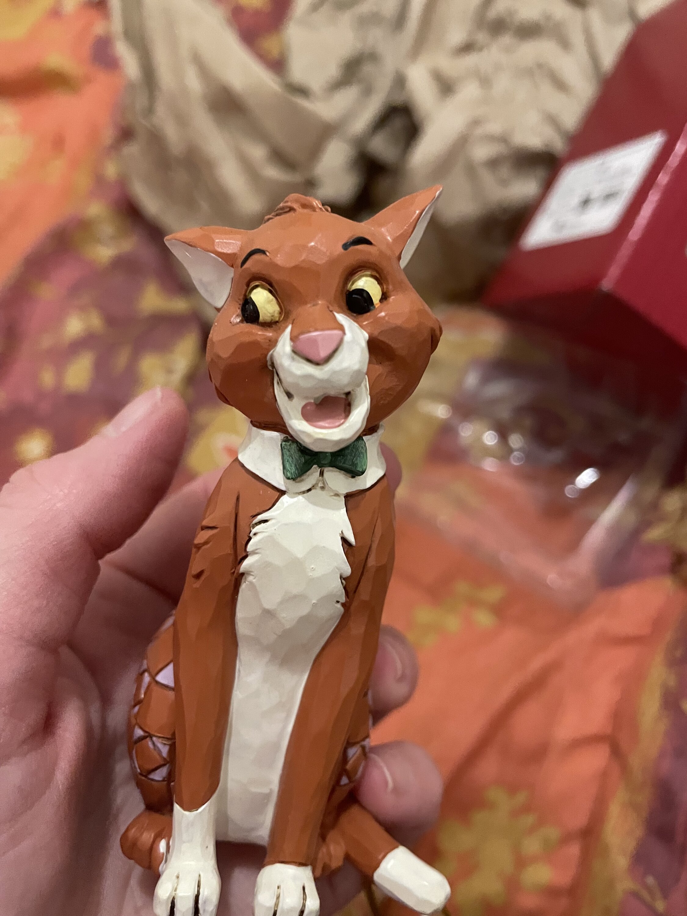 Festeggia il 55° anniversario Gli Aristogatti con questa affascinante interpretazione di Thomas O'Malley, il gatto randagio, che ha trovato la sua nuova casa con Duchessa e i gattini. Con un elegante collare a fiocco e dettagli patchwork, posa con amore negli occhi.
