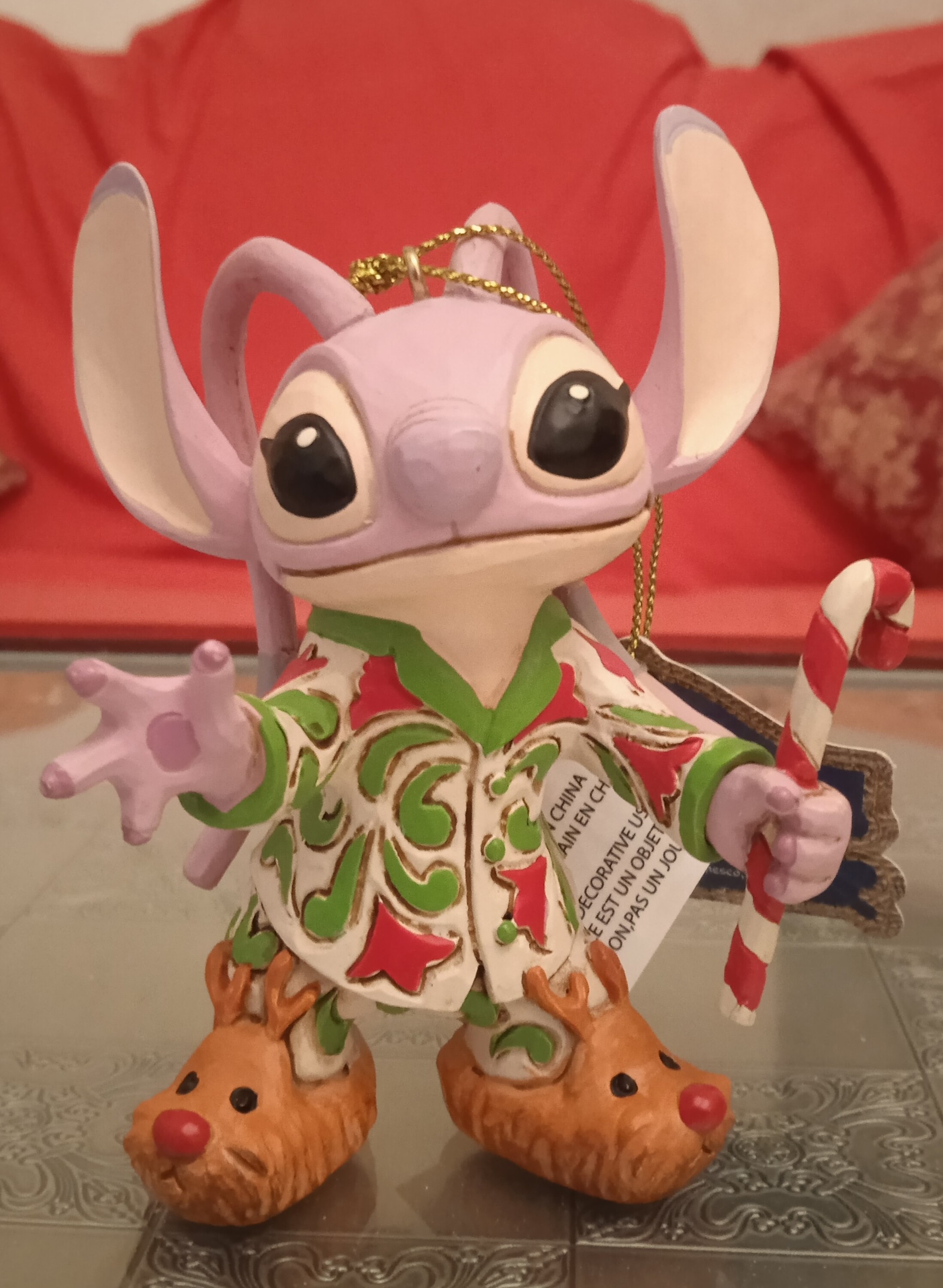 Angelo è pronto a scoprire cosa ha portato il Natale questa mattina. Questa decorazione da appendere è perfetta per decorare il tuo albero in questo periodo di festa e raffigura il piccolo amico alieno di Stitch, Angelo. Queste statuette non sono giocattoli per bambini. Destinate solo agli adulti.