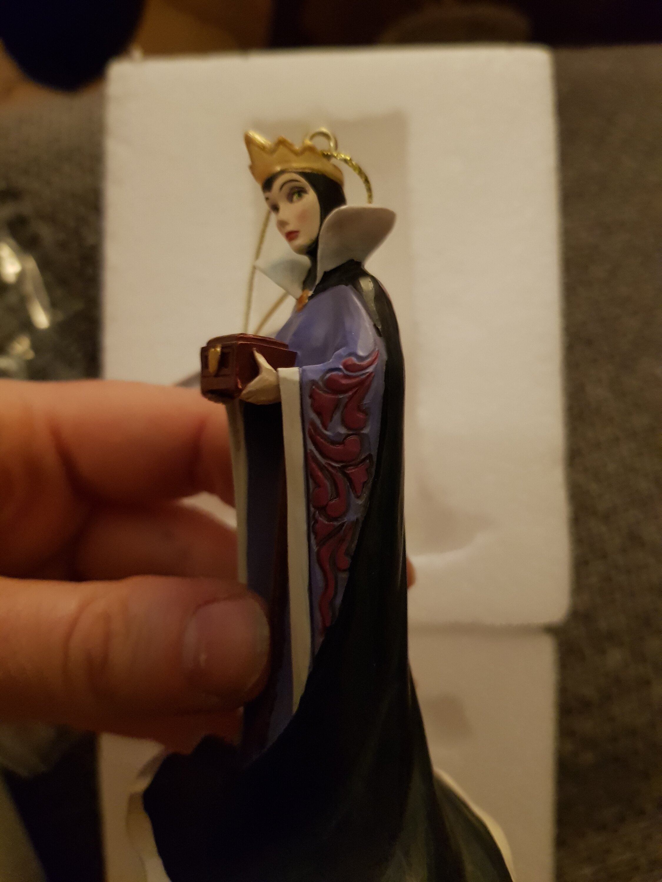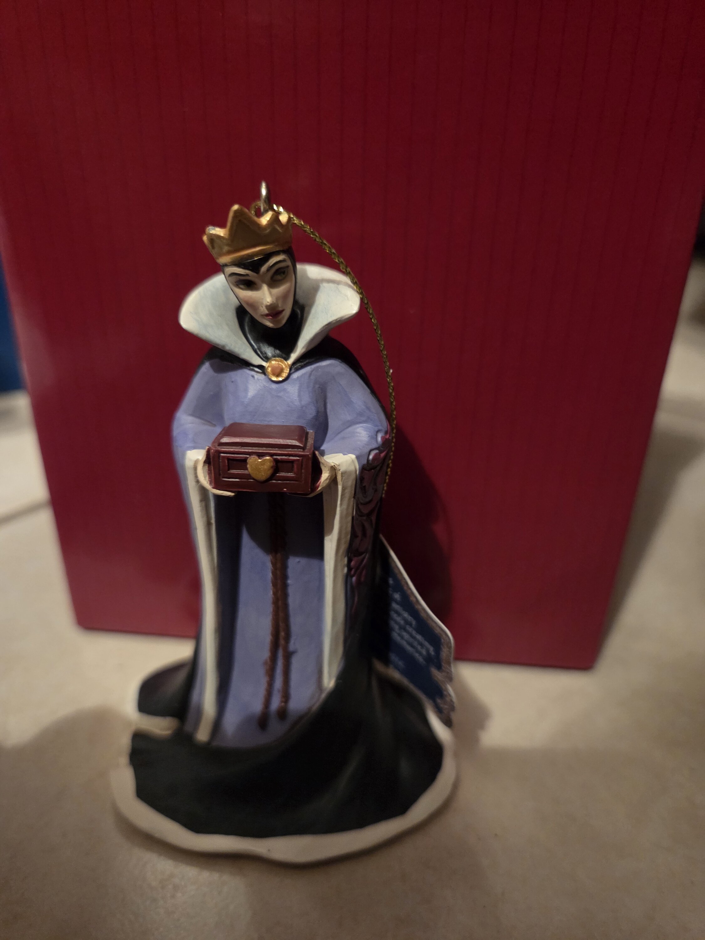 La mechante reine de Blanche Neige avec son coffret entre les mains, très bien réalisé