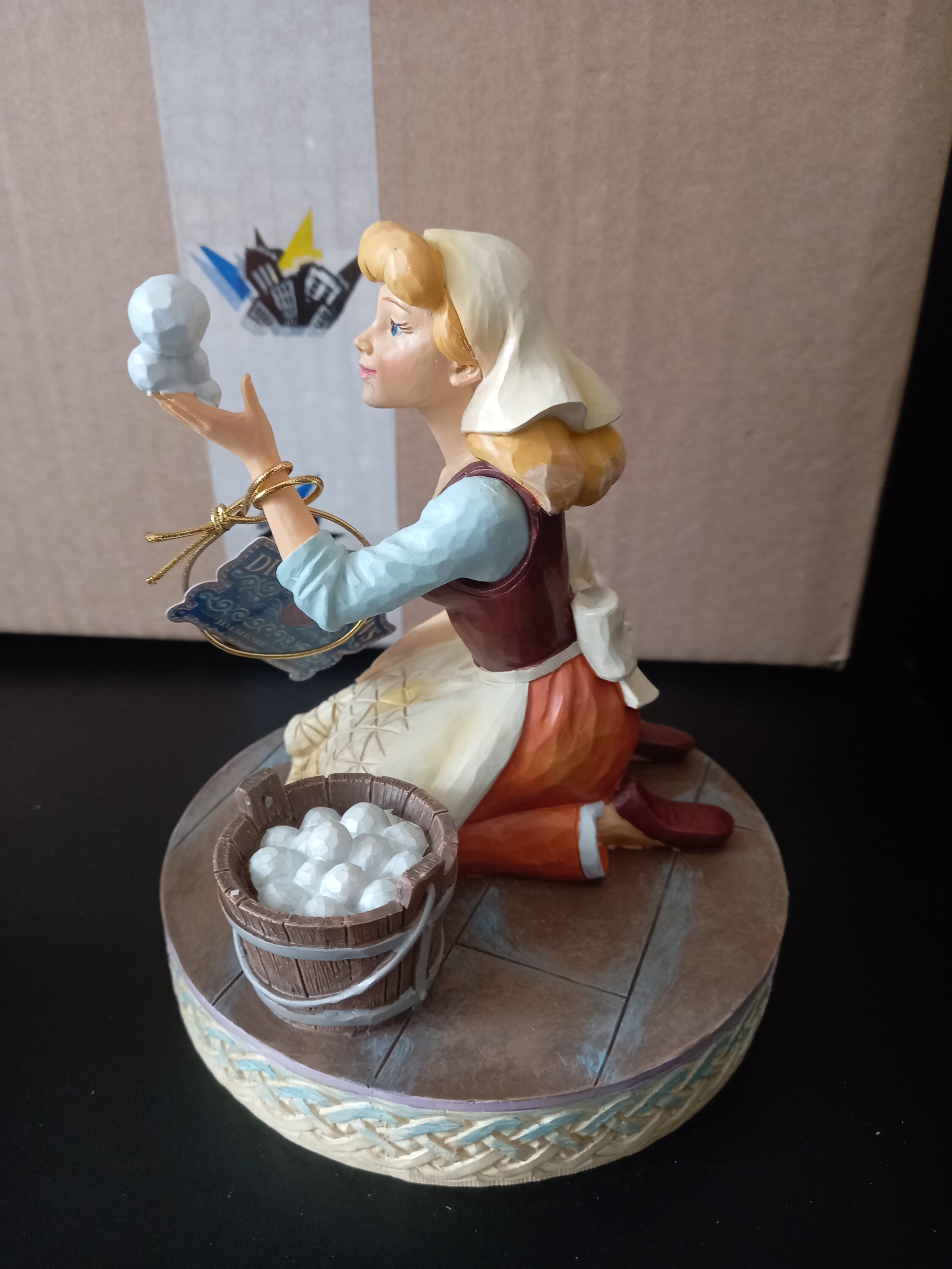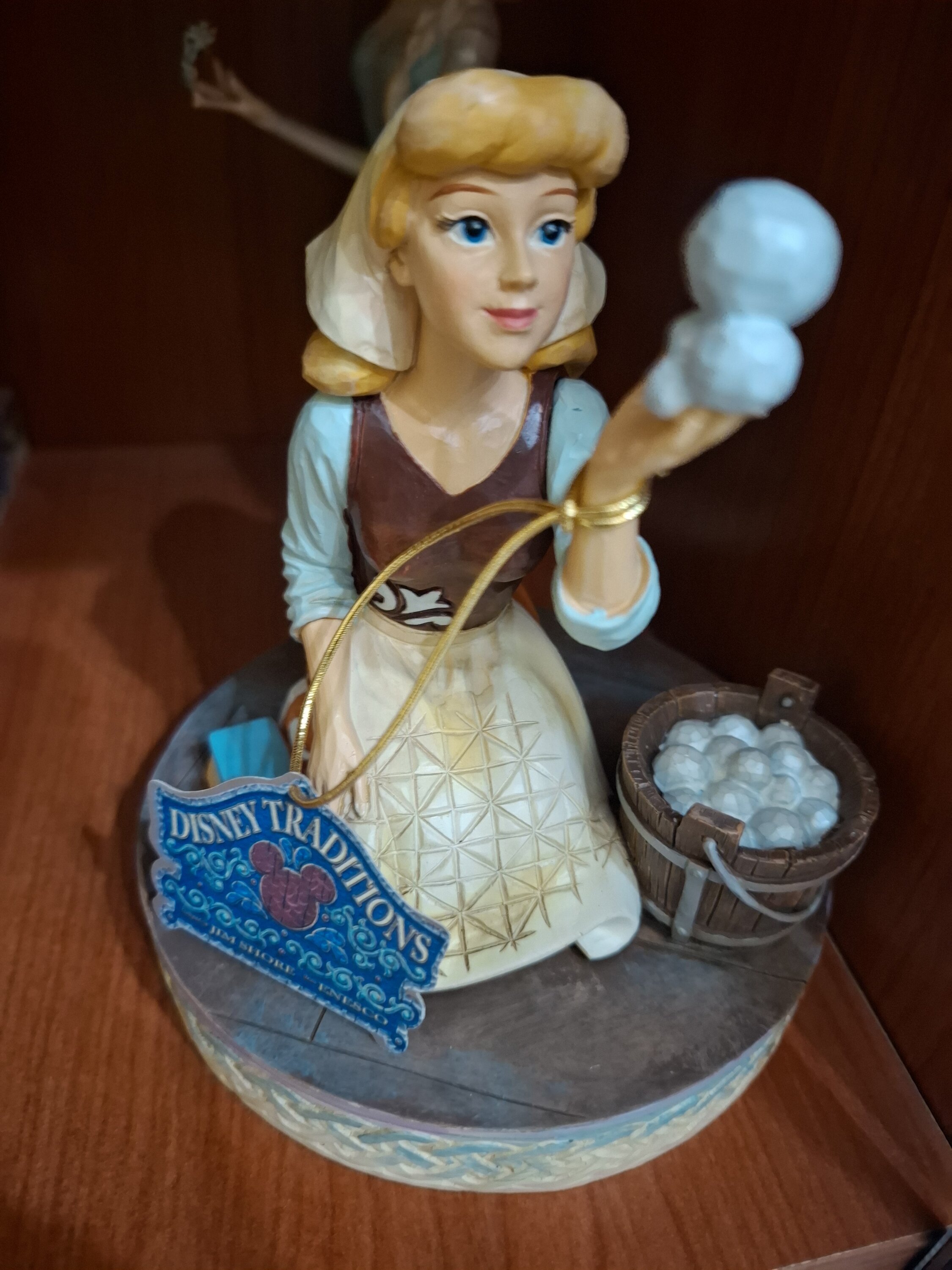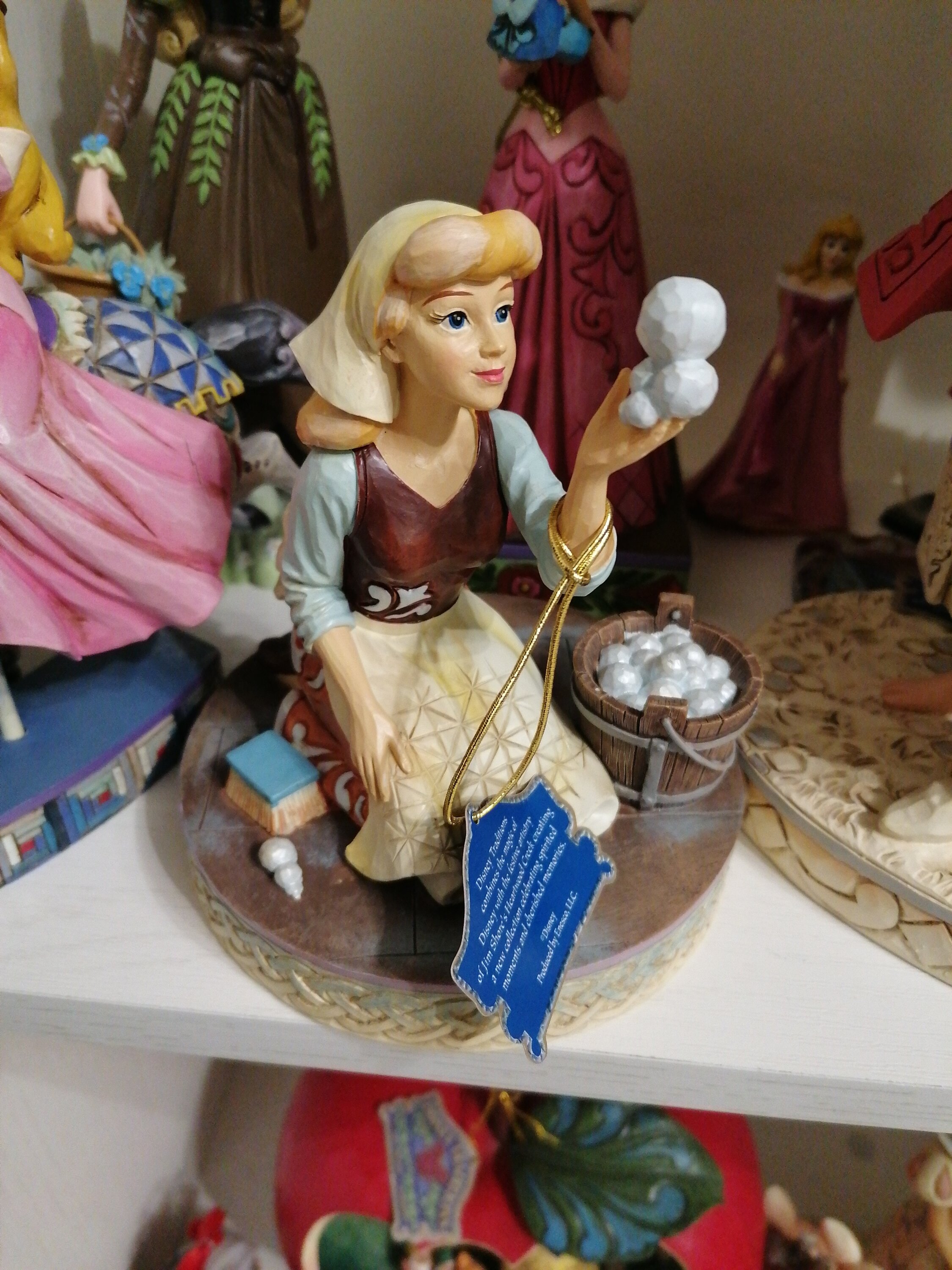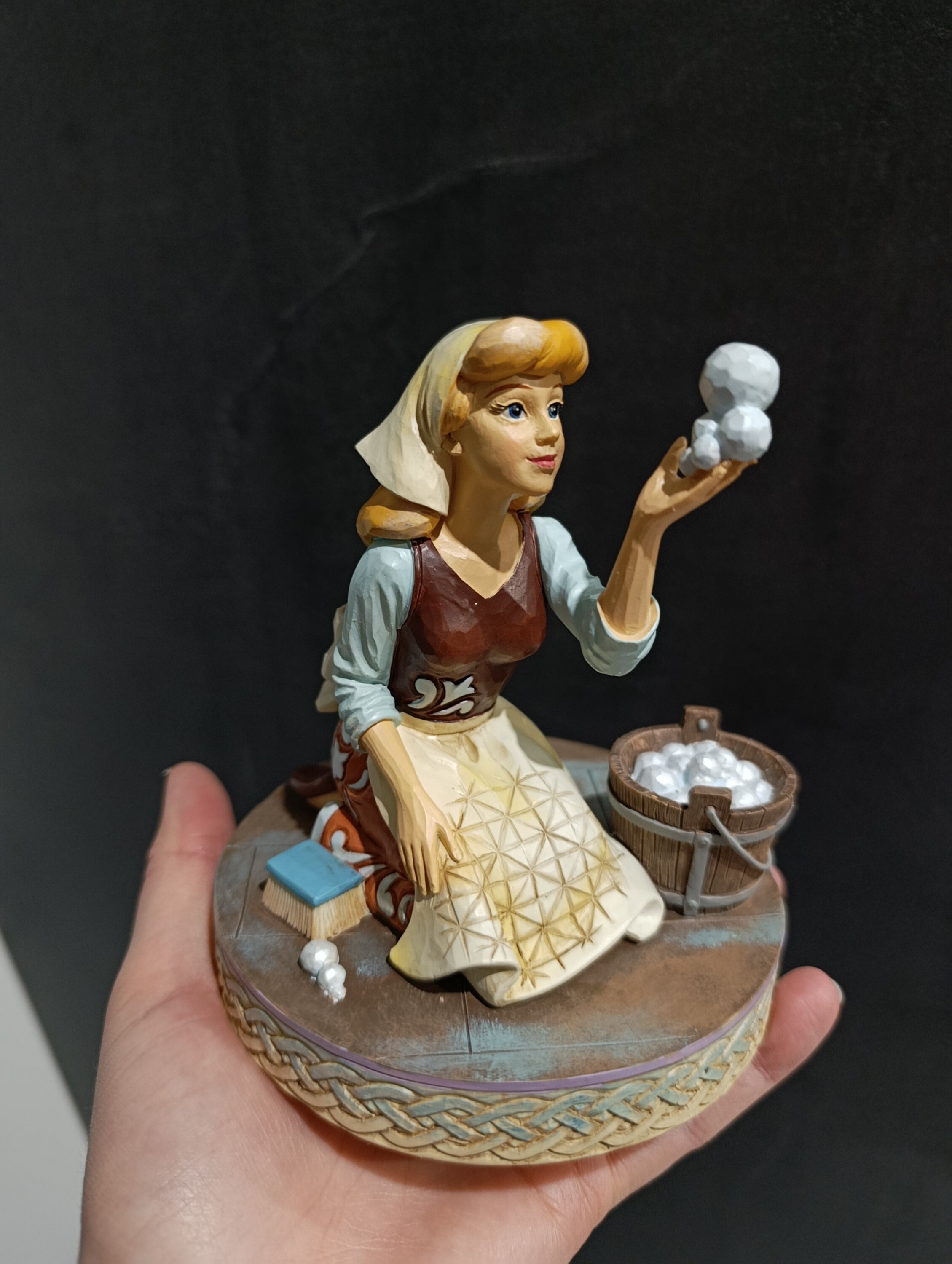 Superbe figurine pleine de détails qui rappelent l'une des scènes du dessin animé. Elle est vraiment minutieusement travaillée et reflète vraiment Cendrillon qui même en souillon reste magnifique! Une pièce indispensable que je recommande vivement.
