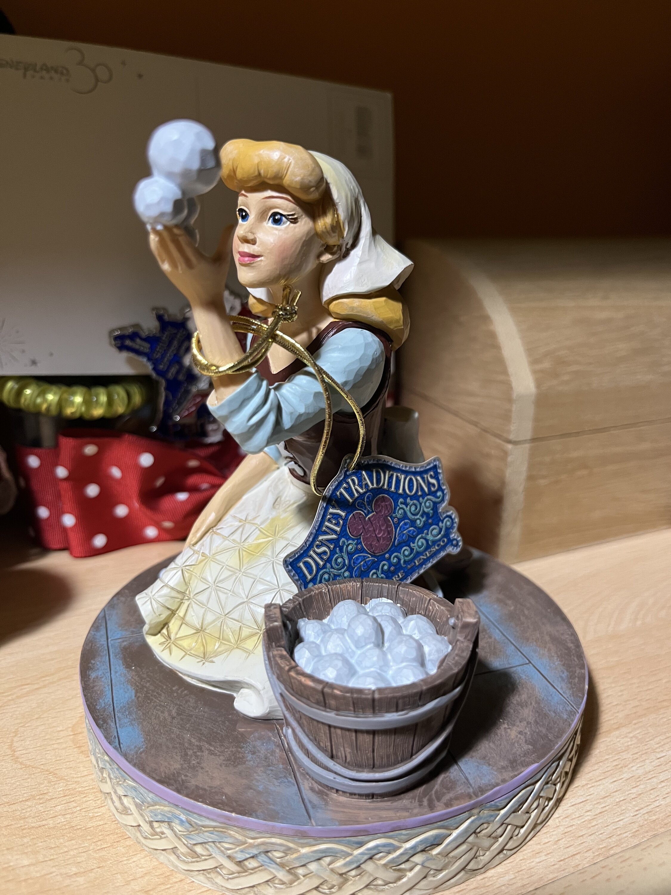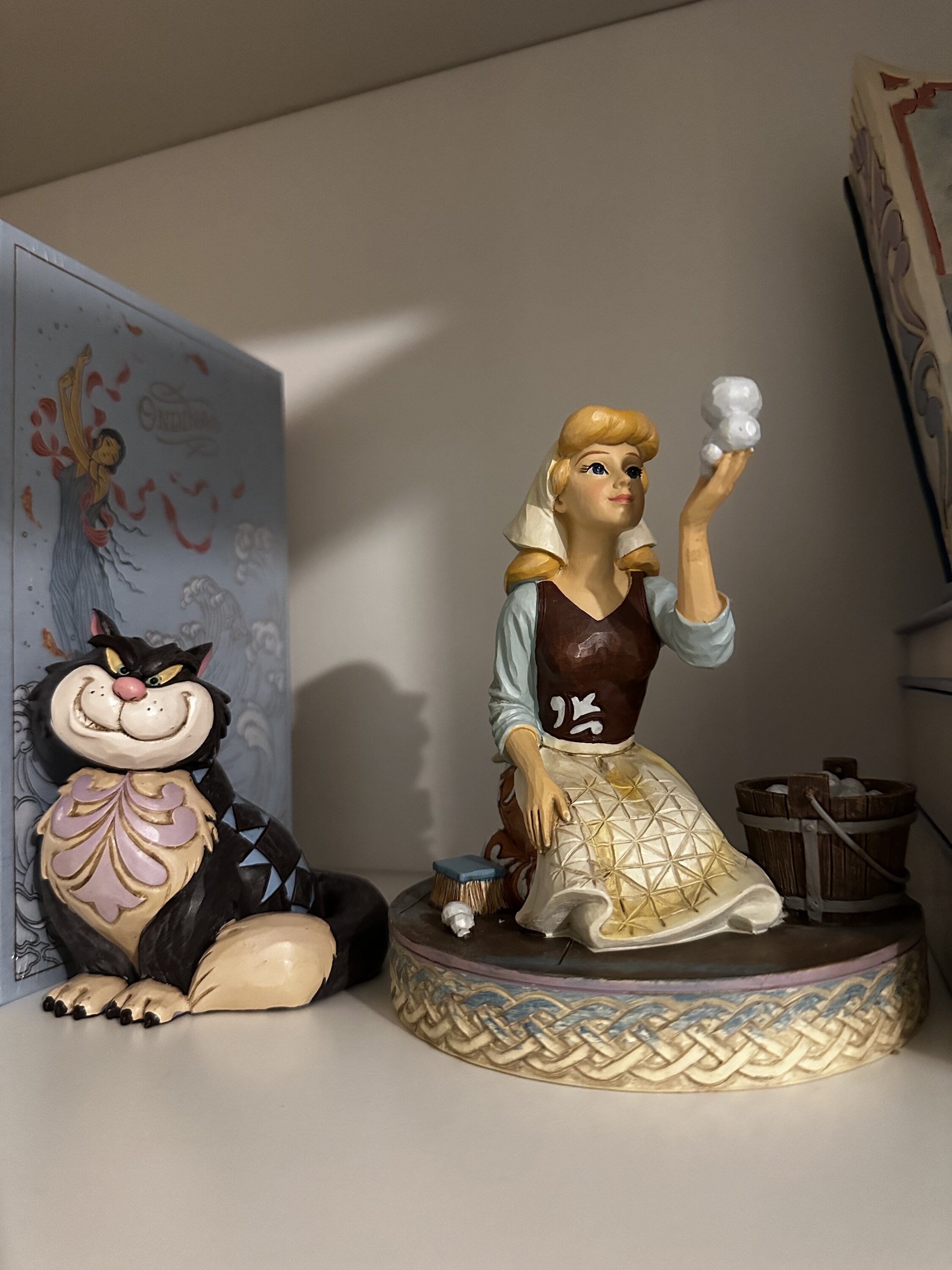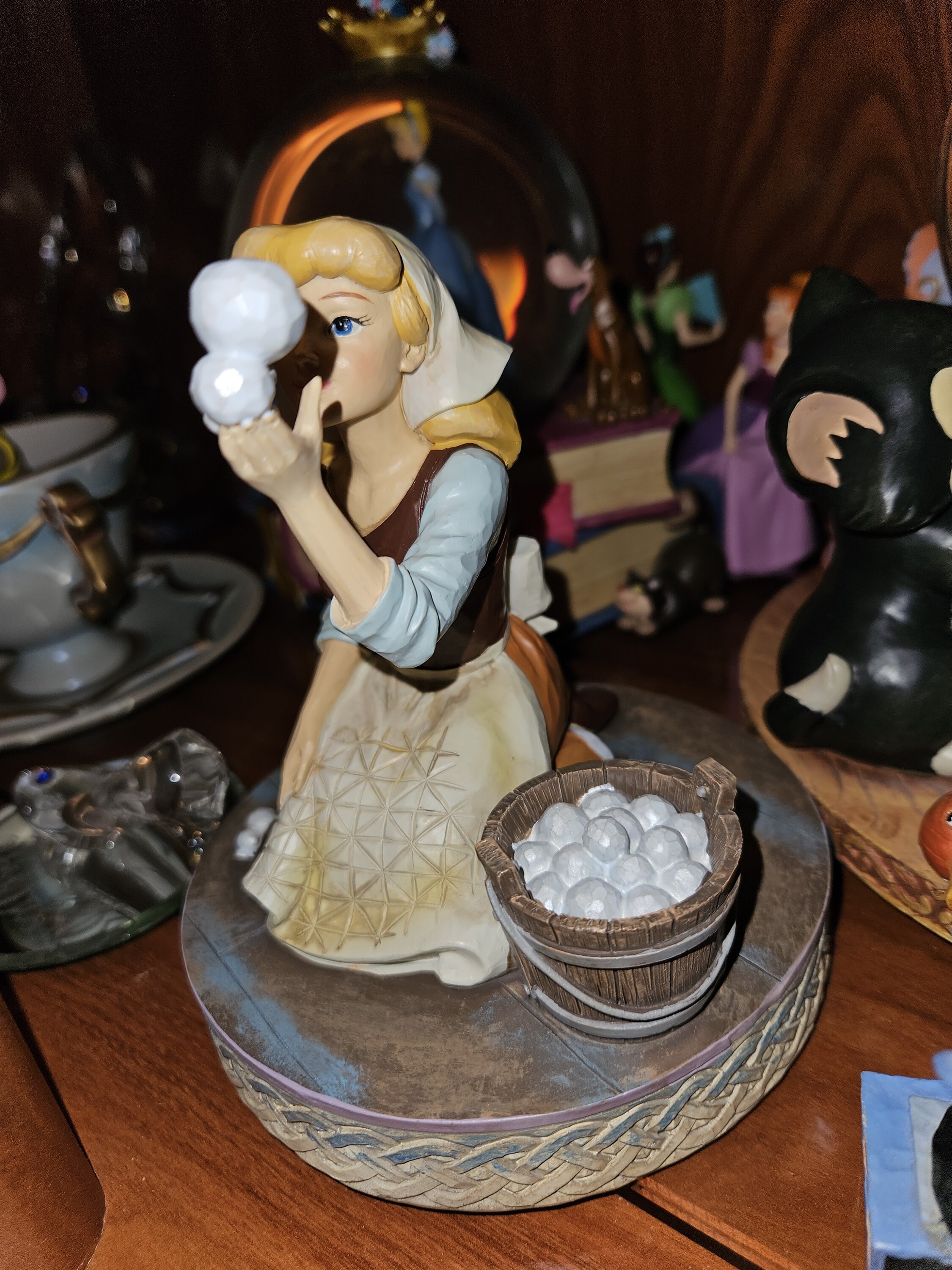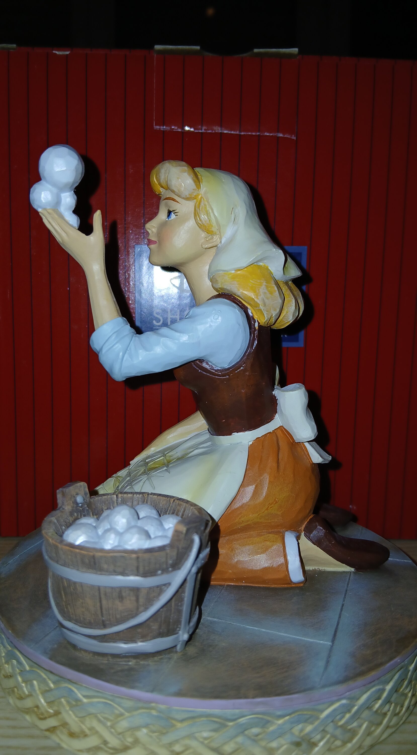 Superbe figurine pleine de détails qui rappelent l'une des scènes du dessin animé. Elle est vraiment minutieusement travaillée et reflète vraiment Cendrillon qui même en souillon reste magnifique! Une pièce indispensable que je recommande vivement.
