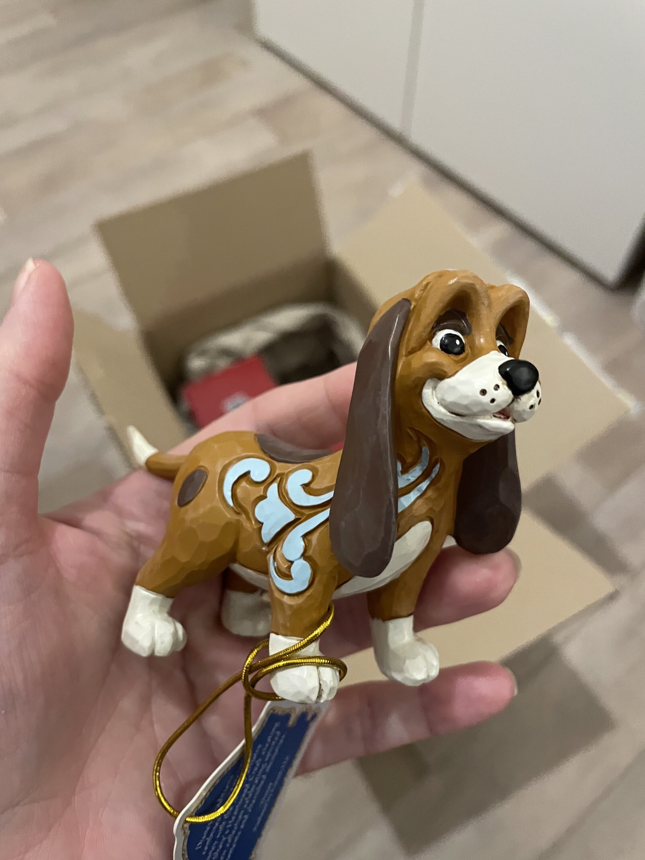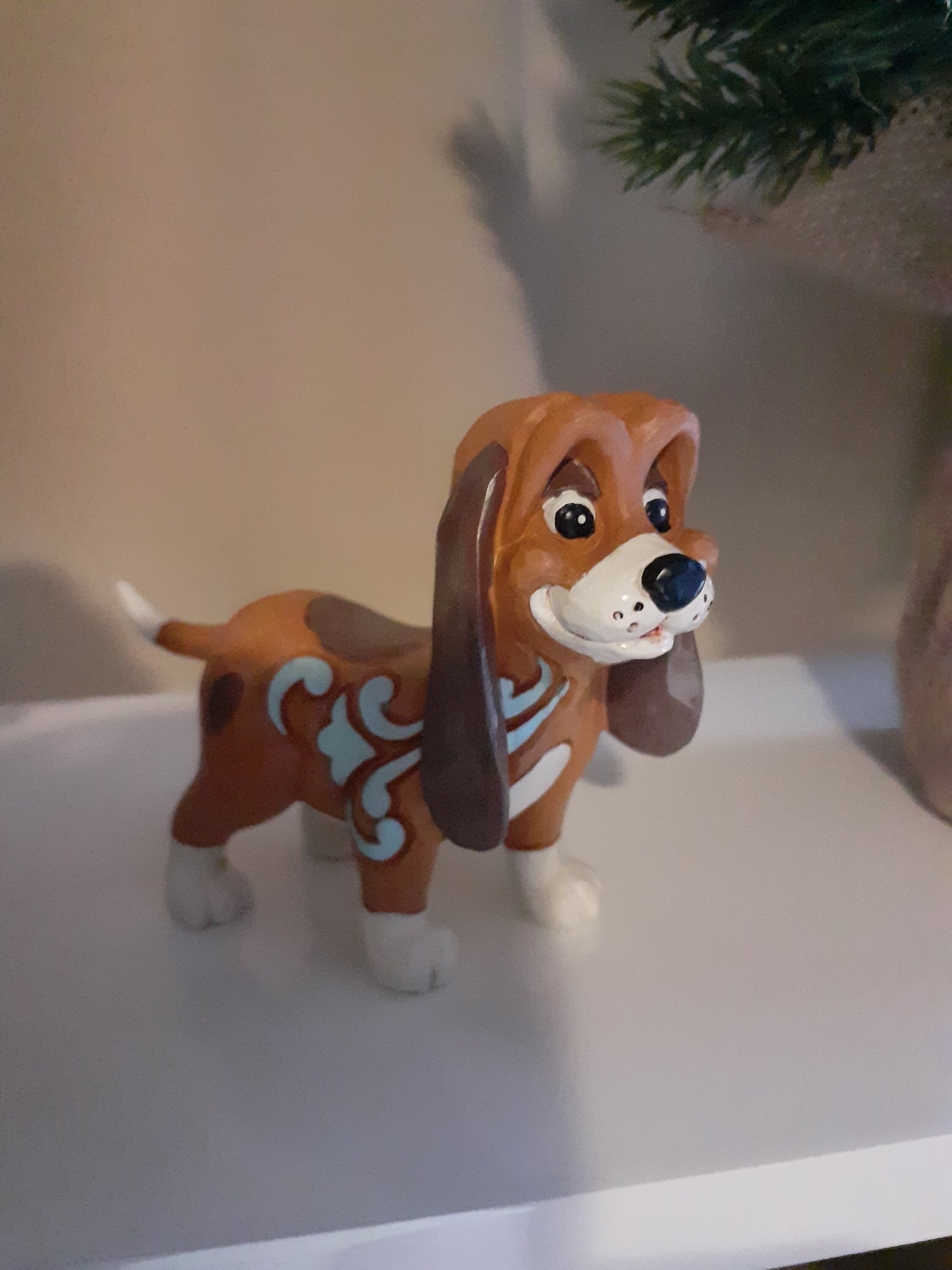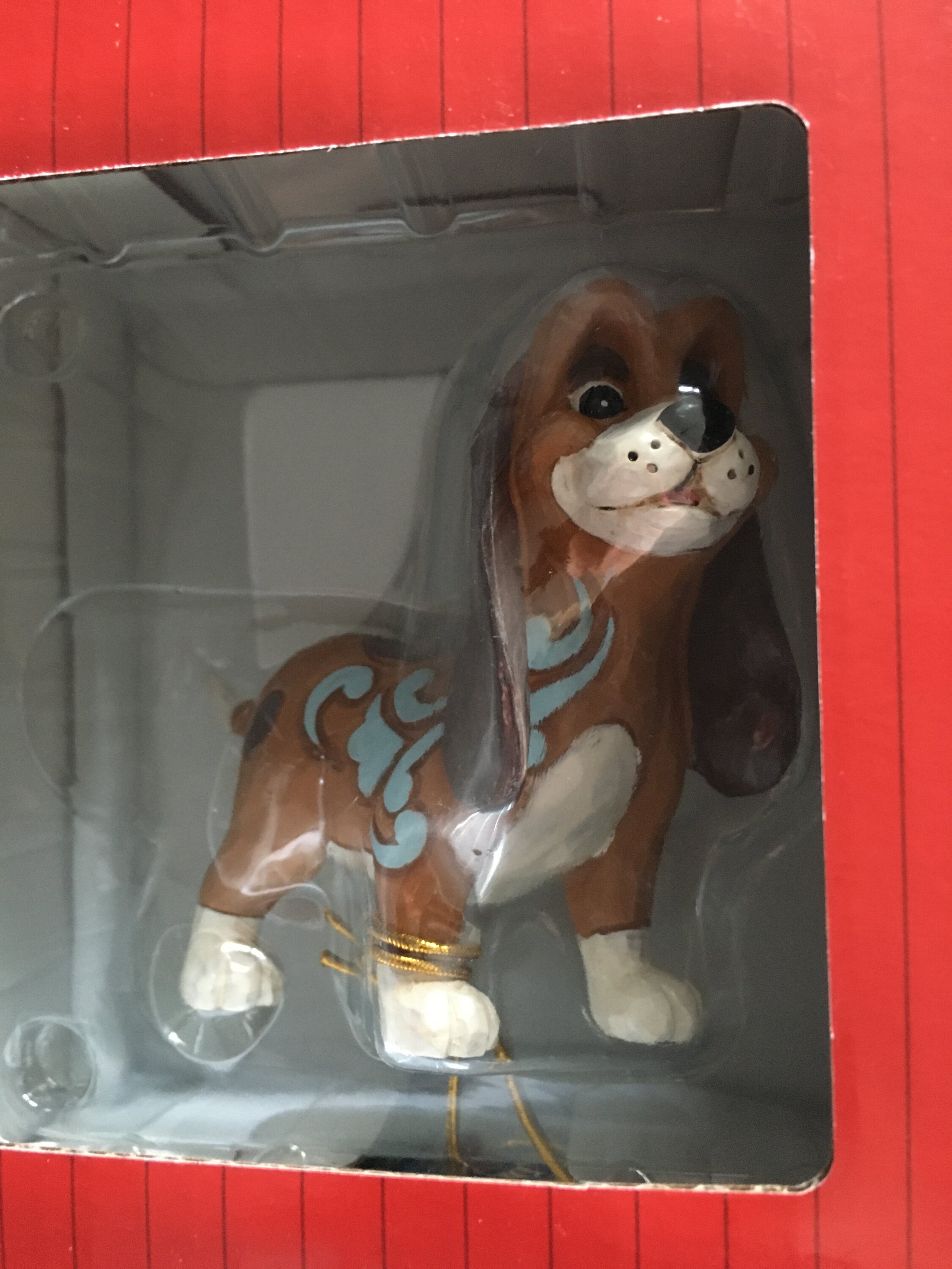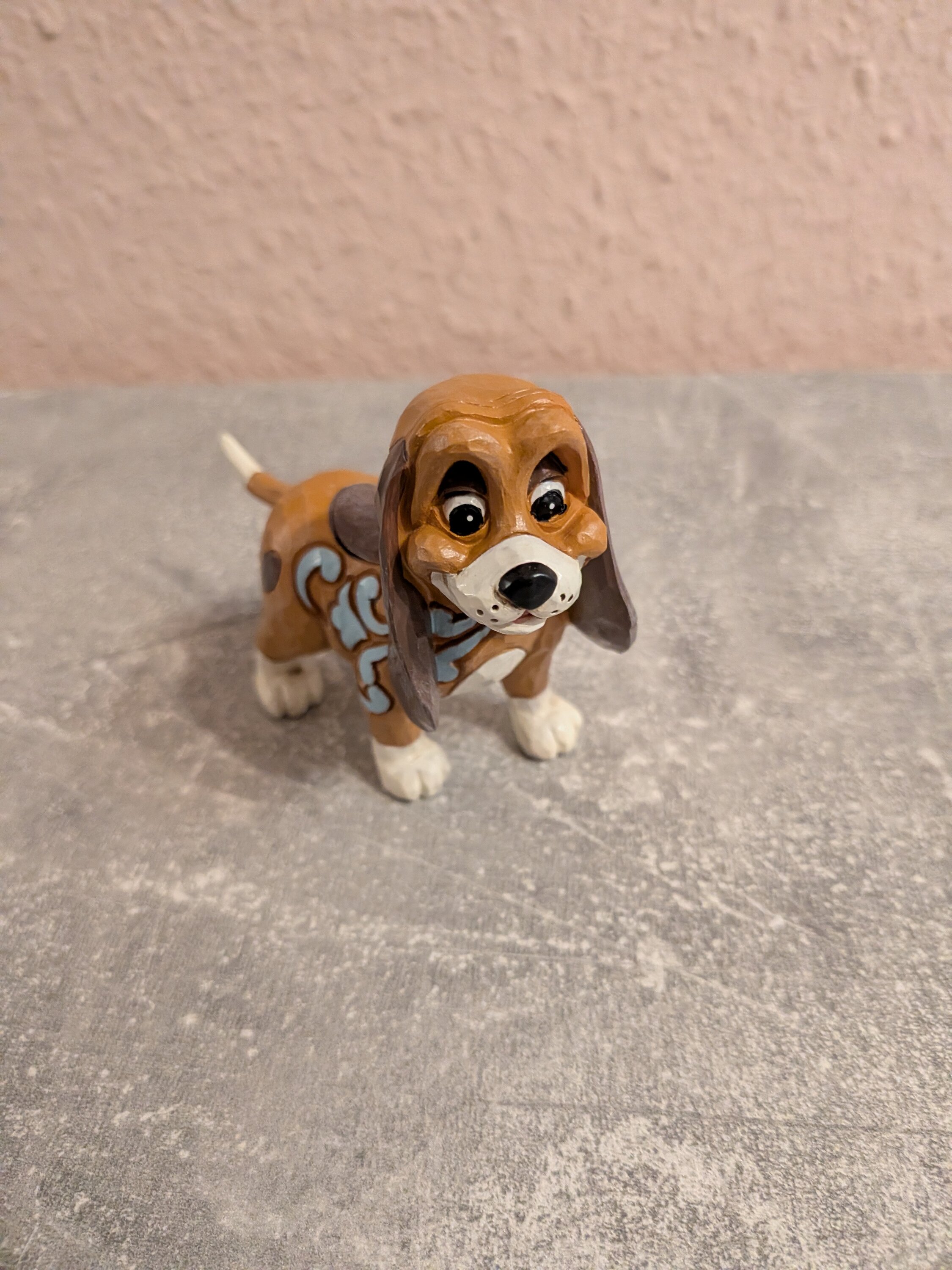 Questa adorabile miniatura Jim Shore raffigura Copper, il segugio, con intricati motivi a rosemaling e un'espressione sincera. Probabilmente è alla ricerca del suo amico Fox, pronto per la loro prossima avventura insieme nei boschi.