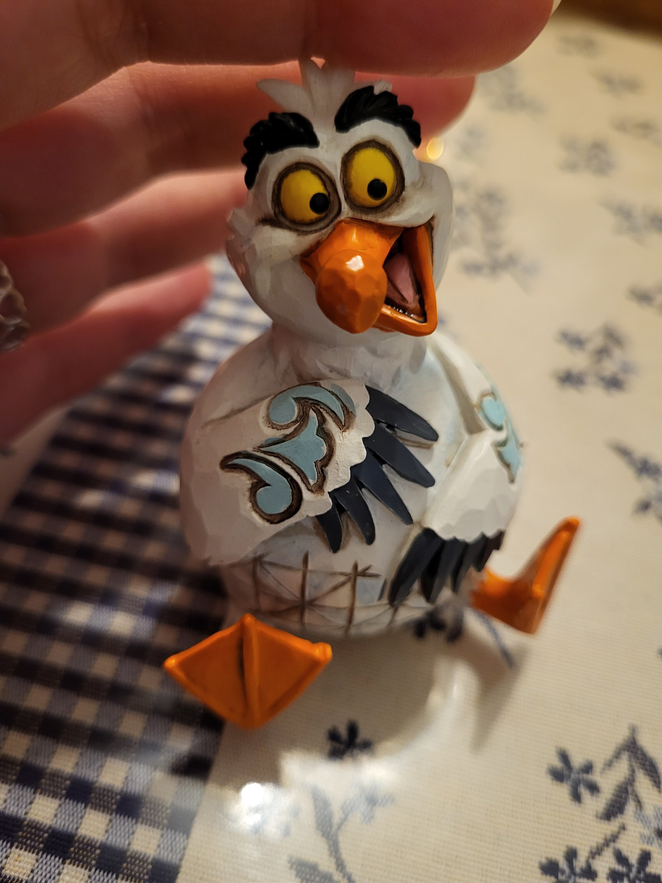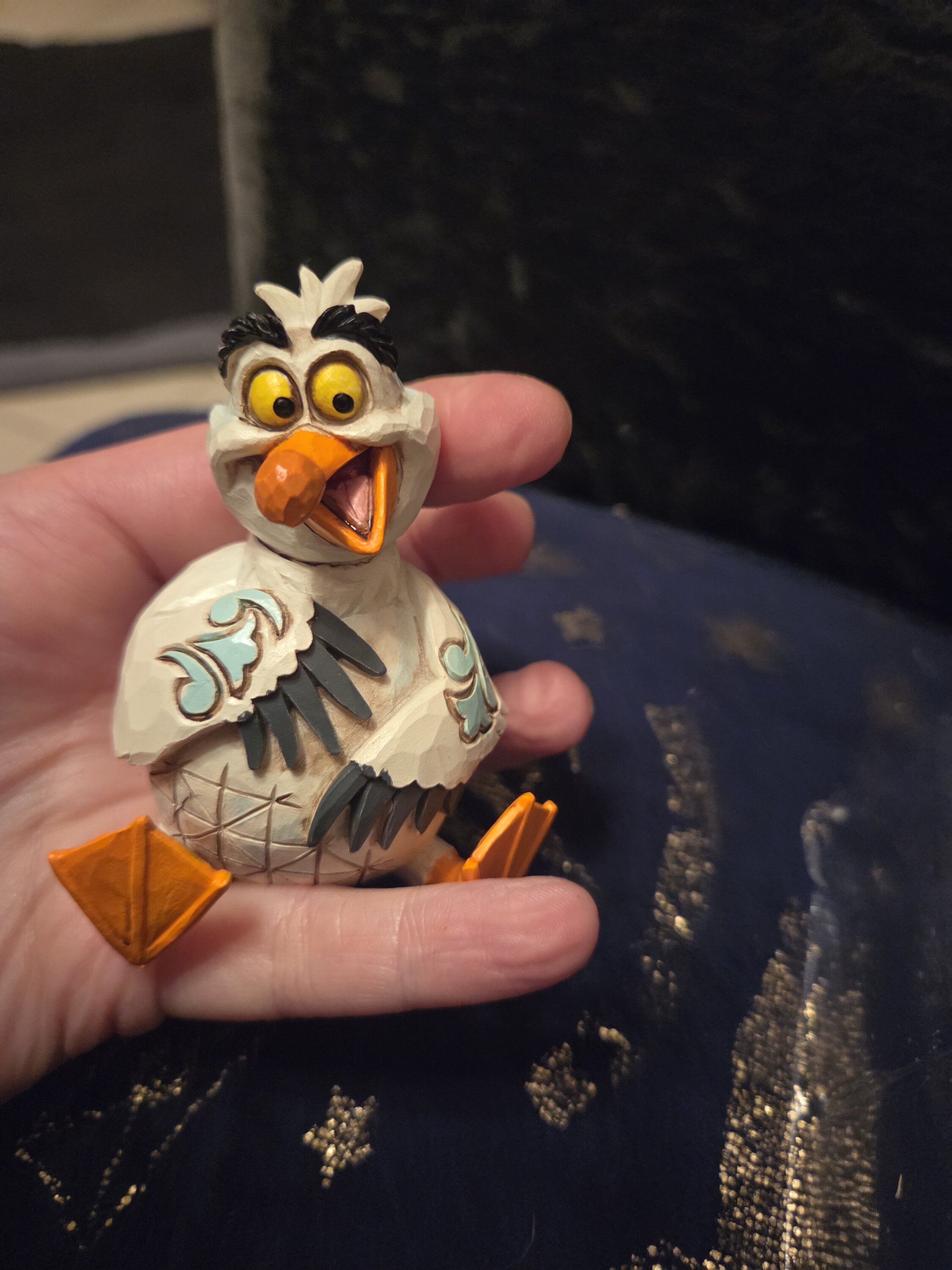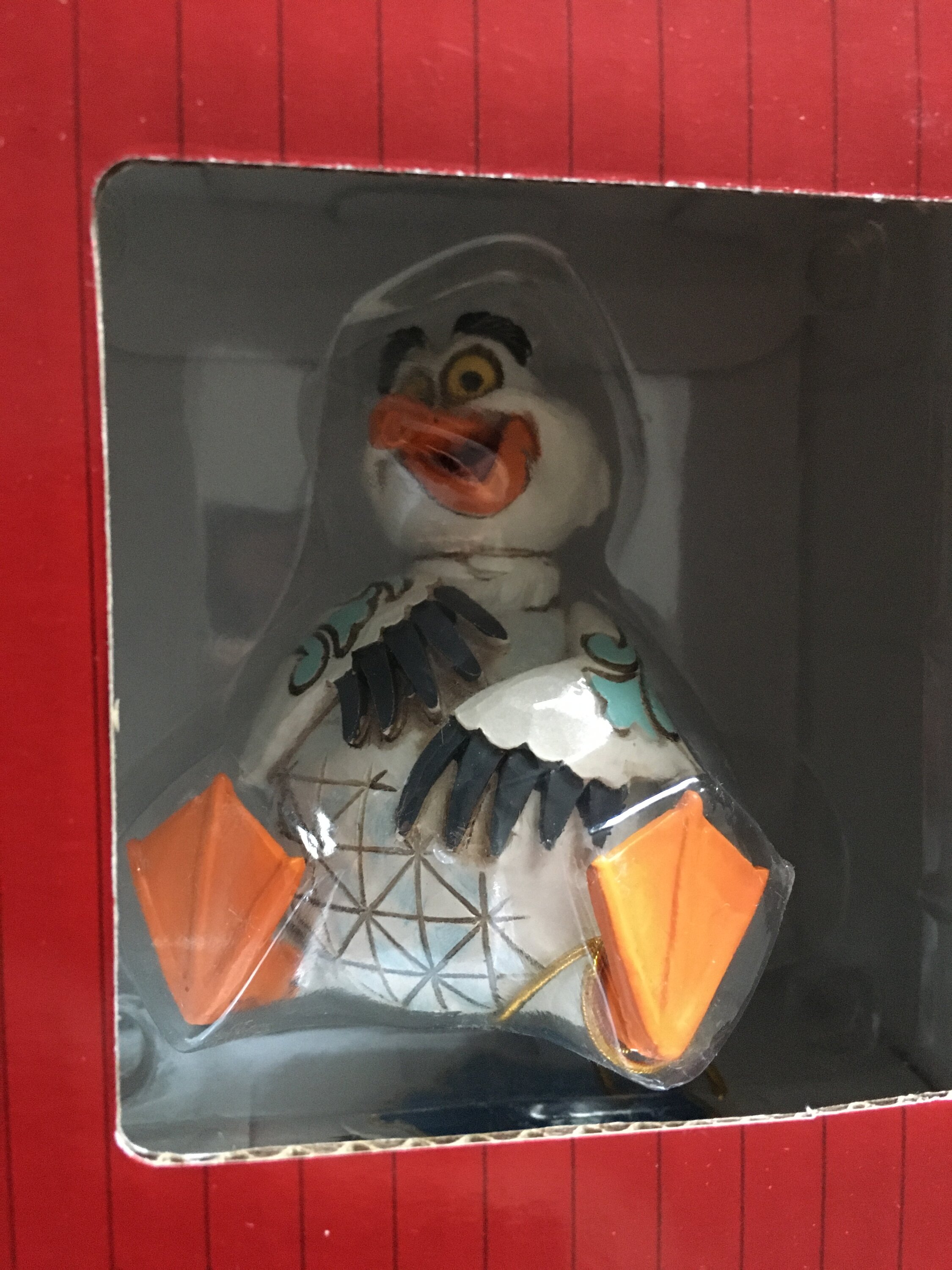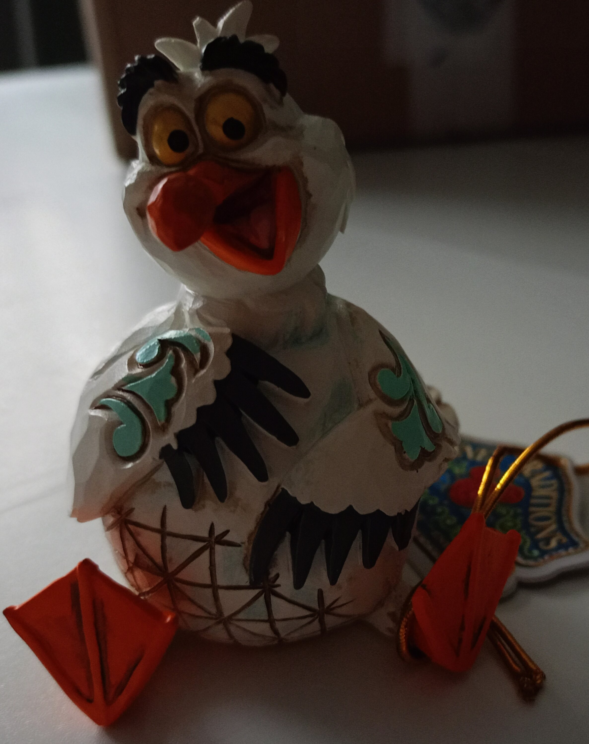 Questa miniatura Jim Shore raffigura Scuttle, l'eccentrico gabbiano de La Sirenetta, con vivaci decorazioni a rosemaling e affascinanti dettagli patchwork. Con un sorriso luminoso e un'espressione giocosa, puoi quasi sentire la sua risata gioiosa!