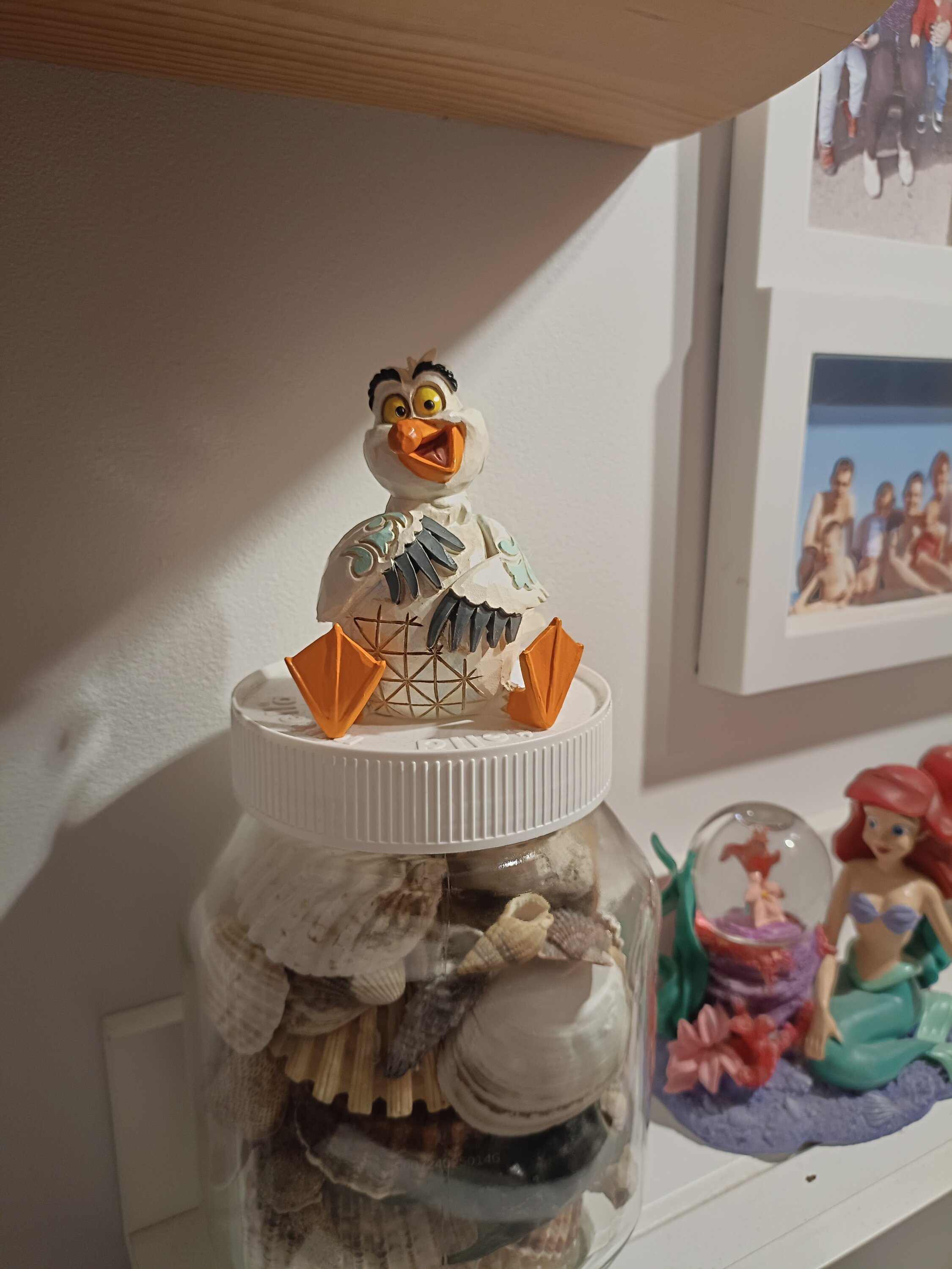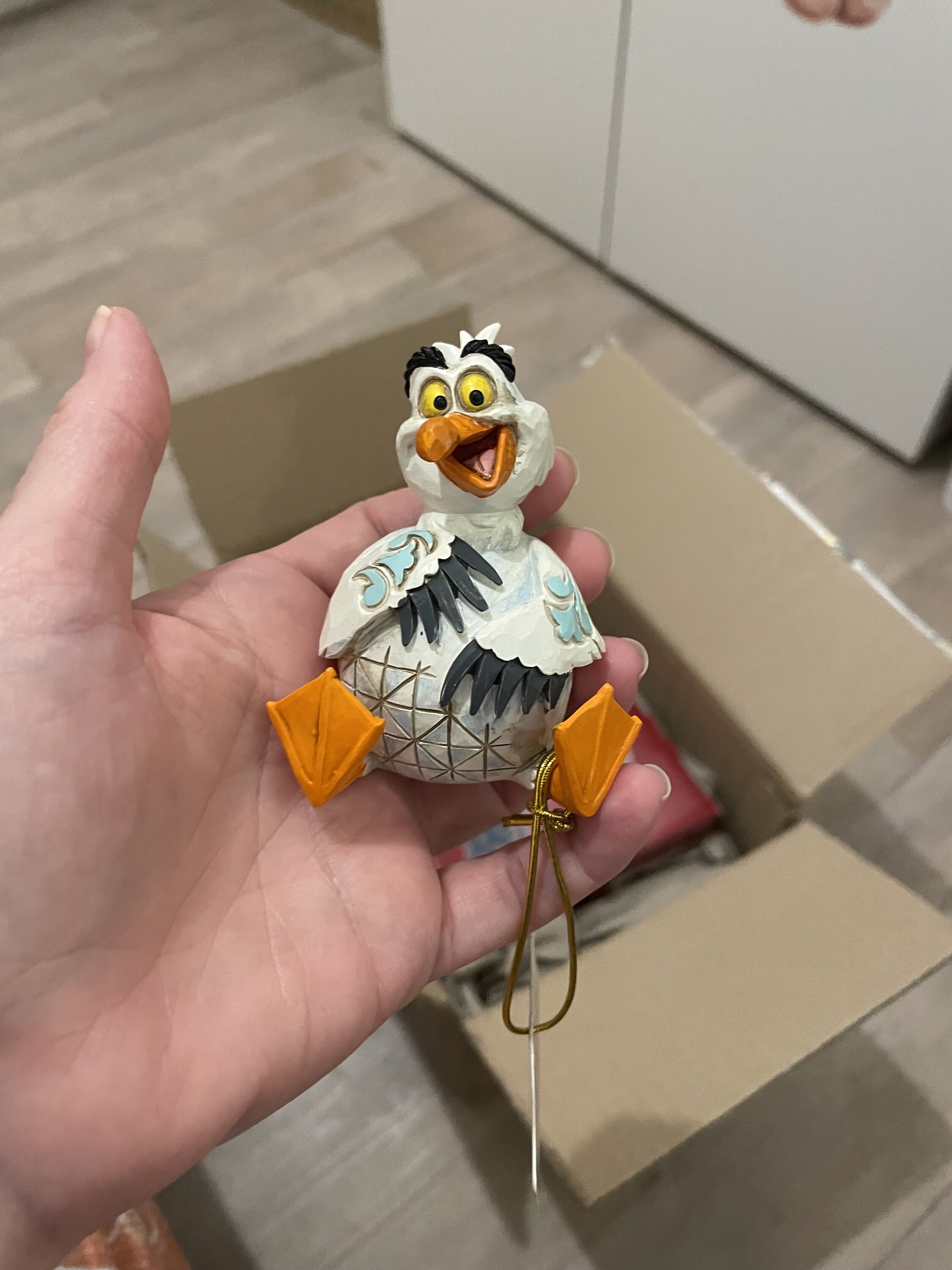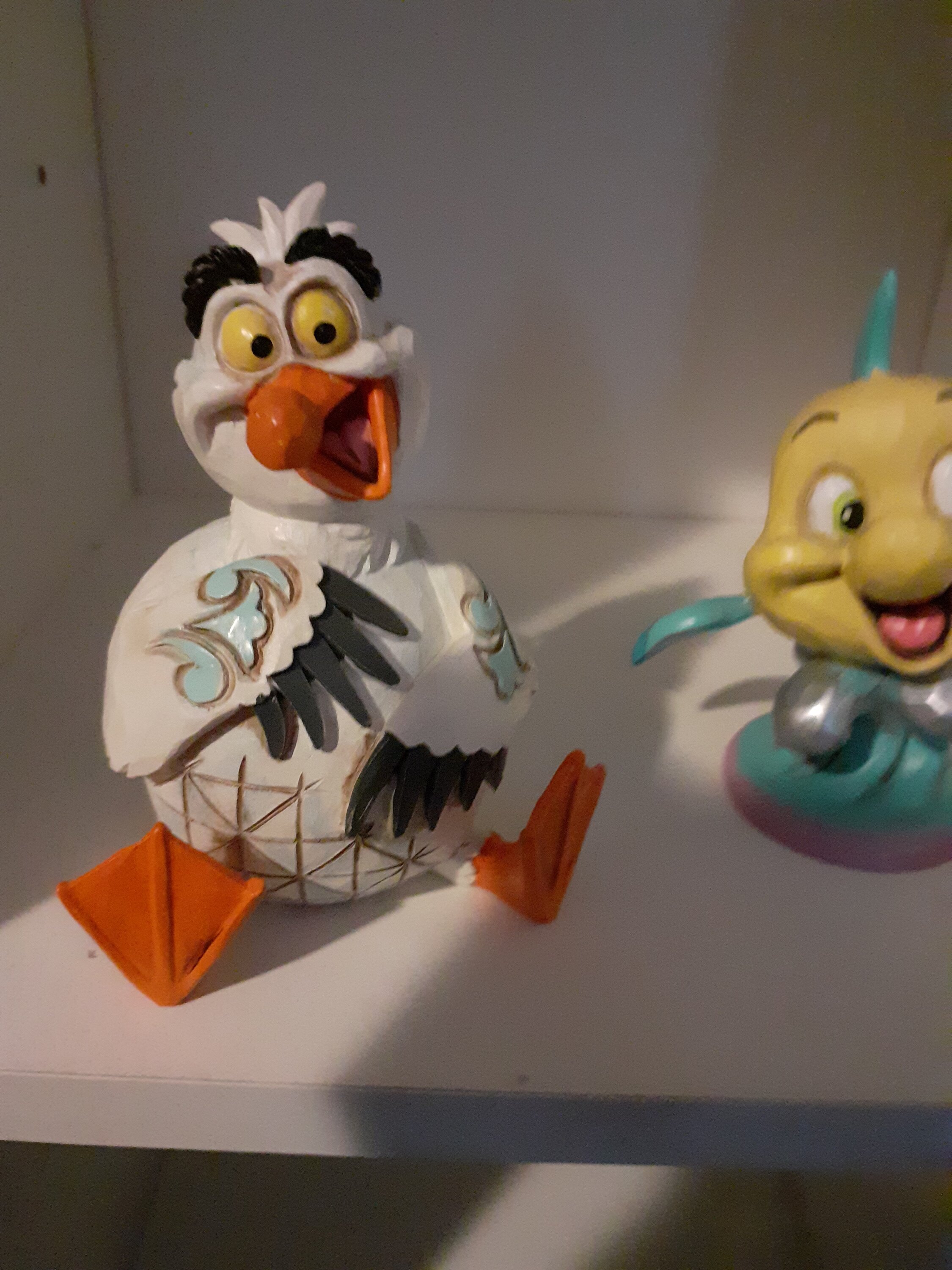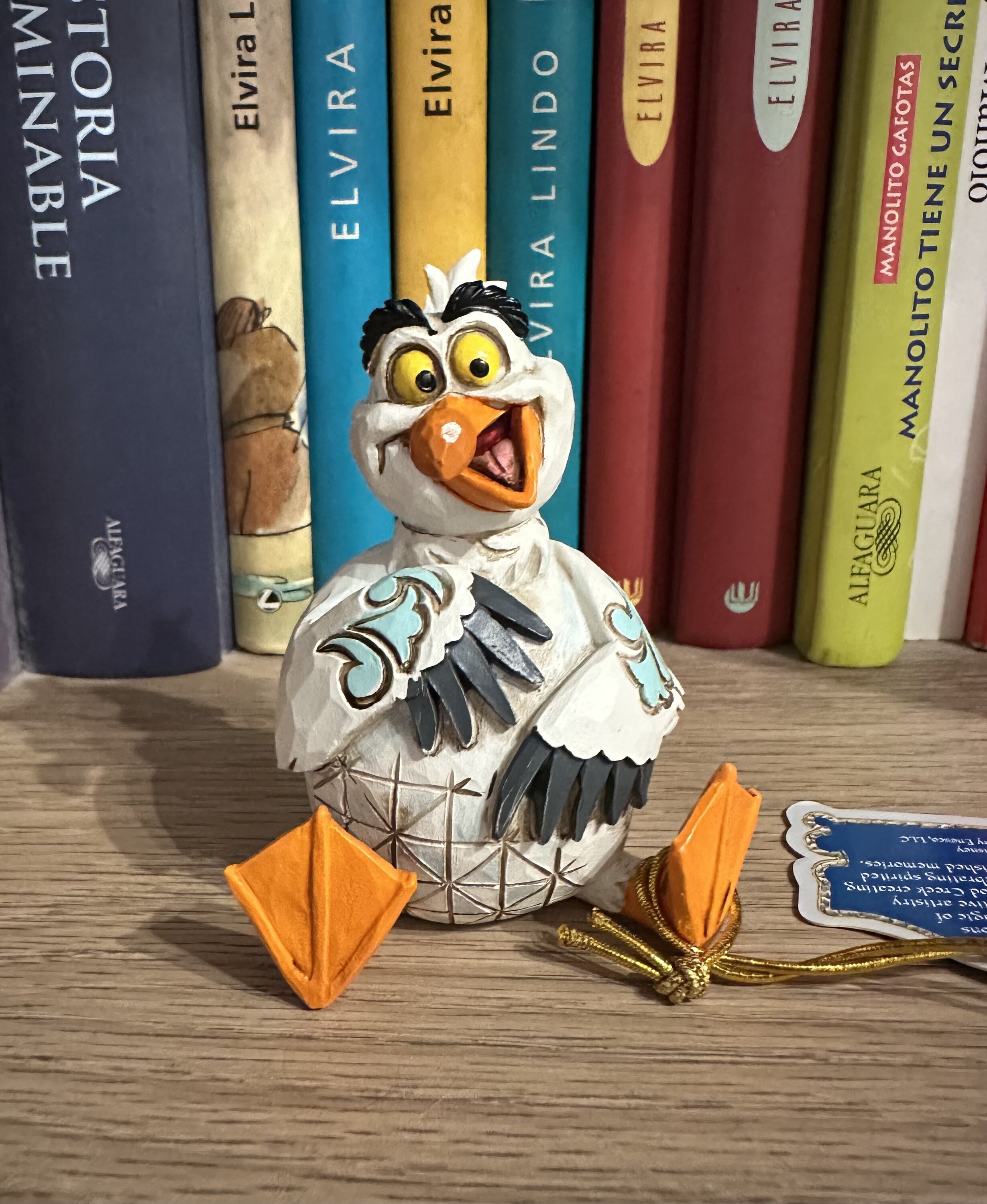 Questa miniatura Jim Shore raffigura Scuttle, l'eccentrico gabbiano de La Sirenetta, con vivaci decorazioni a rosemaling e affascinanti dettagli patchwork. Con un sorriso luminoso e un'espressione giocosa, puoi quasi sentire la sua risata gioiosa!