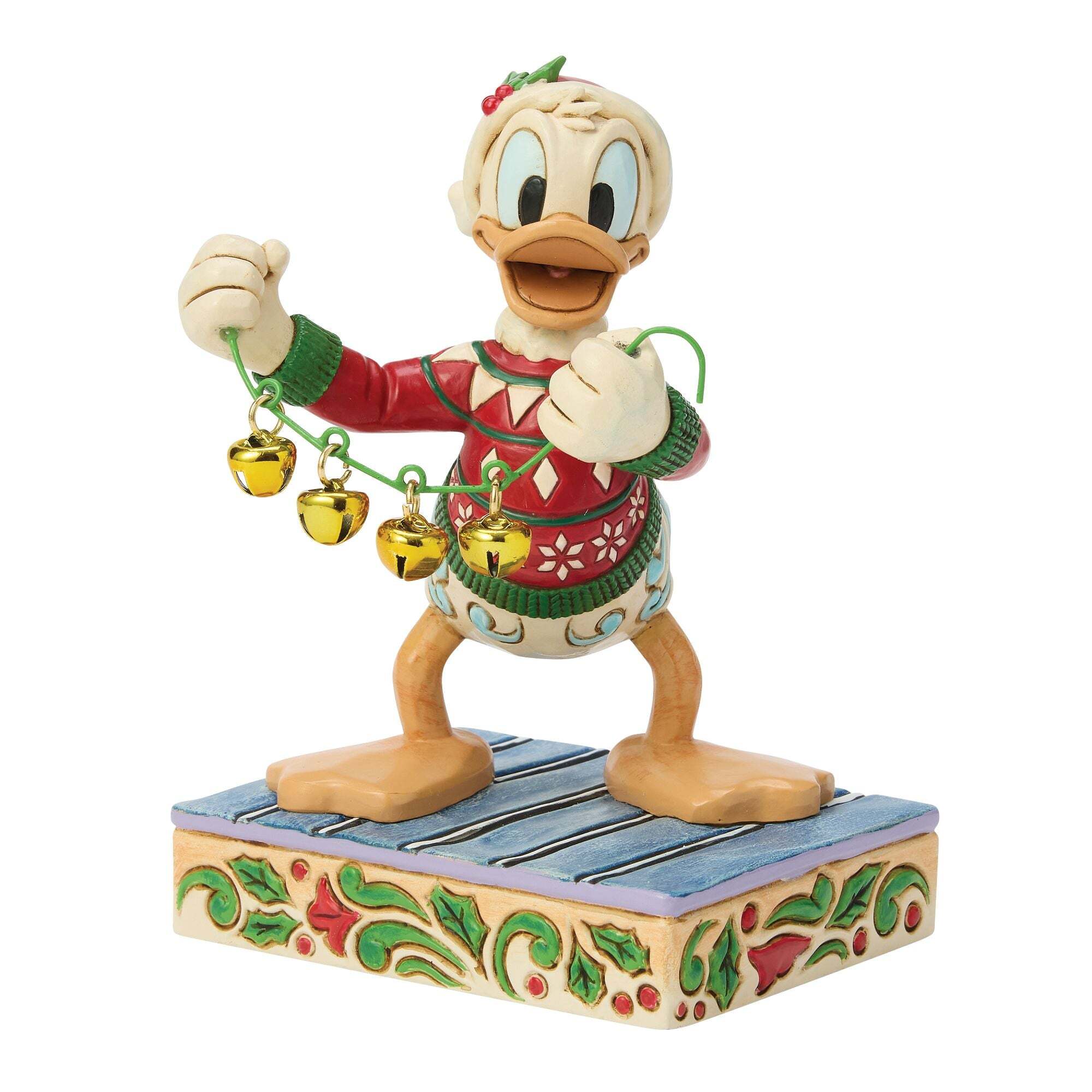 Giocoso e pieno di energia natalizia, Paperino porta un allegro rumore alle festività natalizie in questa affascinante scultura Disney Traditions . Vestito con il suo abito Natale , Paperino fa tintinnare allegramente una serie di campanellini dorati, catturando perfettamente la sua personalità vivace e la magia del Natale. Un delizioso pezzo decorativo che aggiunge divertimento e fascino Disney a qualsiasi esposizione festiva.