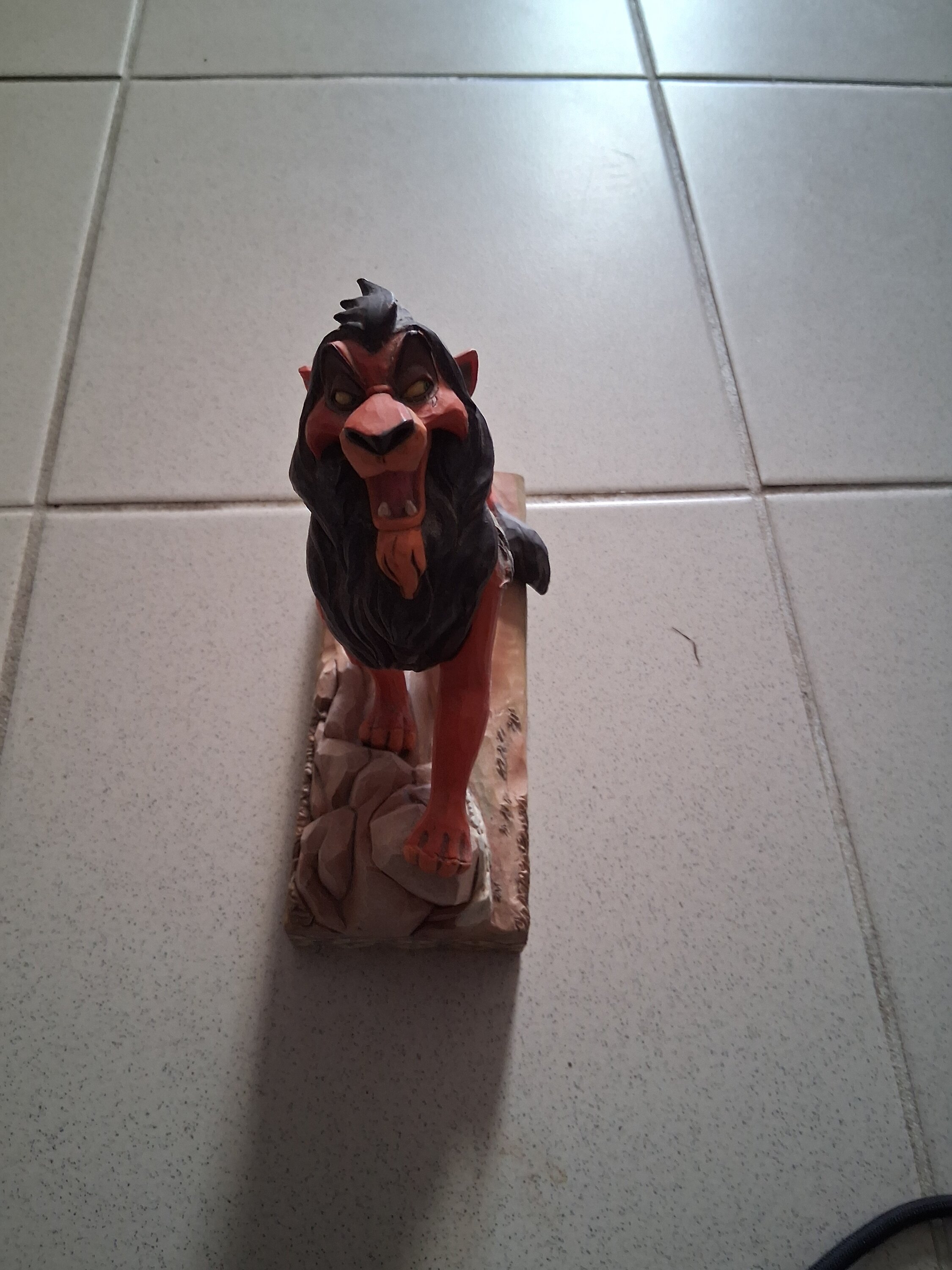 Un pezzo superbo, del tutto riuscito. Il cattivo de "Il Re Leone" si presenta imponente ed è raffigurato nei minimi dettagli. Il tocco di classe dell' artista sta nell' aver raffigurato lungo la schiena i suoi tirapiedi, ovvero le tre iene. Notevoli anche le dimensioni della statuetta.