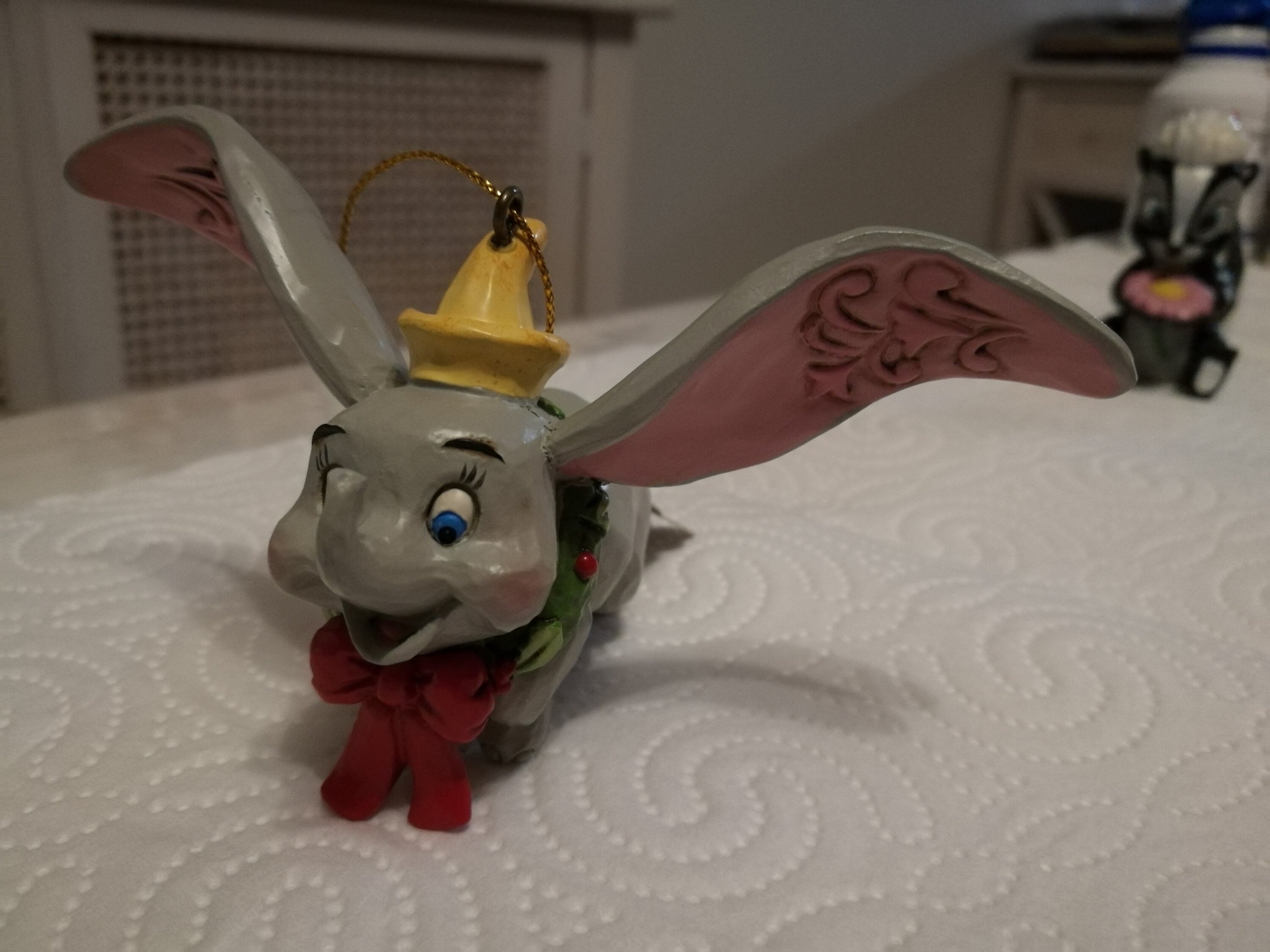 perfetta decorazione di Dumbo con le sue grandi orecchie che spicca il volo. Figure riprodotta minuziosamente, in tema natalizio, è perfetta come decorazione per l'albero di Natale