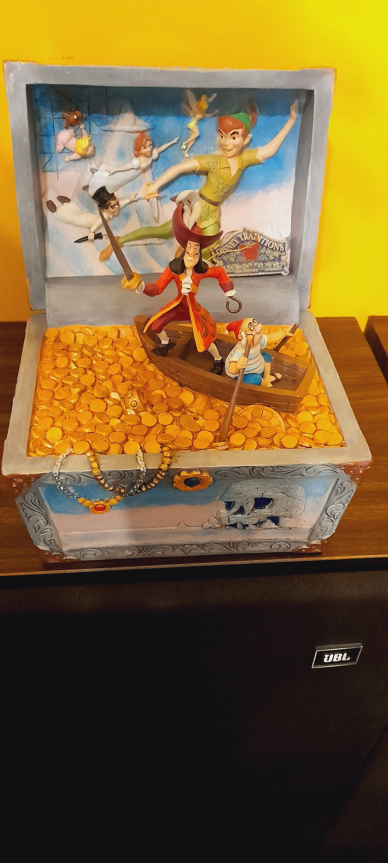 Si vous aimez les chasses aux trésors alors cette figurine est pour vous !!! On y vois le cap’tain Crochet et monsieur Mouche naviguant sur un océan de pièce d’or .. avec en fond peter pan et ses amis !! Jim Shore